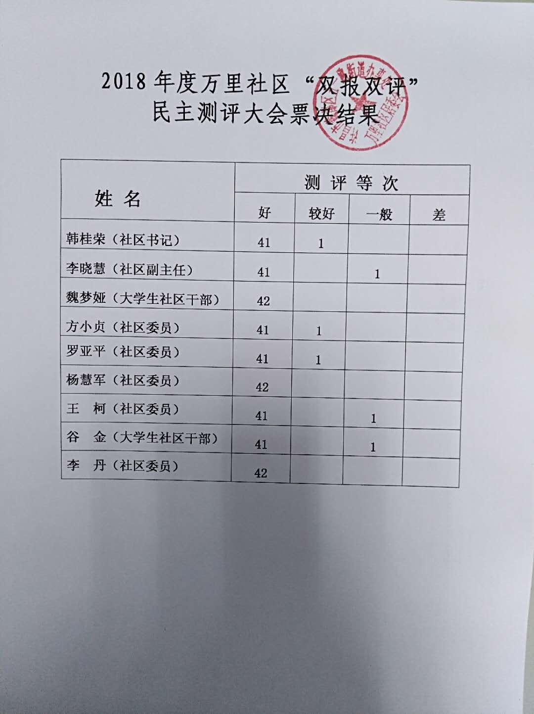 五一路办事处樊沟社区“双报双评”评议结果公示