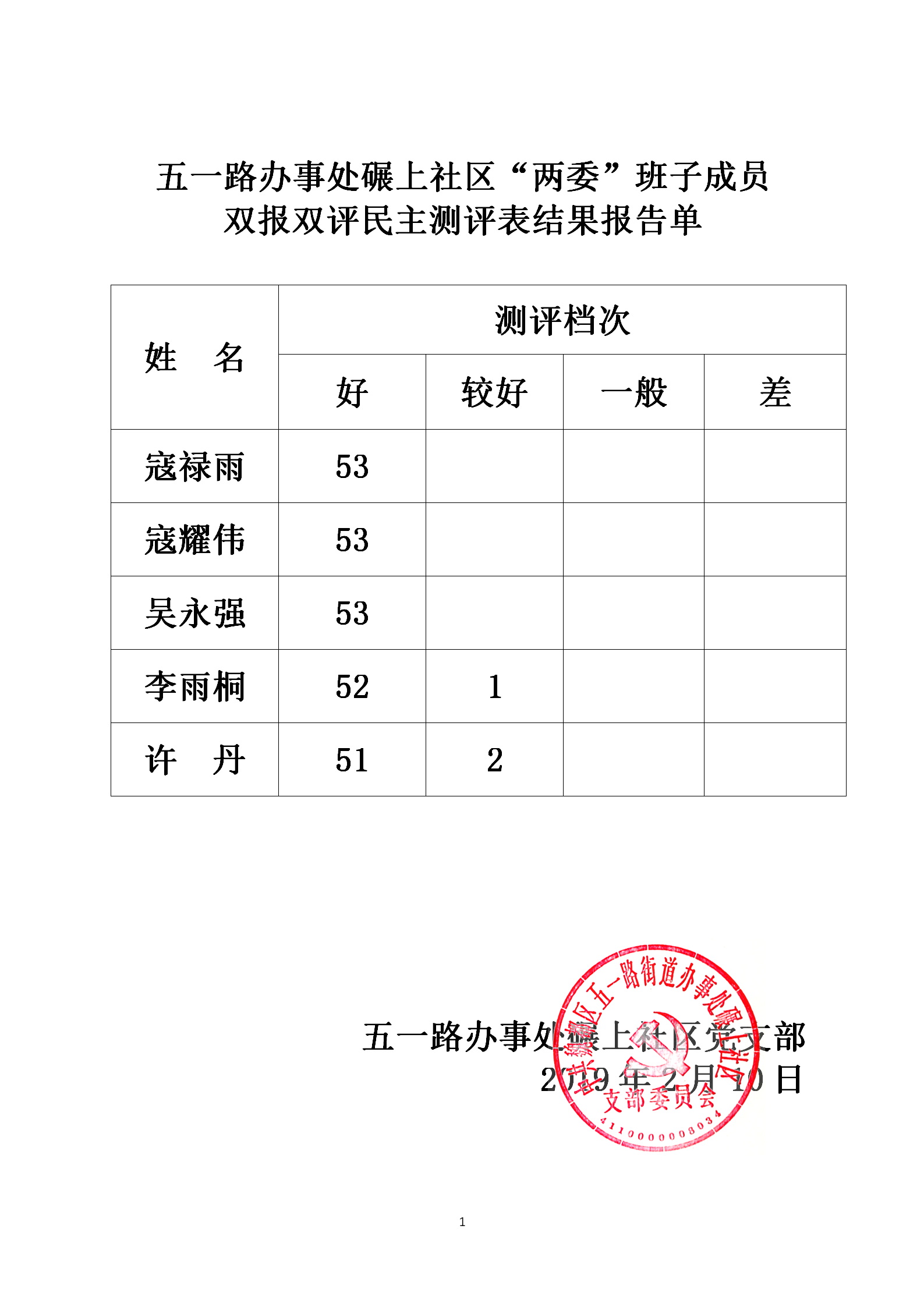 五一路办事处樊沟社区“双报双评”评议结果公示