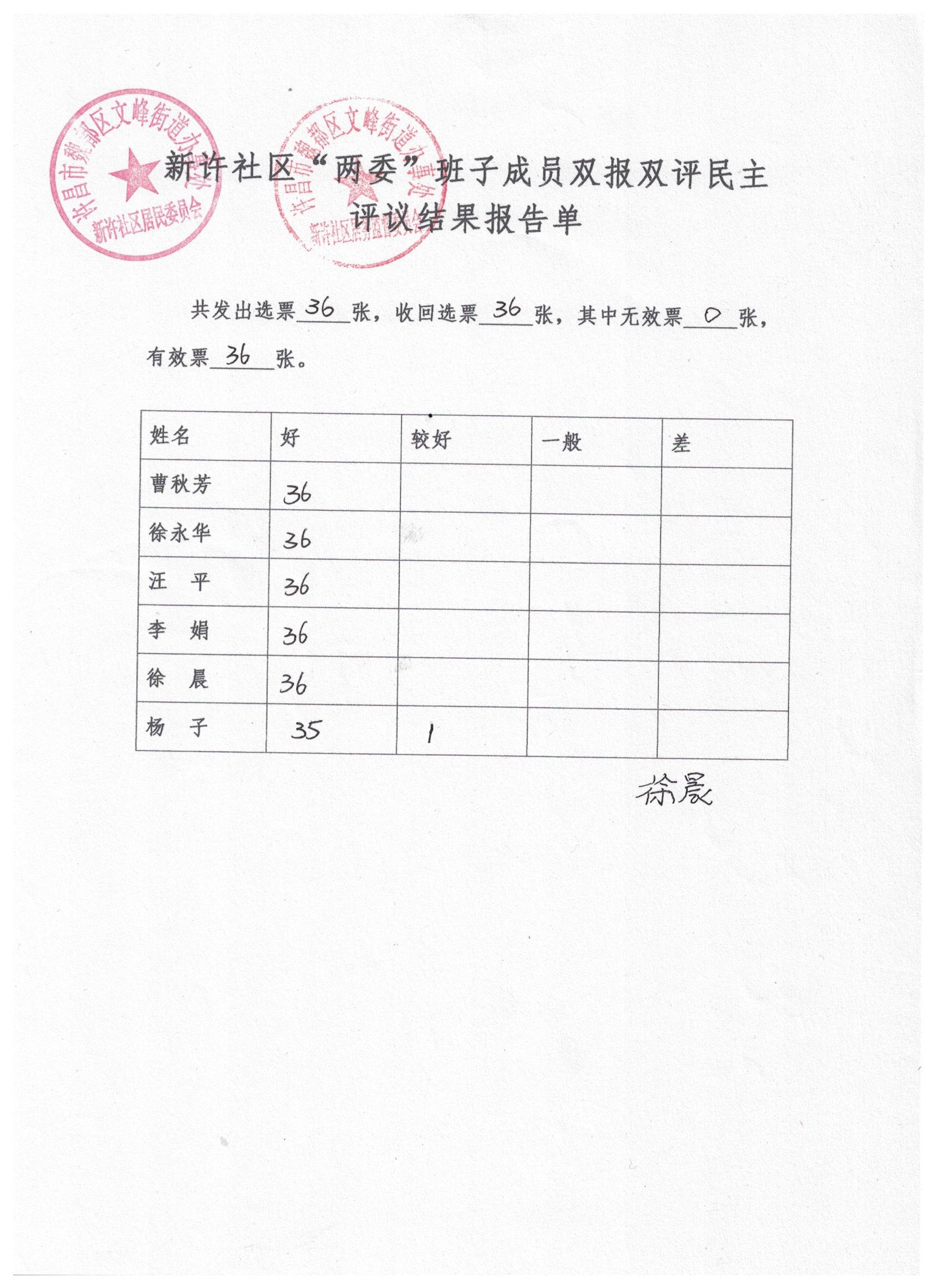 文峰办事处新许社区 2019年度“双报双评”评议结果公示表