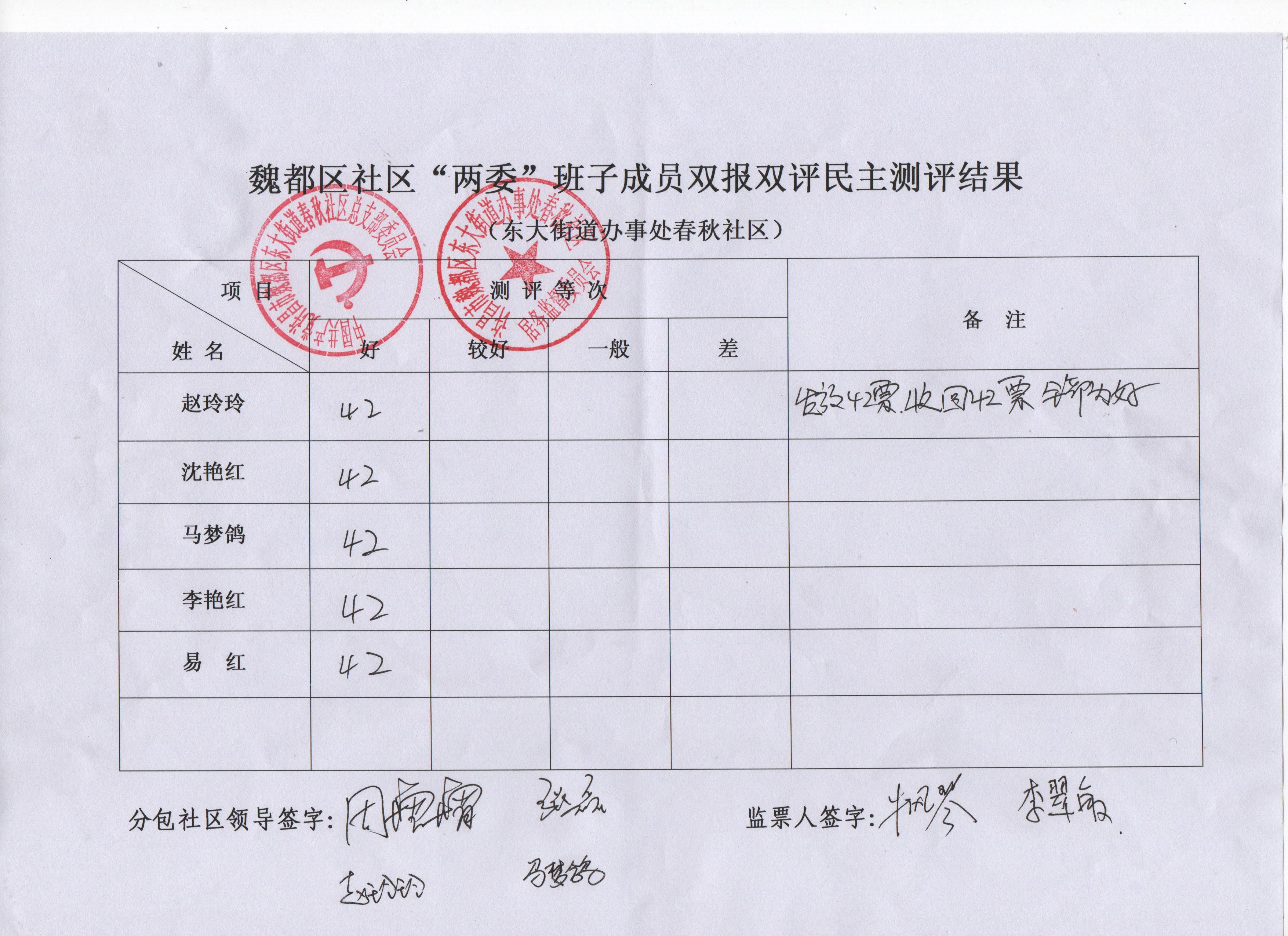 东大办事处春秋社区2019年“双报双评”评议结果公示表