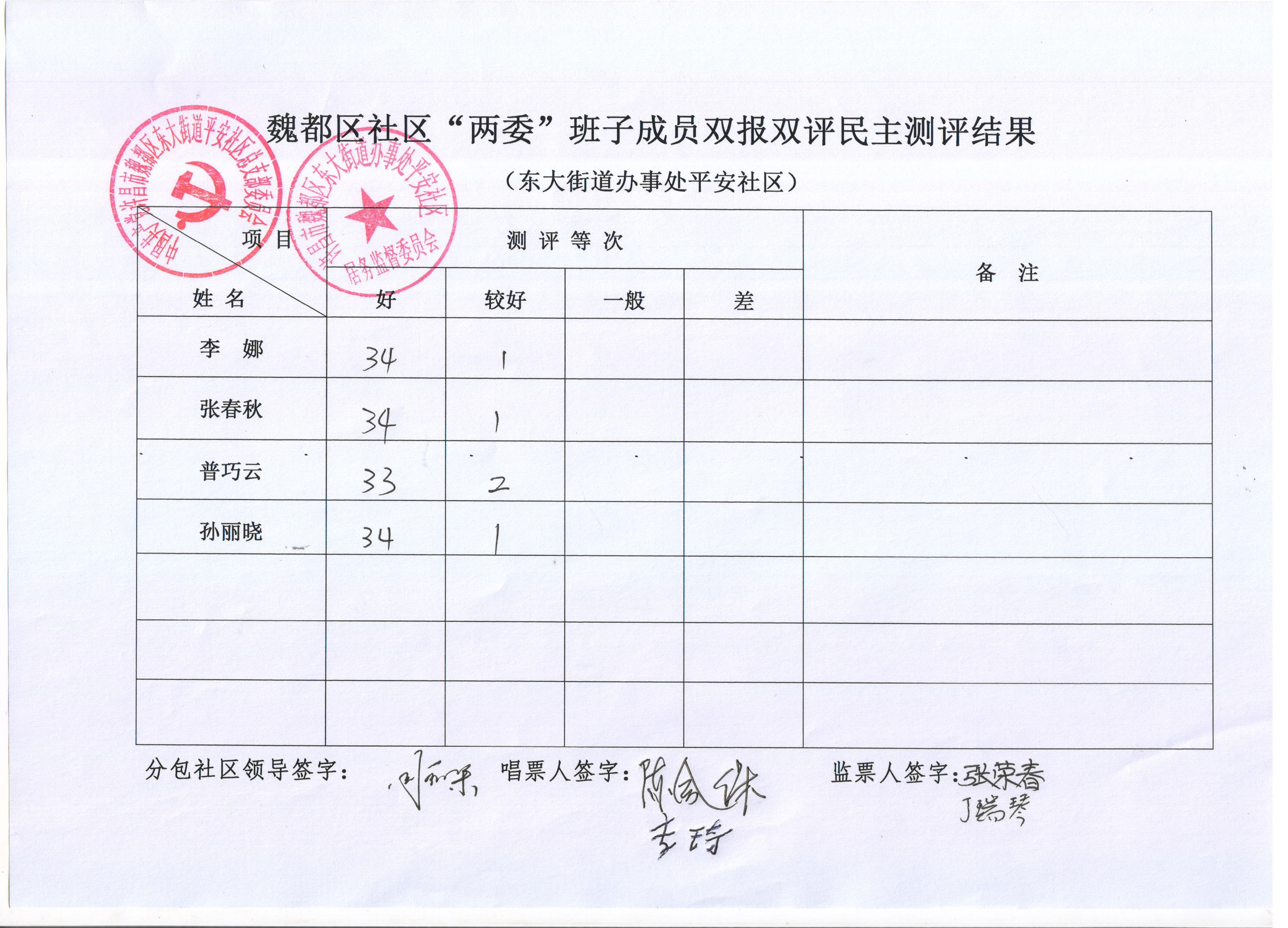 东大办事处平安社区2019年“双报双评”评议结果公示表