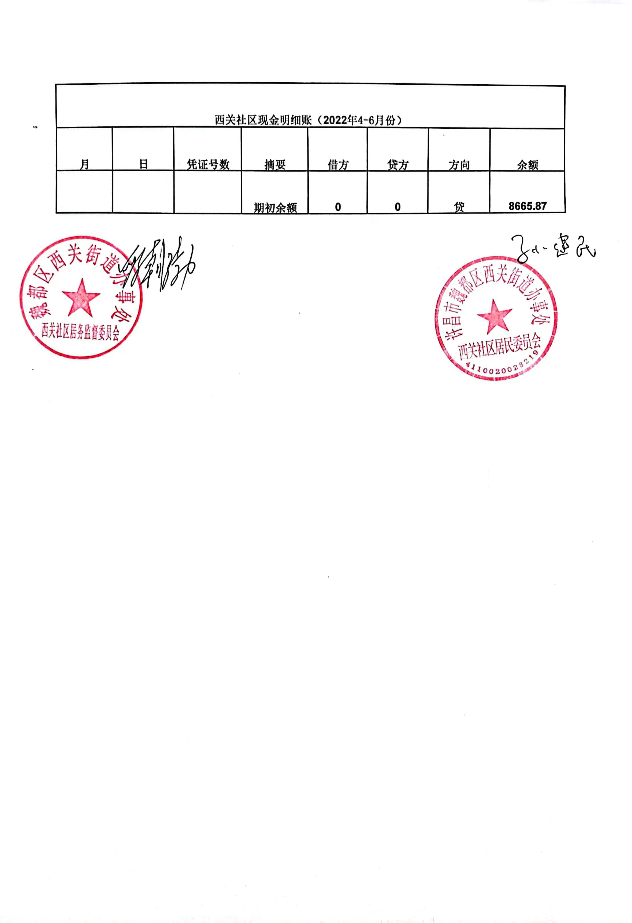 西关街道办事处西关社区2022年第二季度现金账财务公开表