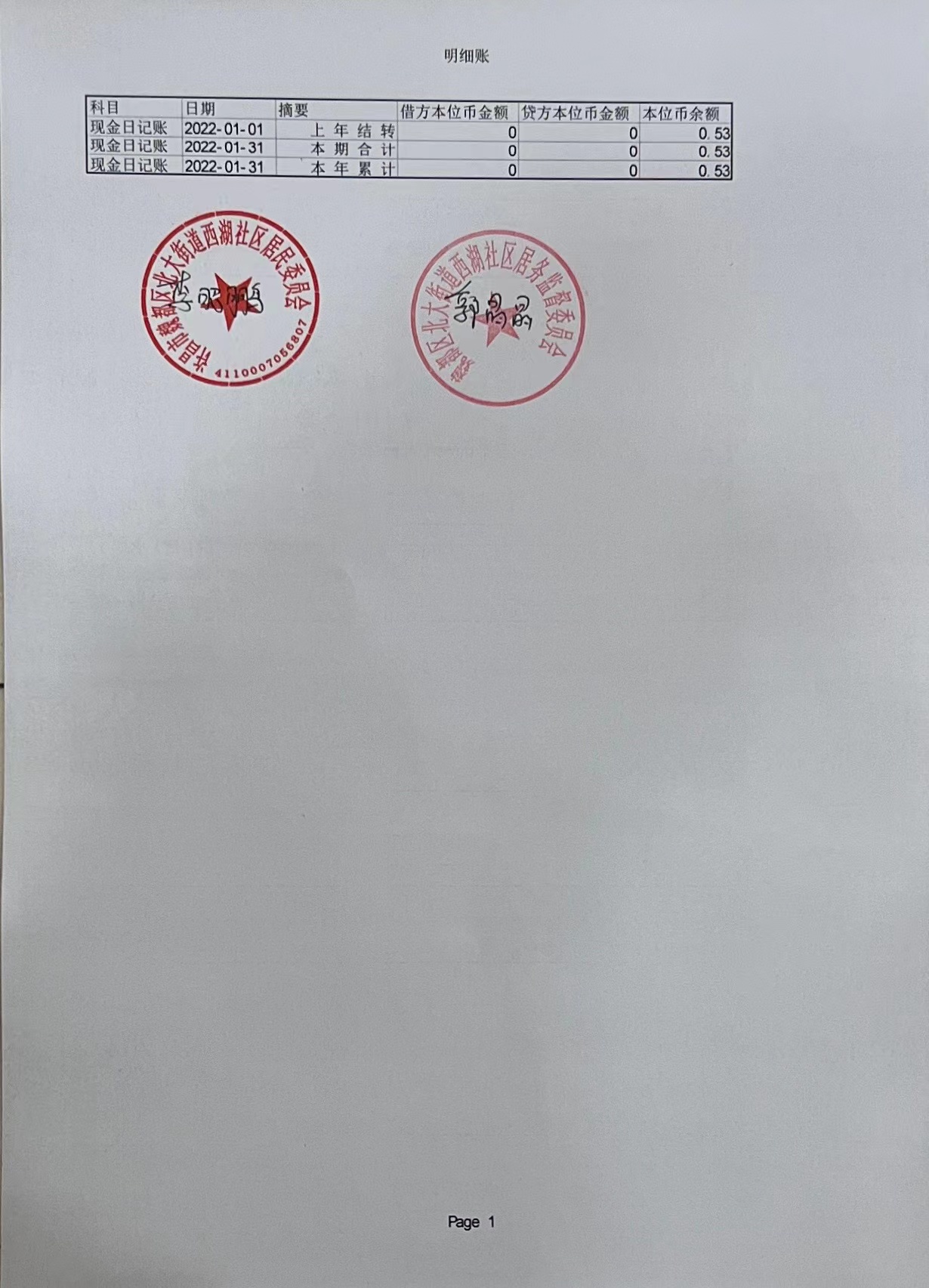 北大街道办事处学院社区2022年第三季度现金账户公开表