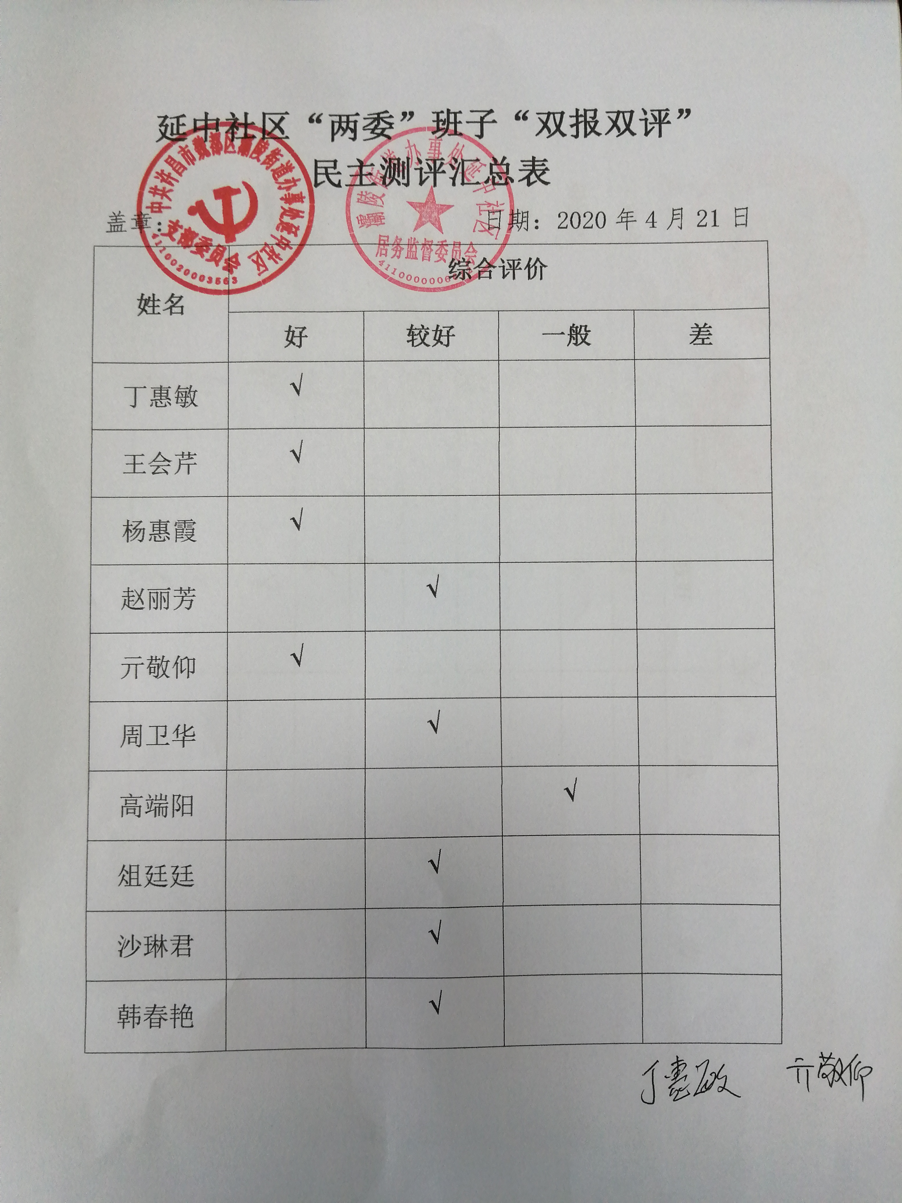 灞陵办事处延中社区2019年“双报双评”评议结果公示表