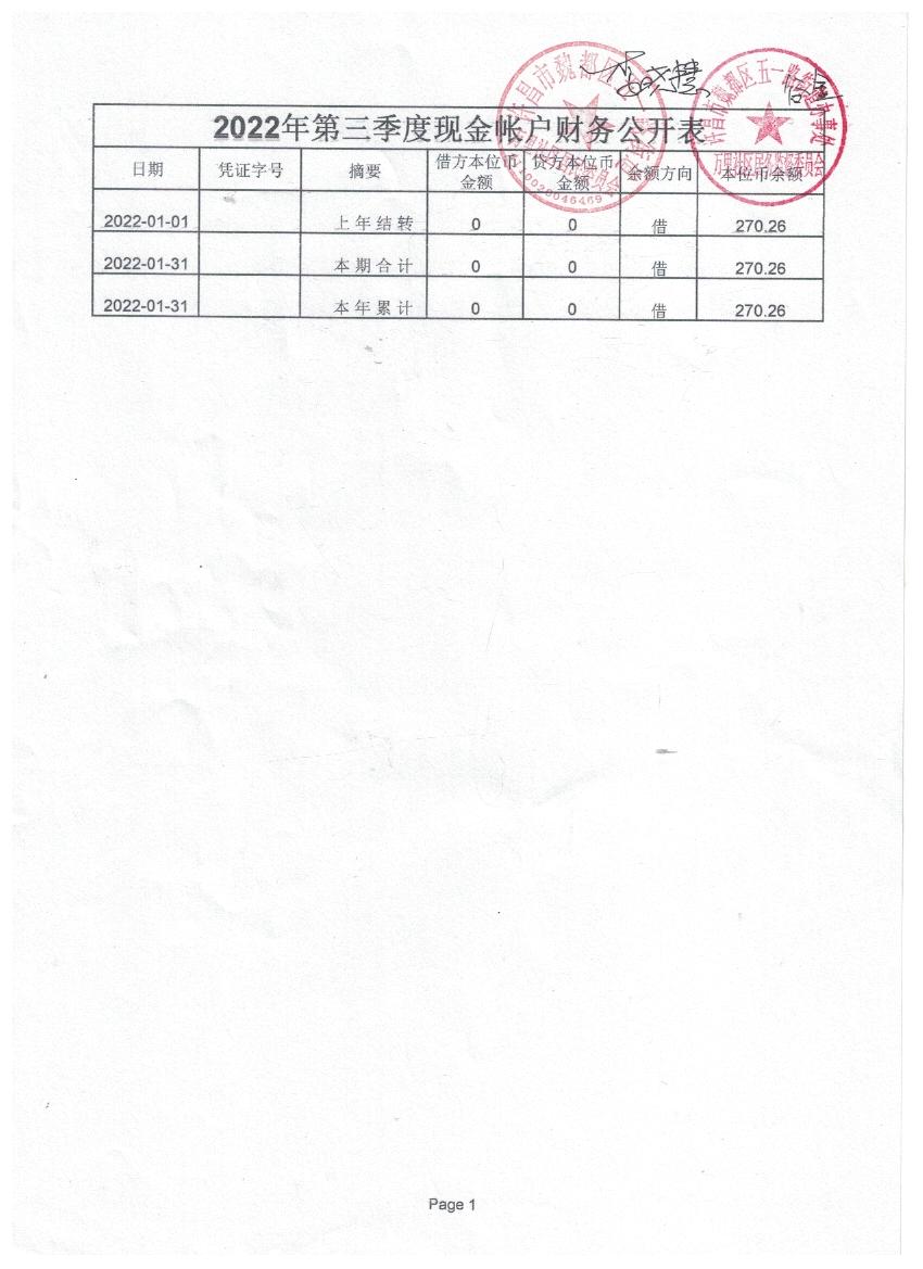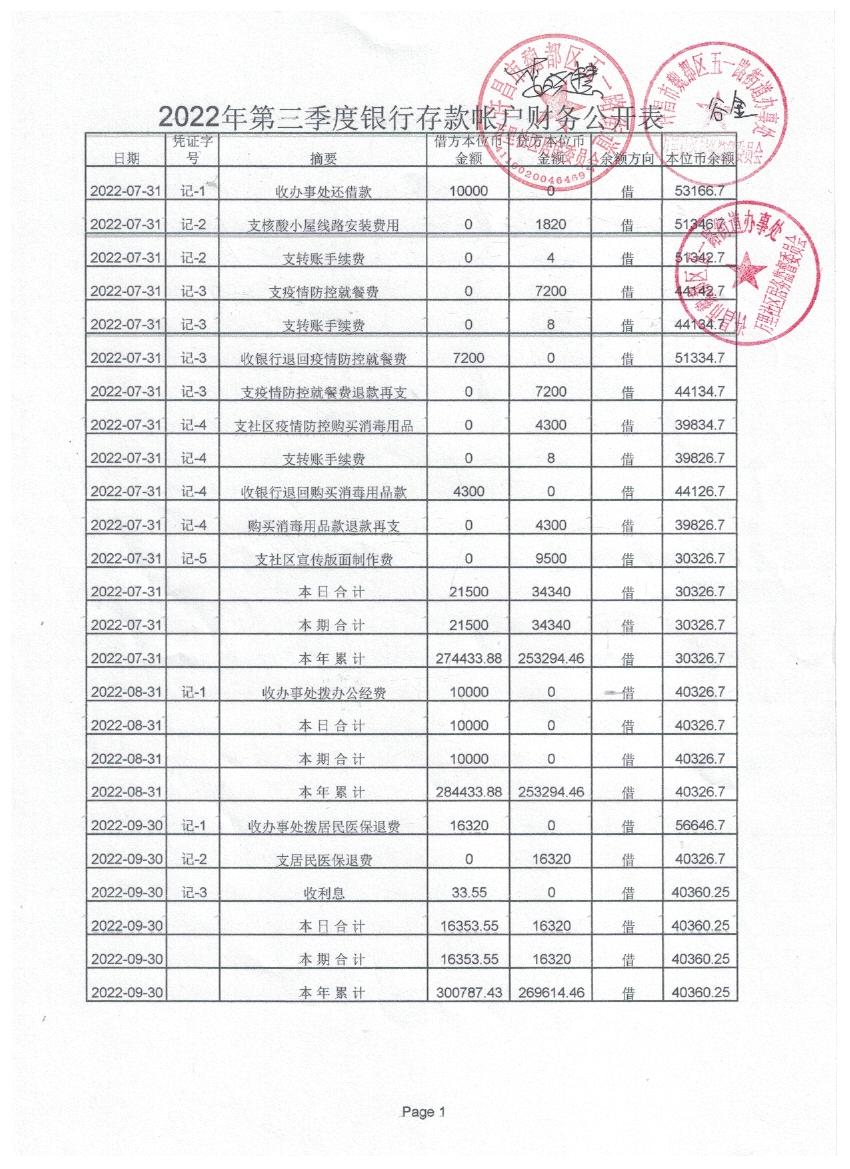 五一路办事处万里社区2022年第3季度现金、银行存款账户账务公开表