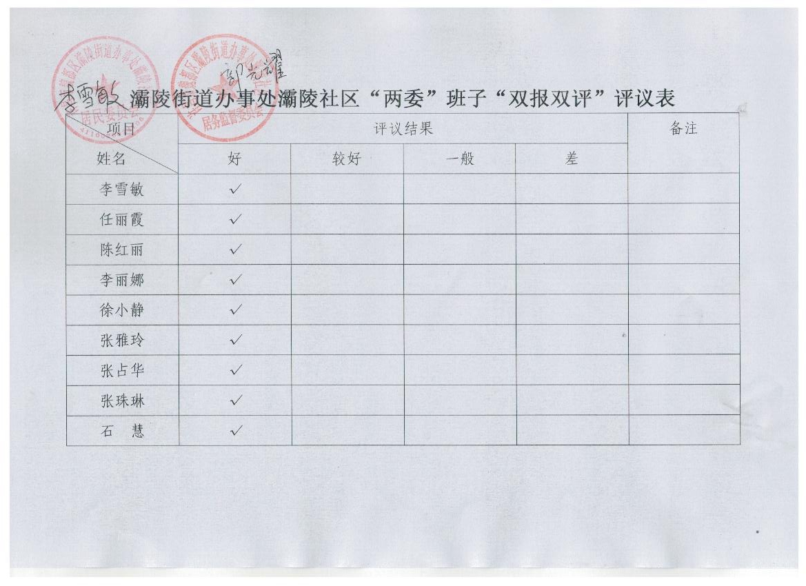 灞陵办事处灞陵社区2019年“双报双评”评议结果公示表