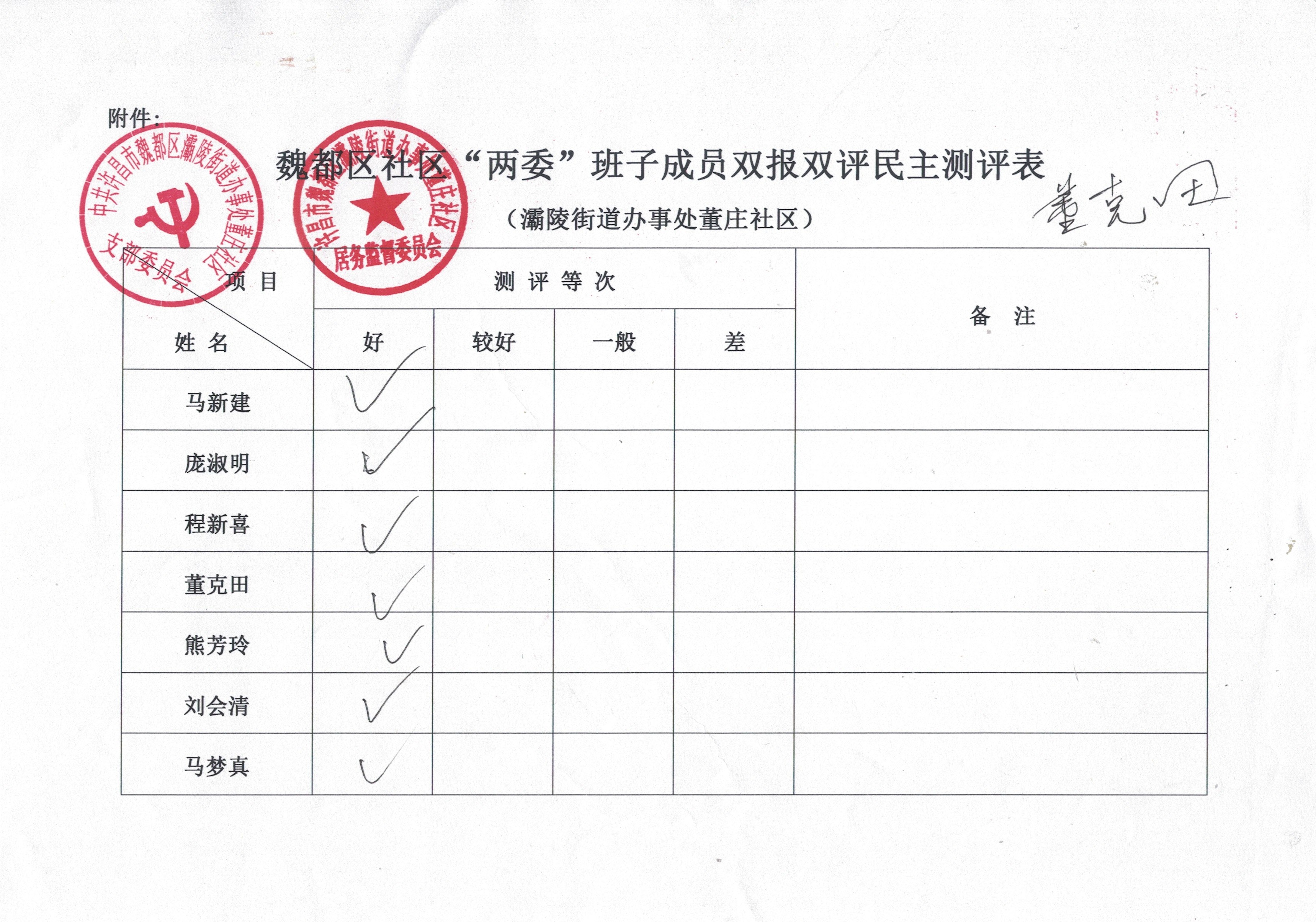 灞陵办事处董庄社区2019年“双报双评”评议结果公示表