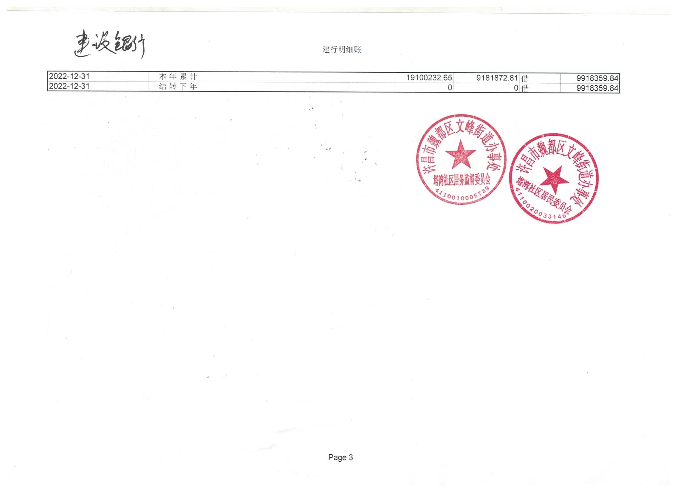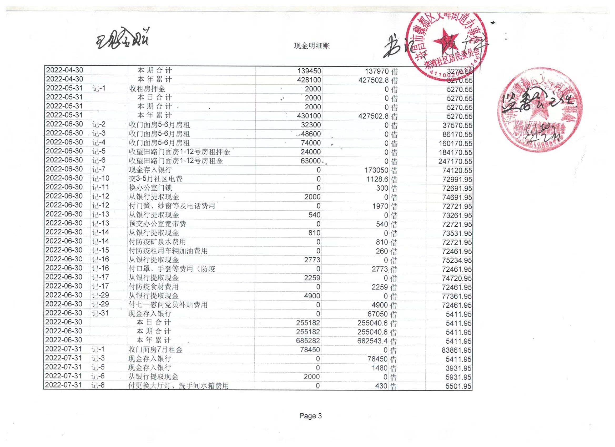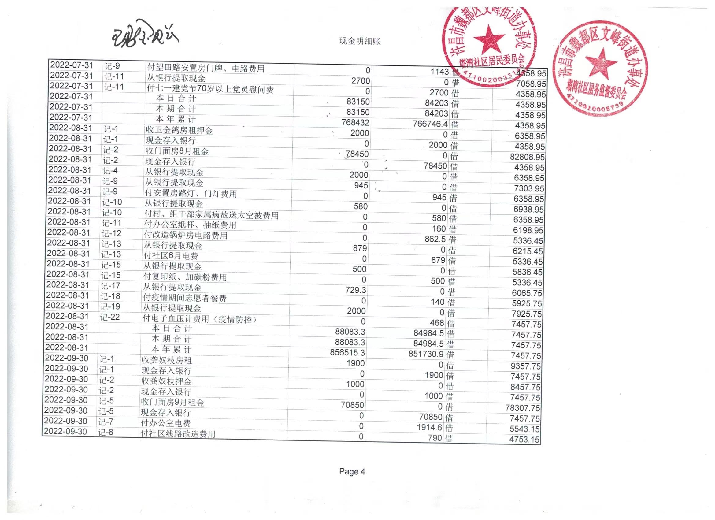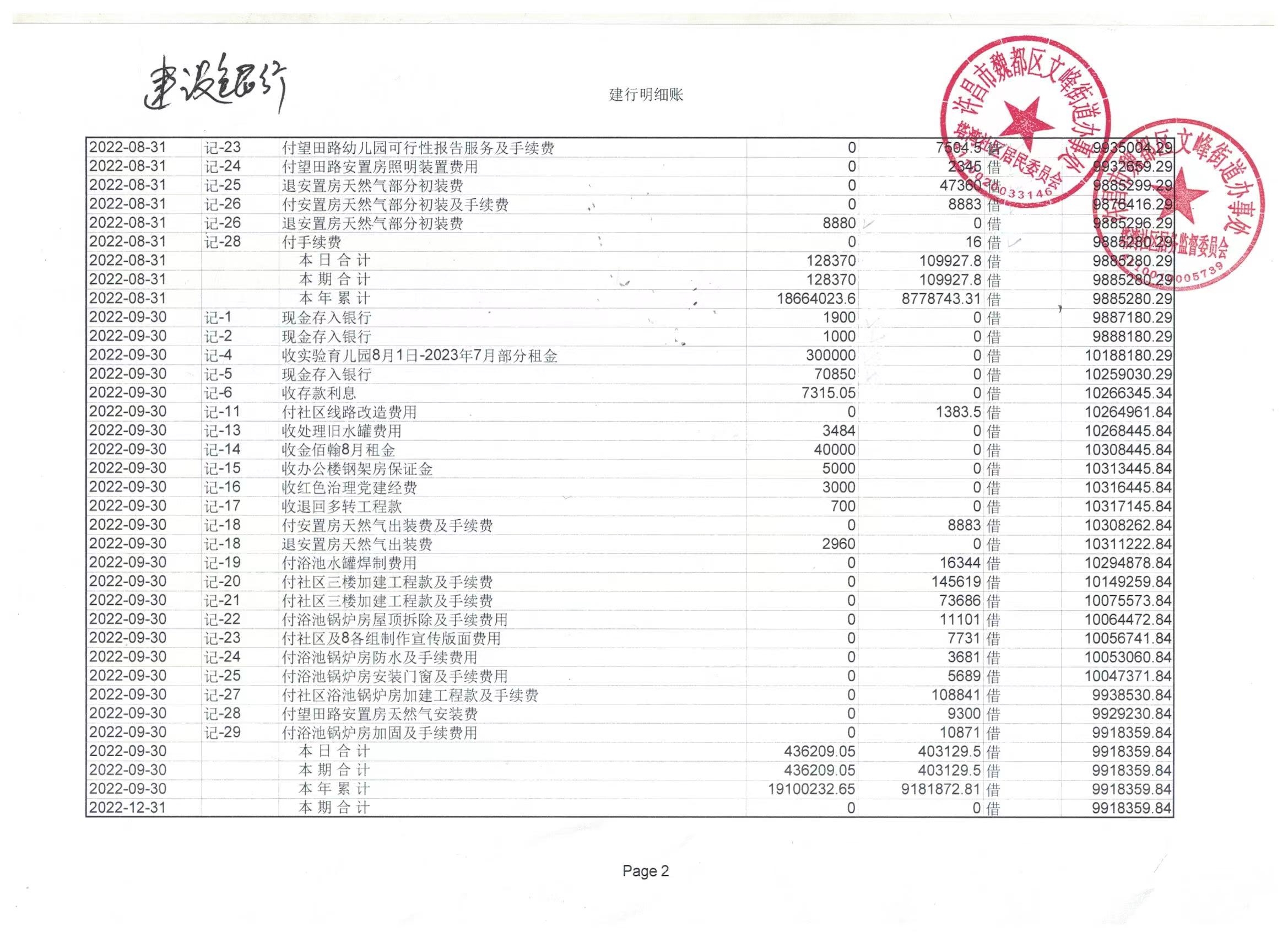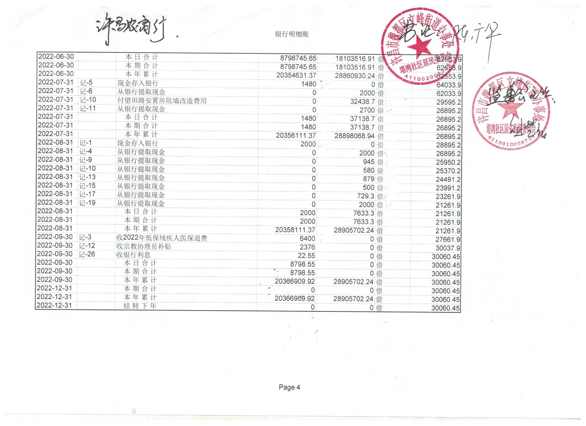 文峰街道办事处塔湾社区2022年第三季度现金、银行存款账户公开表