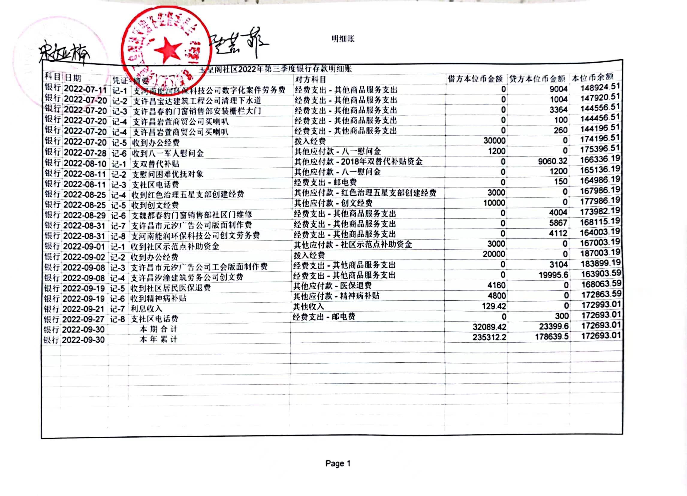 北大街道办事处玉皇阁社区2022年第三季度银行存款账户公开表