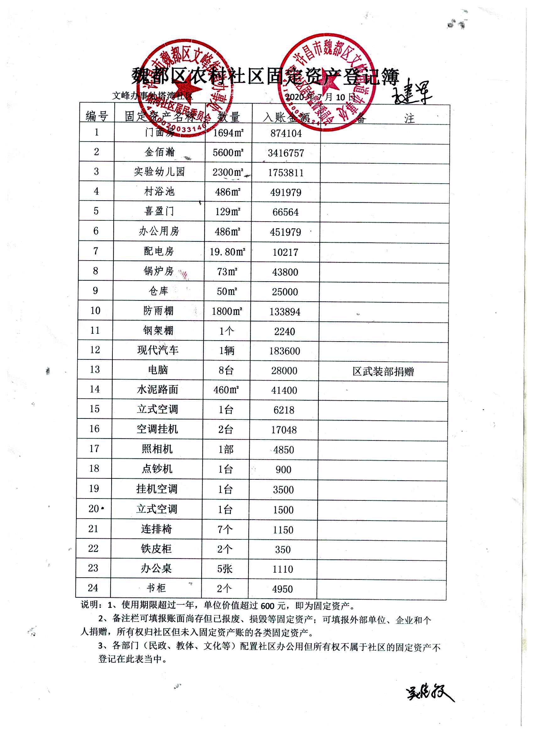 文峰办事处塔湾社区办公类固定资产公示表