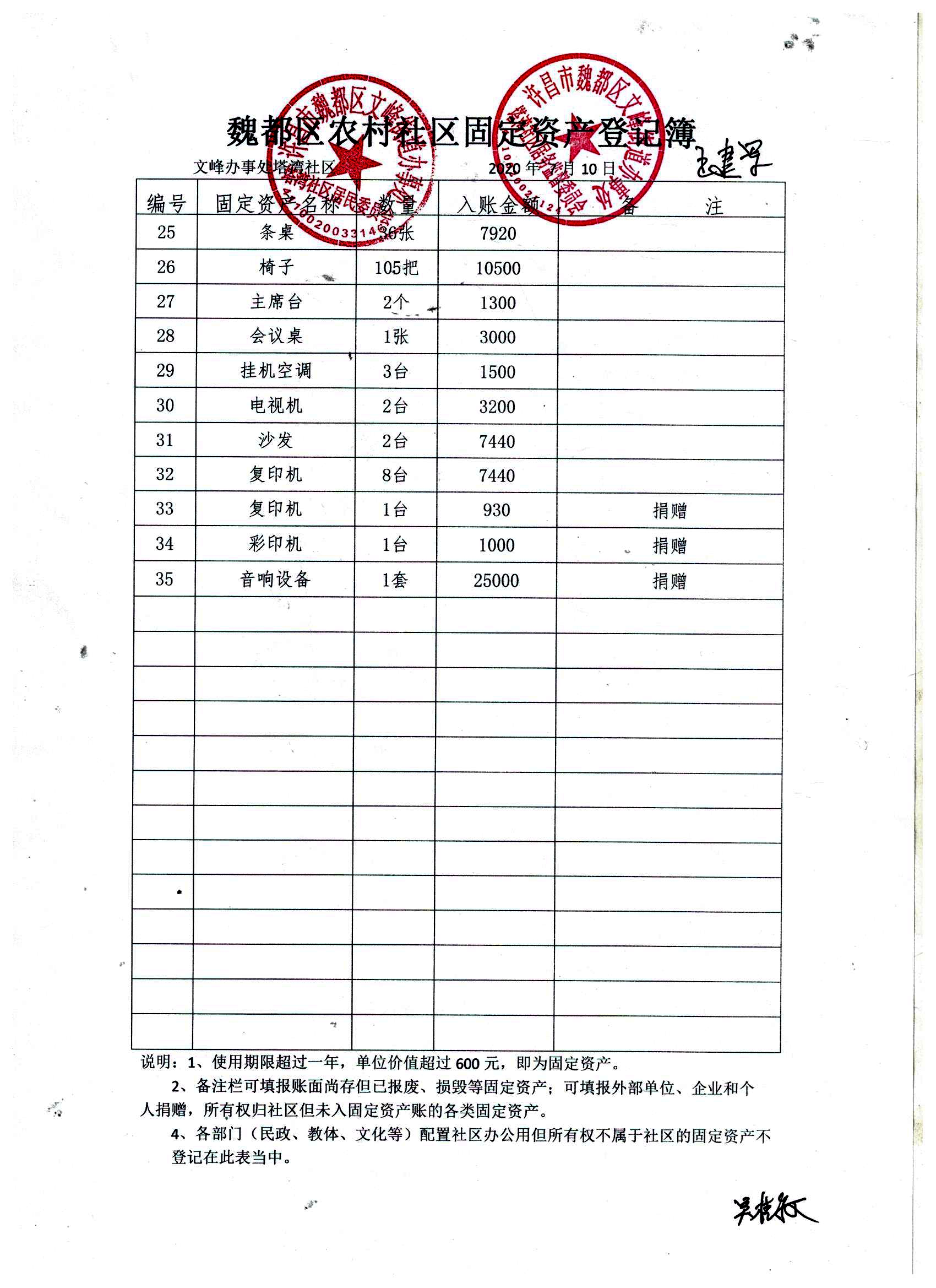 丁庄办事处北关社区办公类固定资产公示表