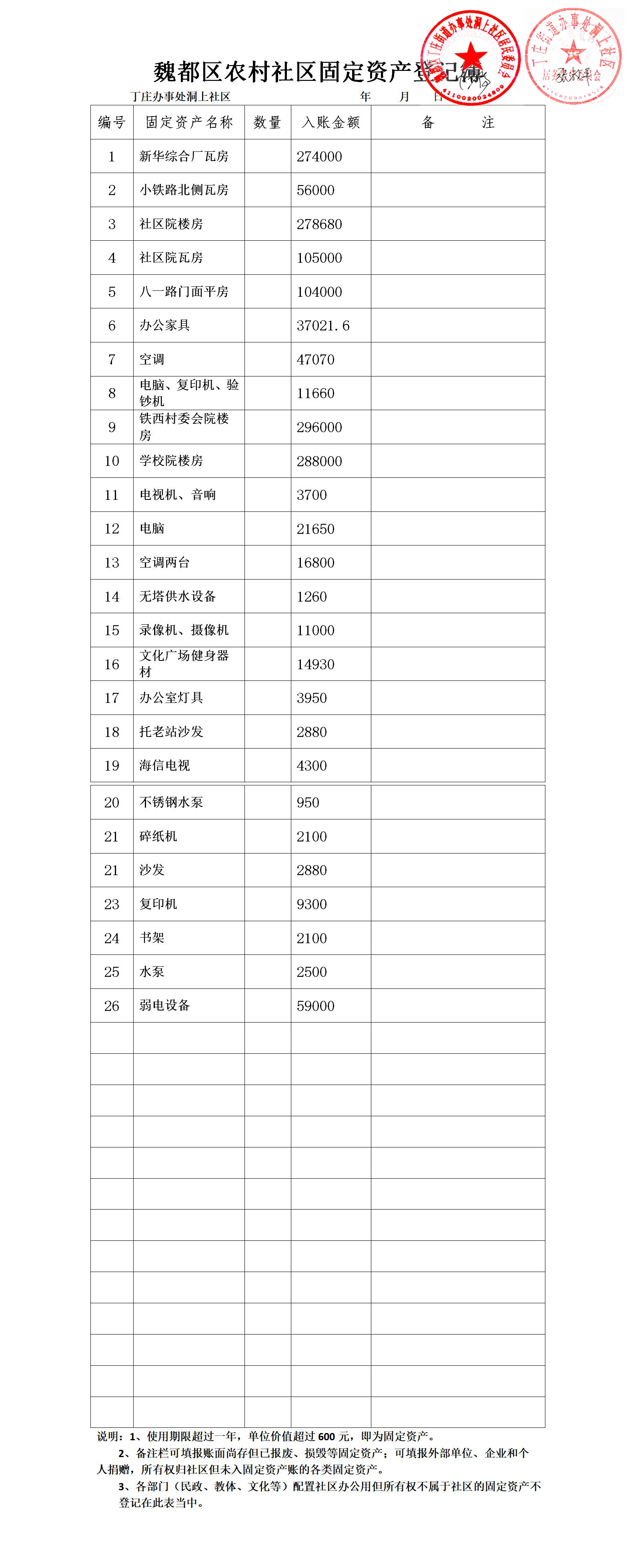 丁庄办事处洞上社区办公类固定资产公示