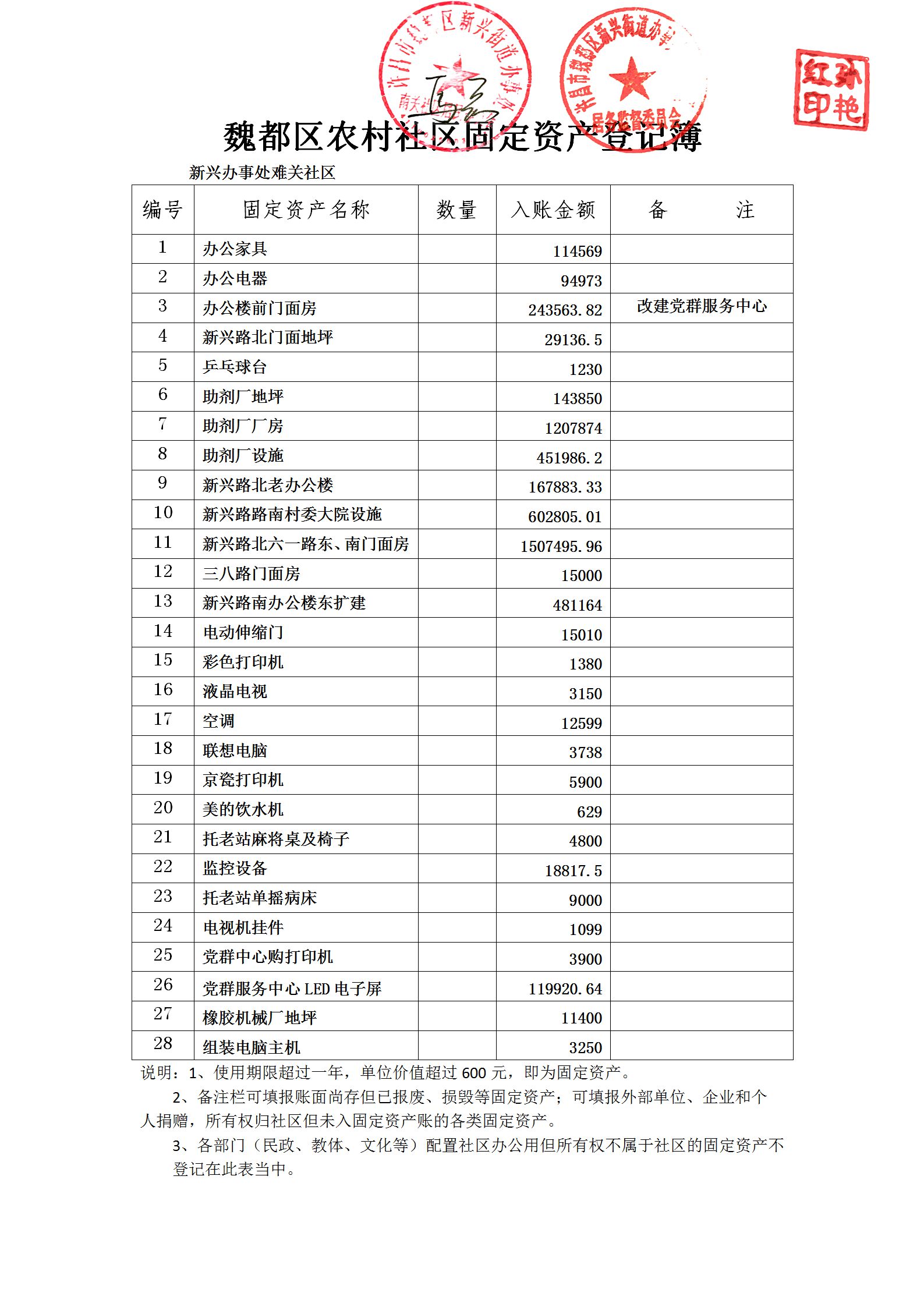 新兴办事处南关社区办公类固定资产公司
