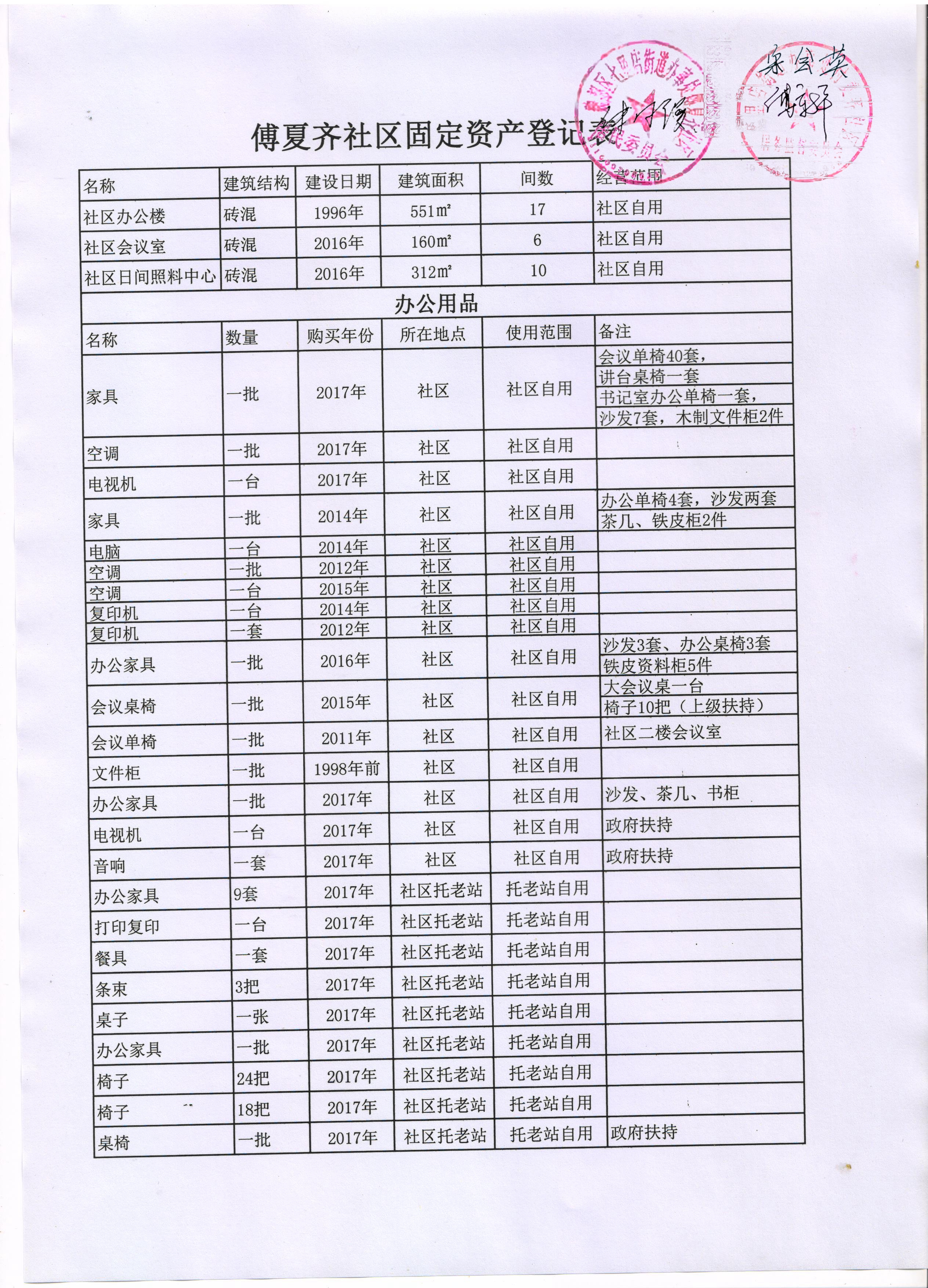 颖昌办事处付夏齐社区办公类固定资产公示表