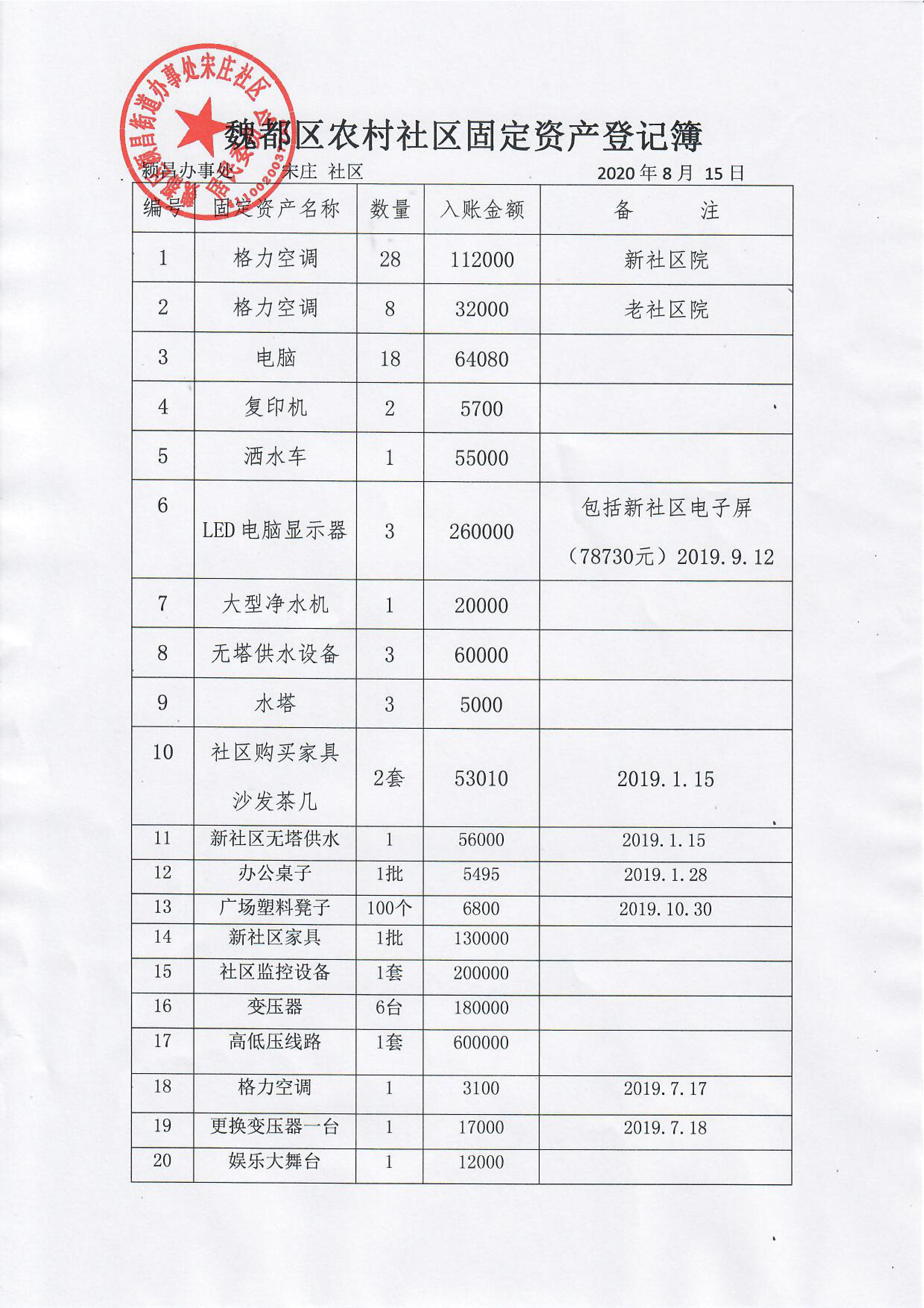 丁庄办事处洪山庙社办公类区固定资产公示表