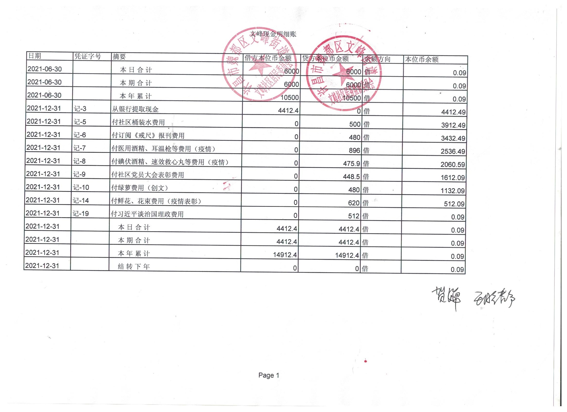 文峰办事处文峰社区2021年第四季度现金、银行存款账户公开表