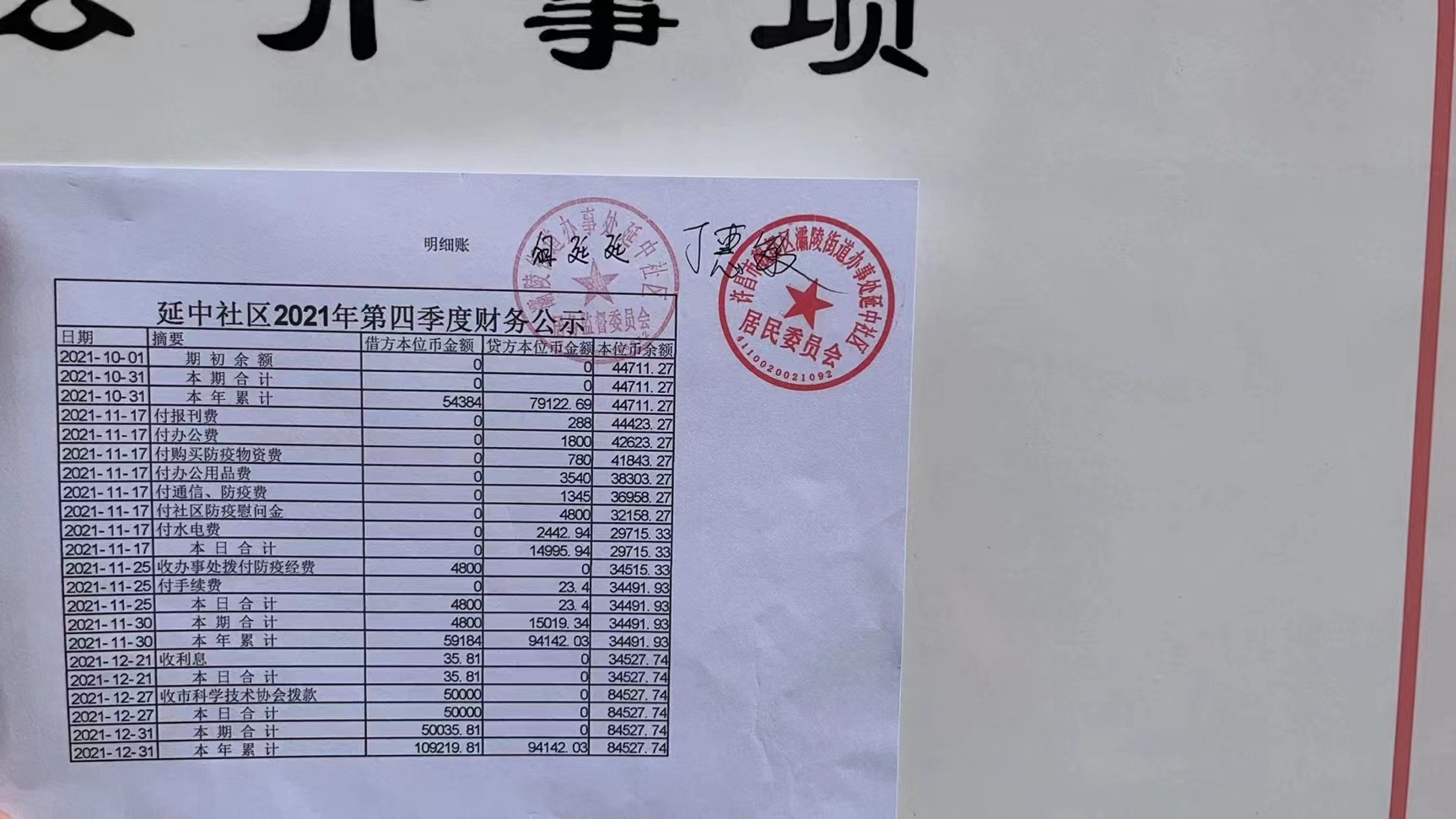 灞陵办事处延中社区2021年第四季度银行存款公示表