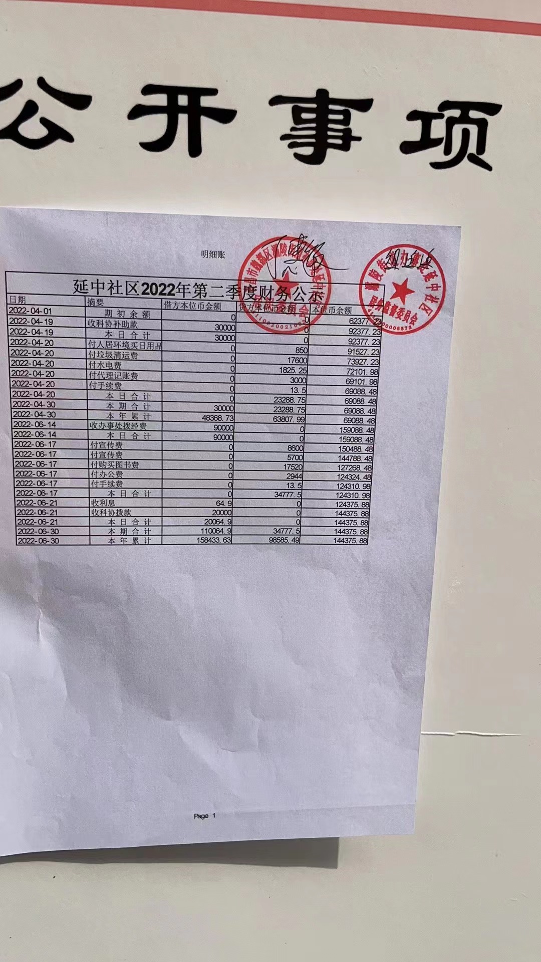 灞陵办事处延中社区2022年第二季度银行存款公示表