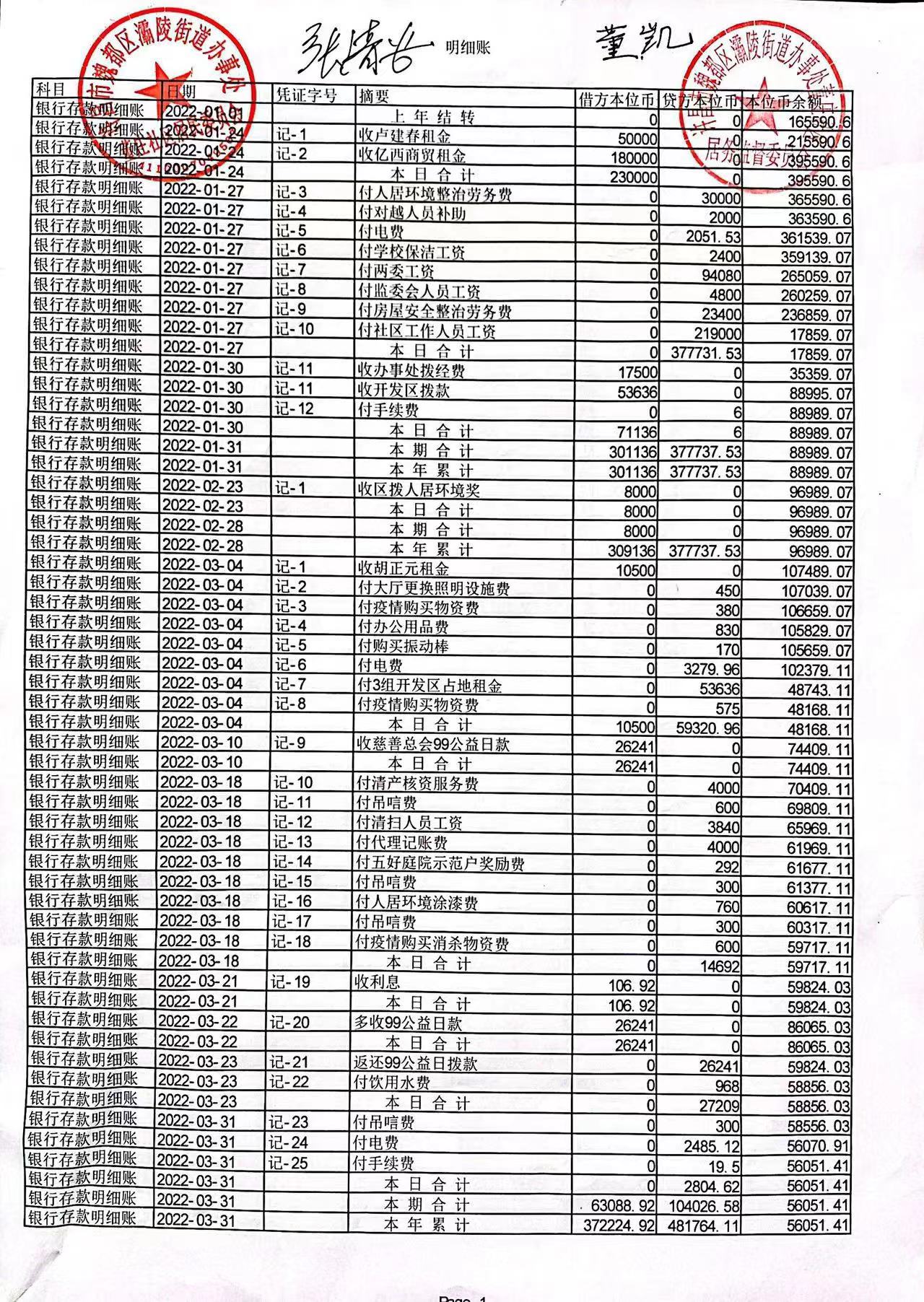 灞陵办事处董庄社区2022年第一季度银行存款公示表