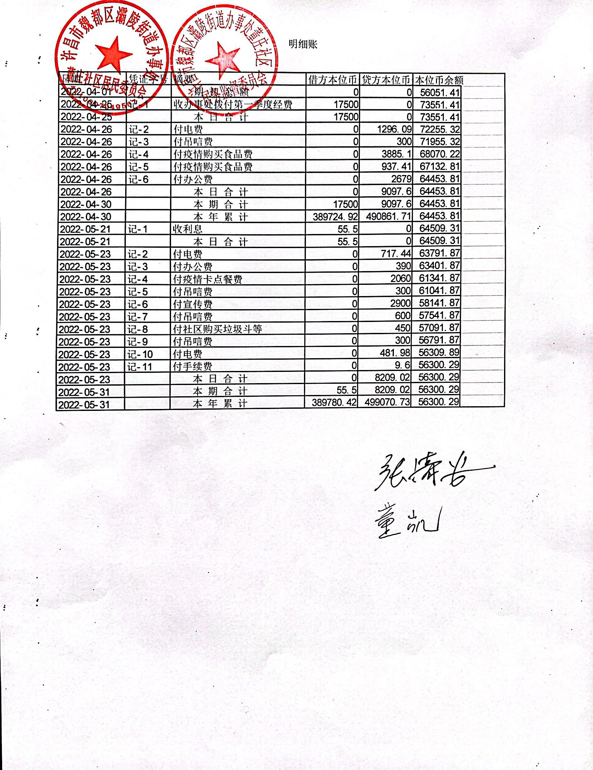 魏北办事处郭楼社区第三季度财务公开