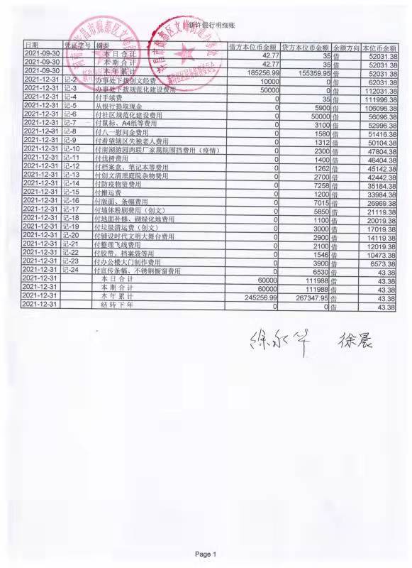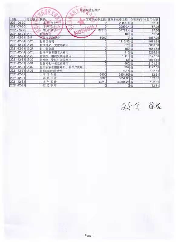文峰办事处新许社区2021年第四季度现金、银行存款账户公开表