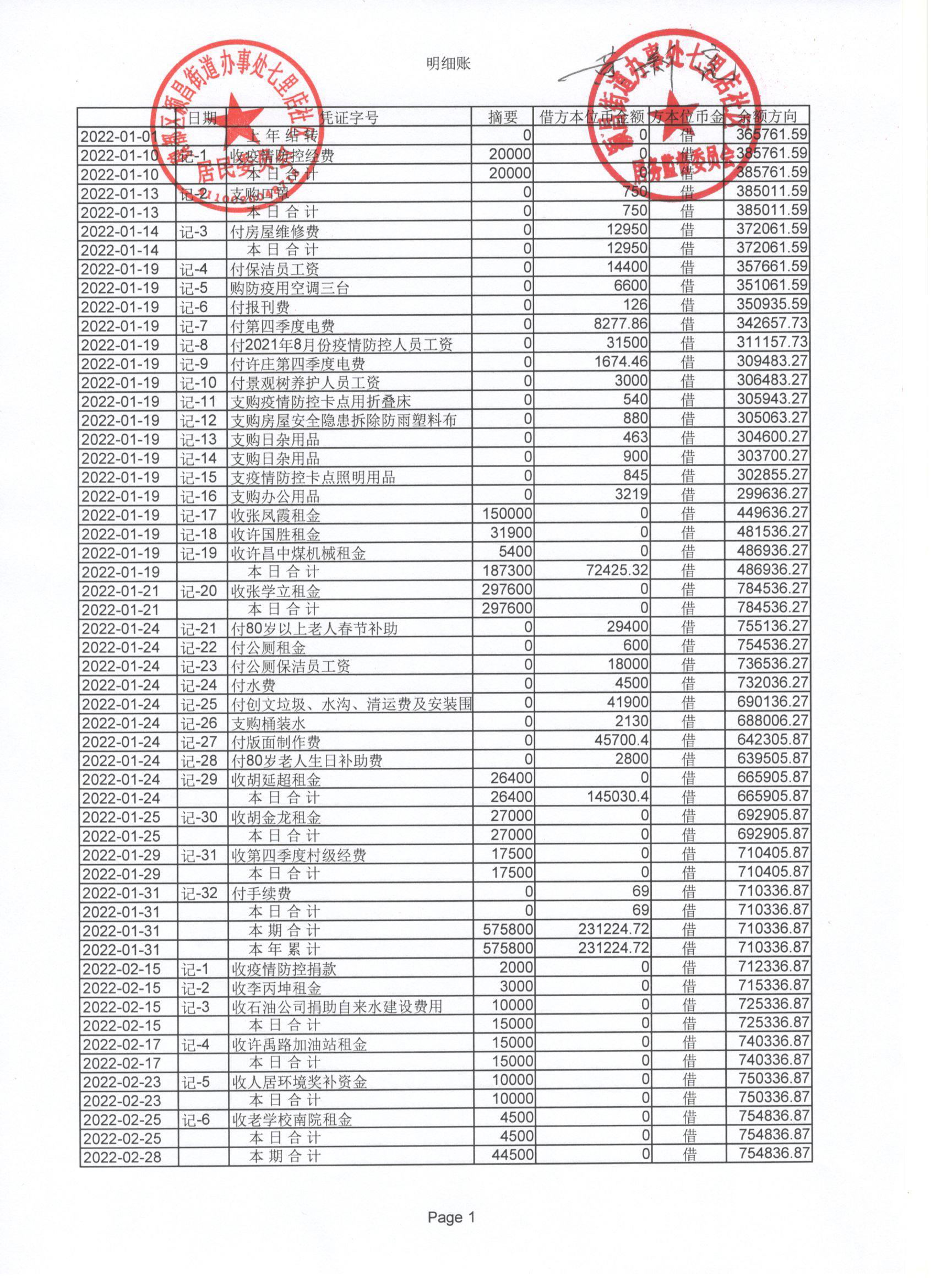 颍昌街道办事处七里店社区2022年第一季度现金、银行存款账户公开表