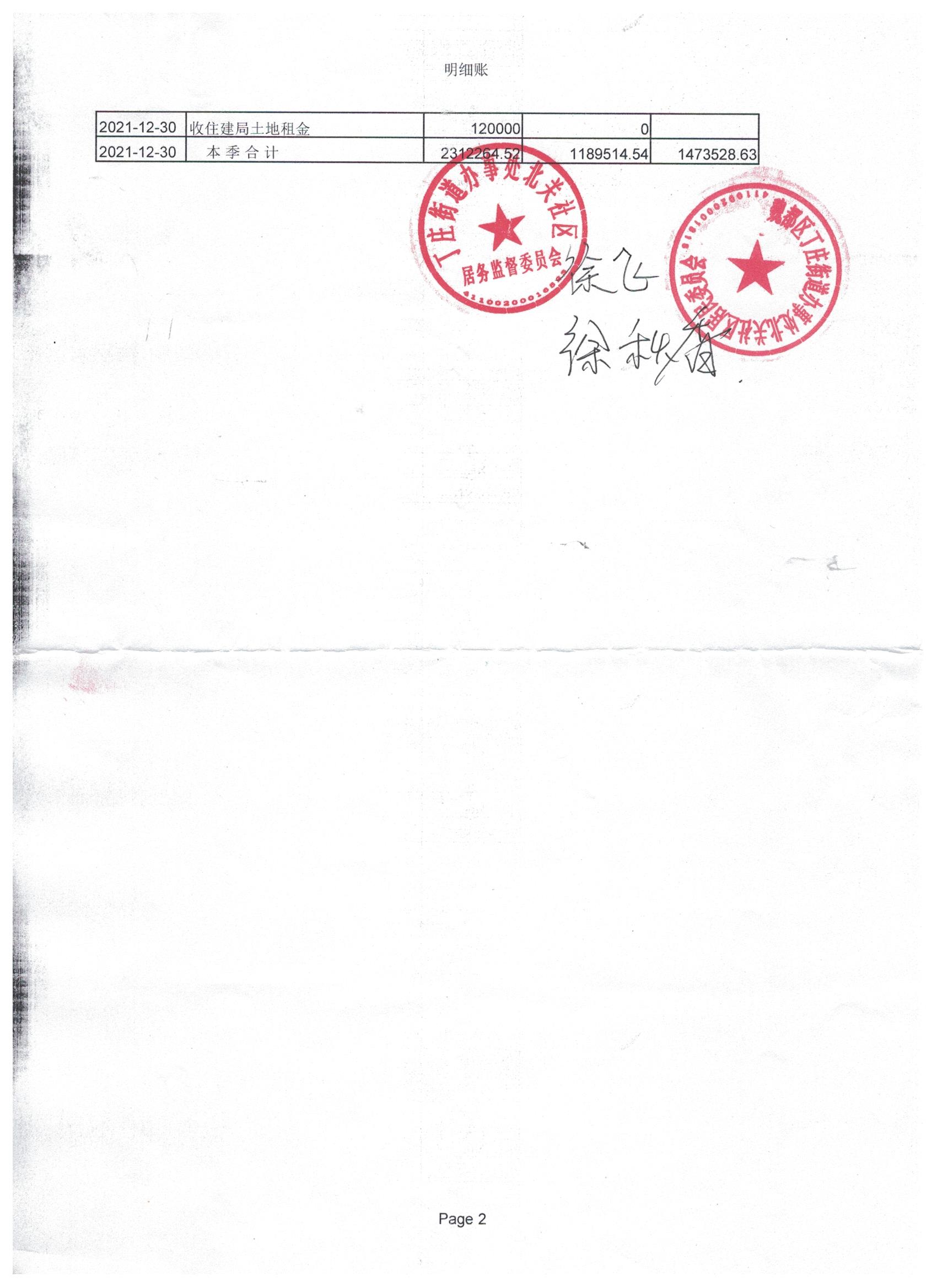 魏北办事处金湾社区2021年第四季度10-12月明细账公开表