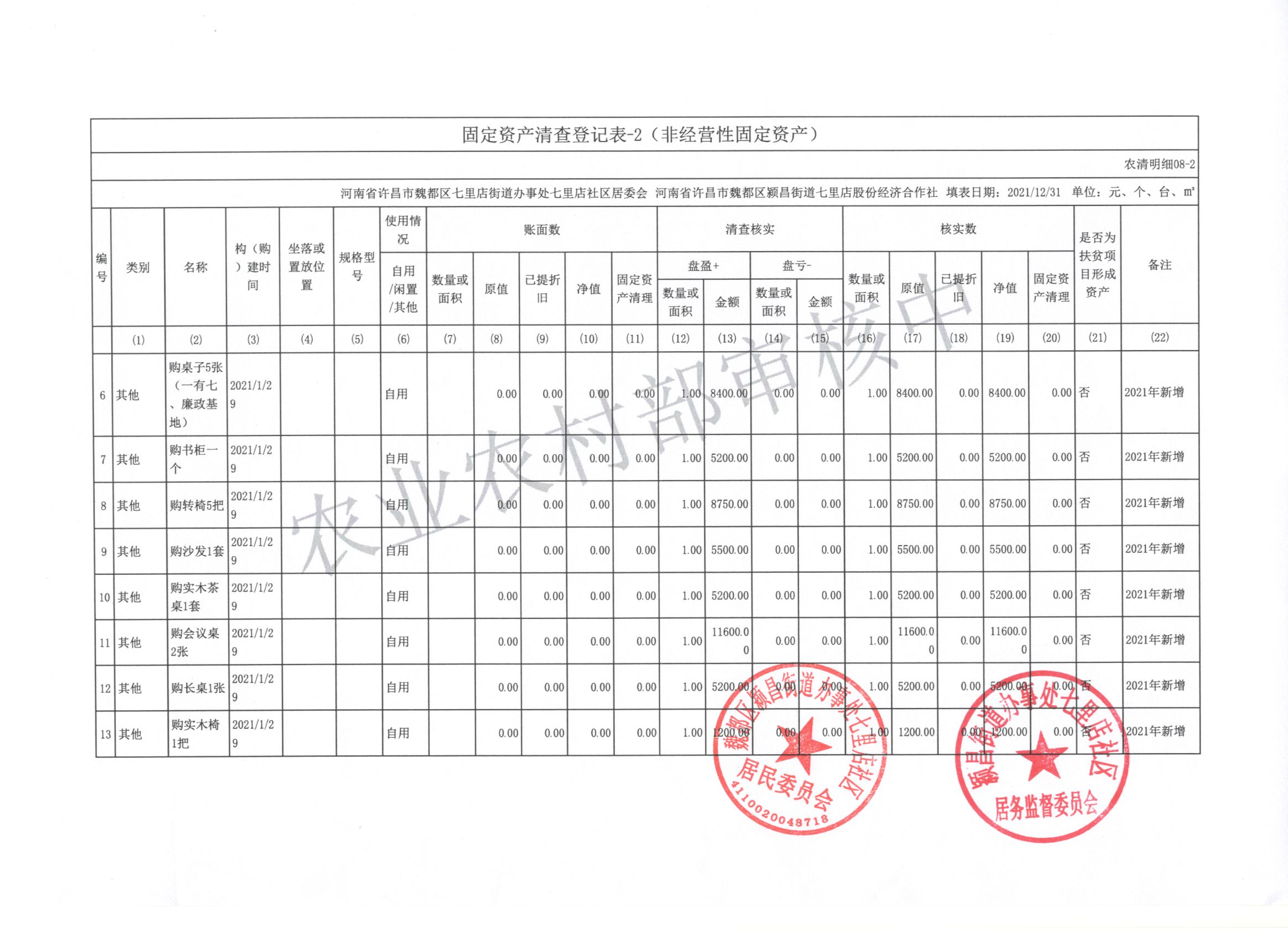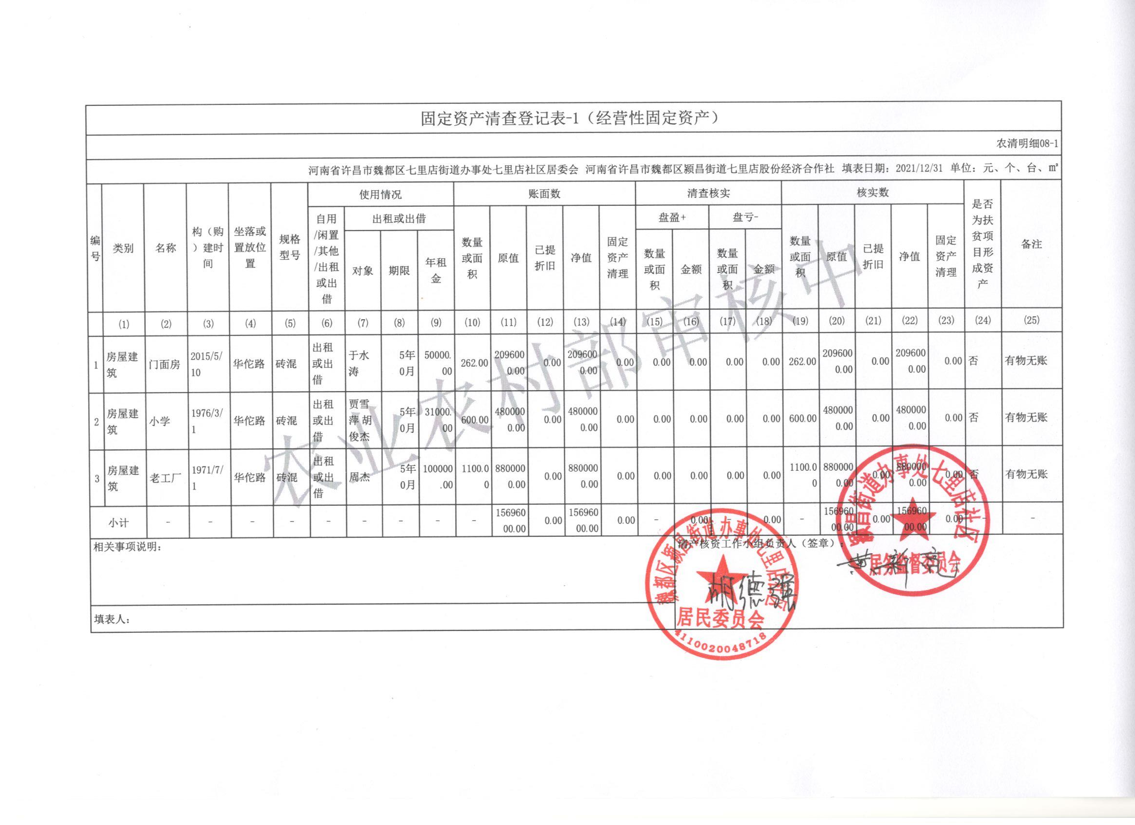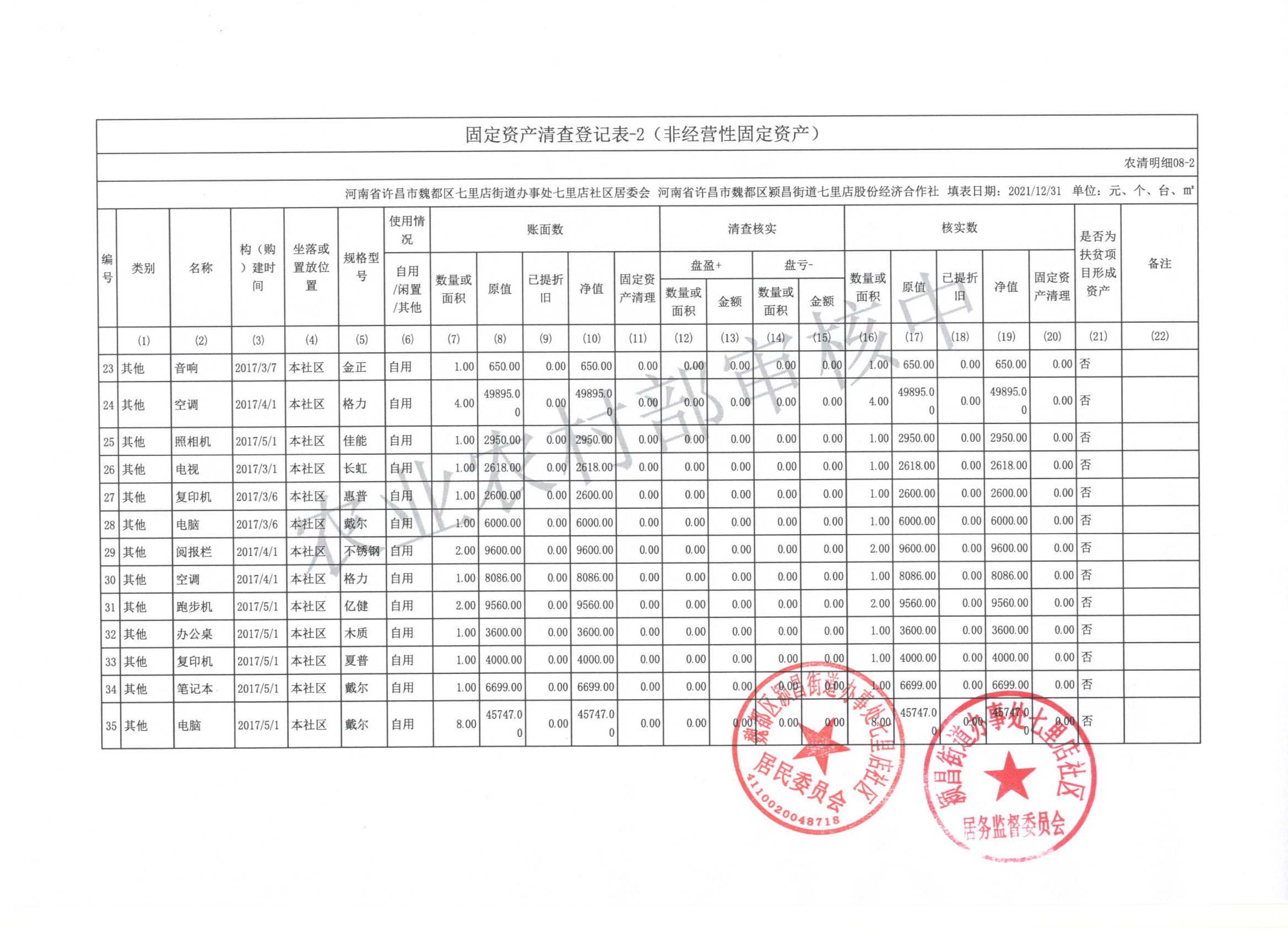 颍昌街道办事处七里店社区2021年固定资产清查明细表