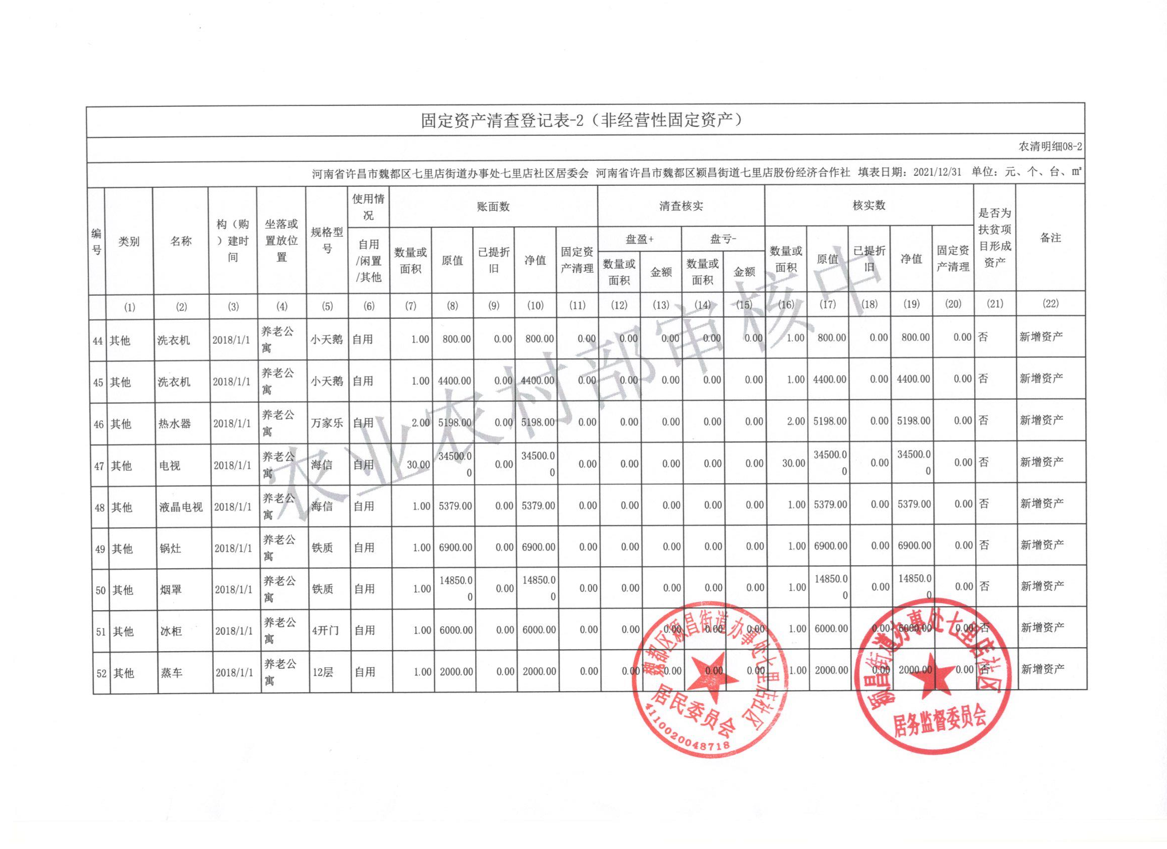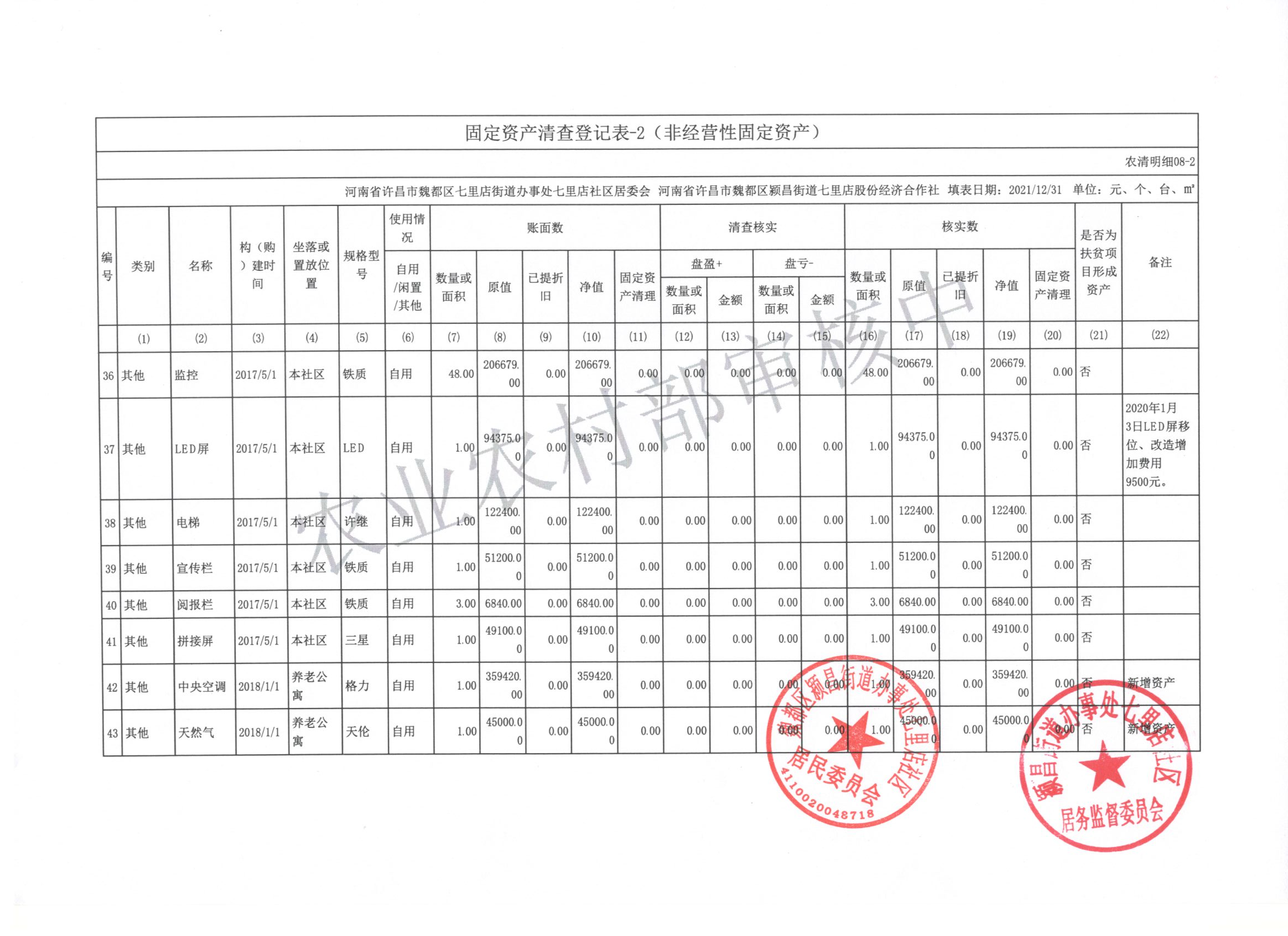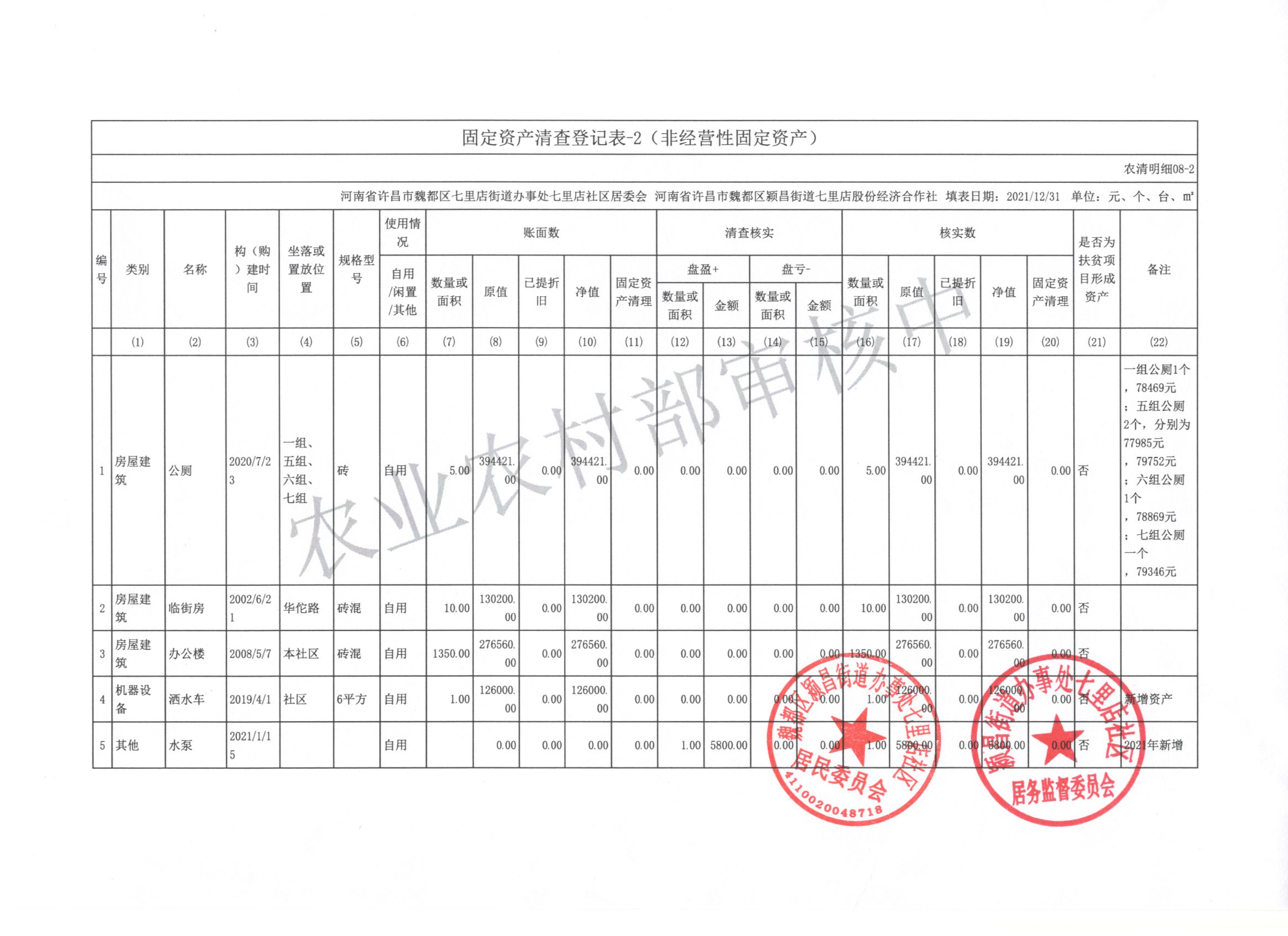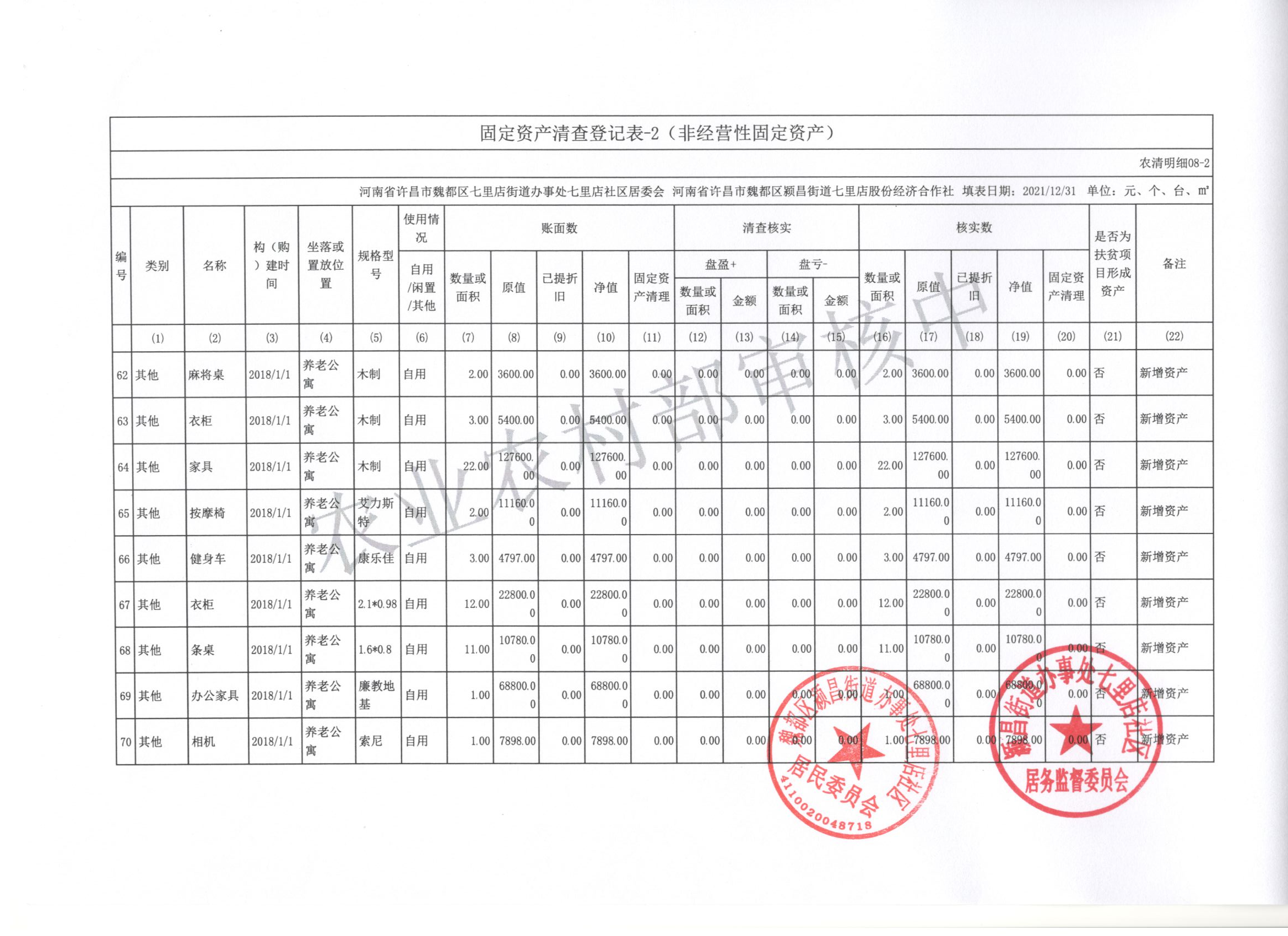 颍昌街道办事处七里店社区2021年固定资产清查明细表