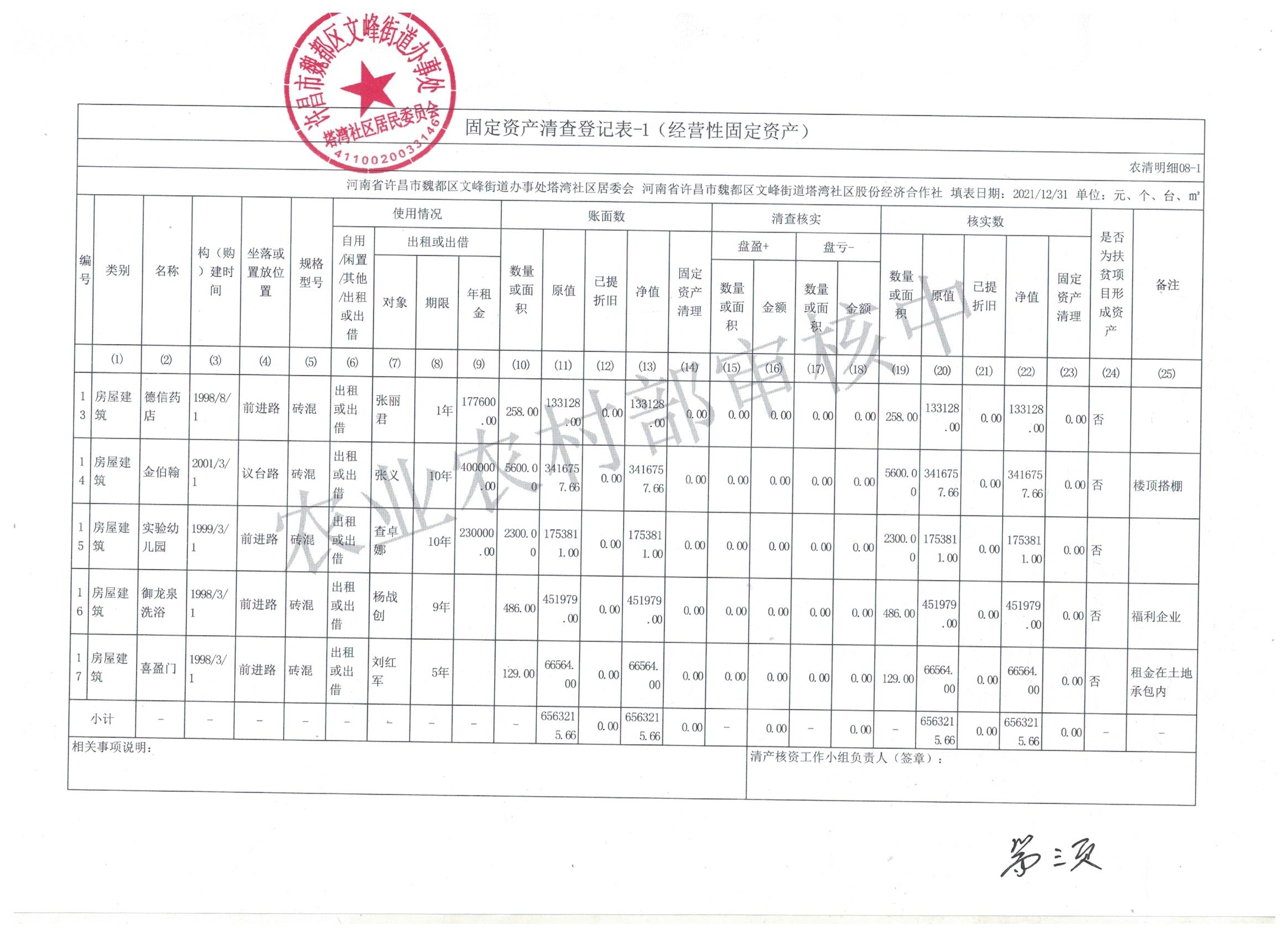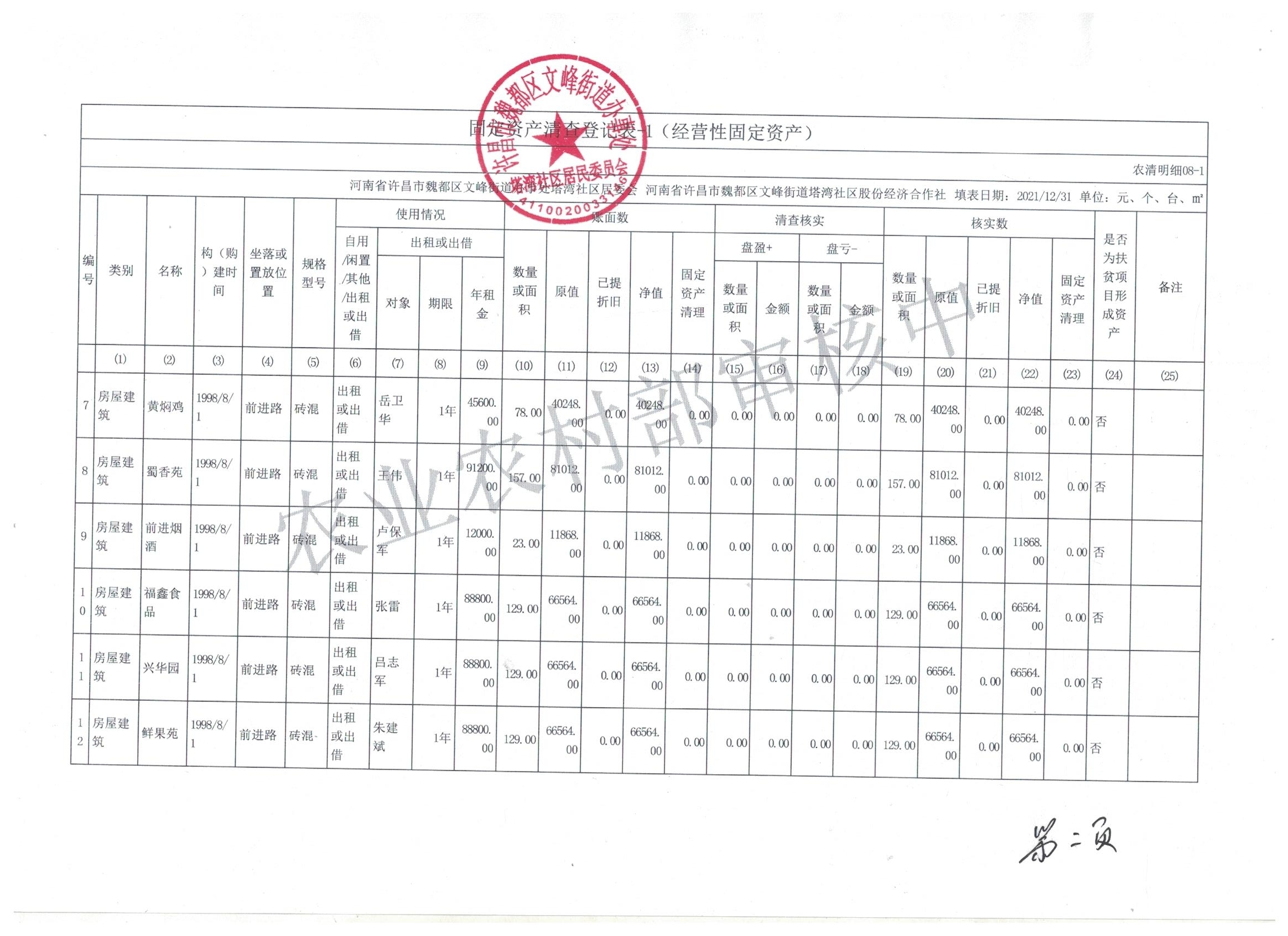 颍昌街道办事处庞庄社区2021年固定资产清查表