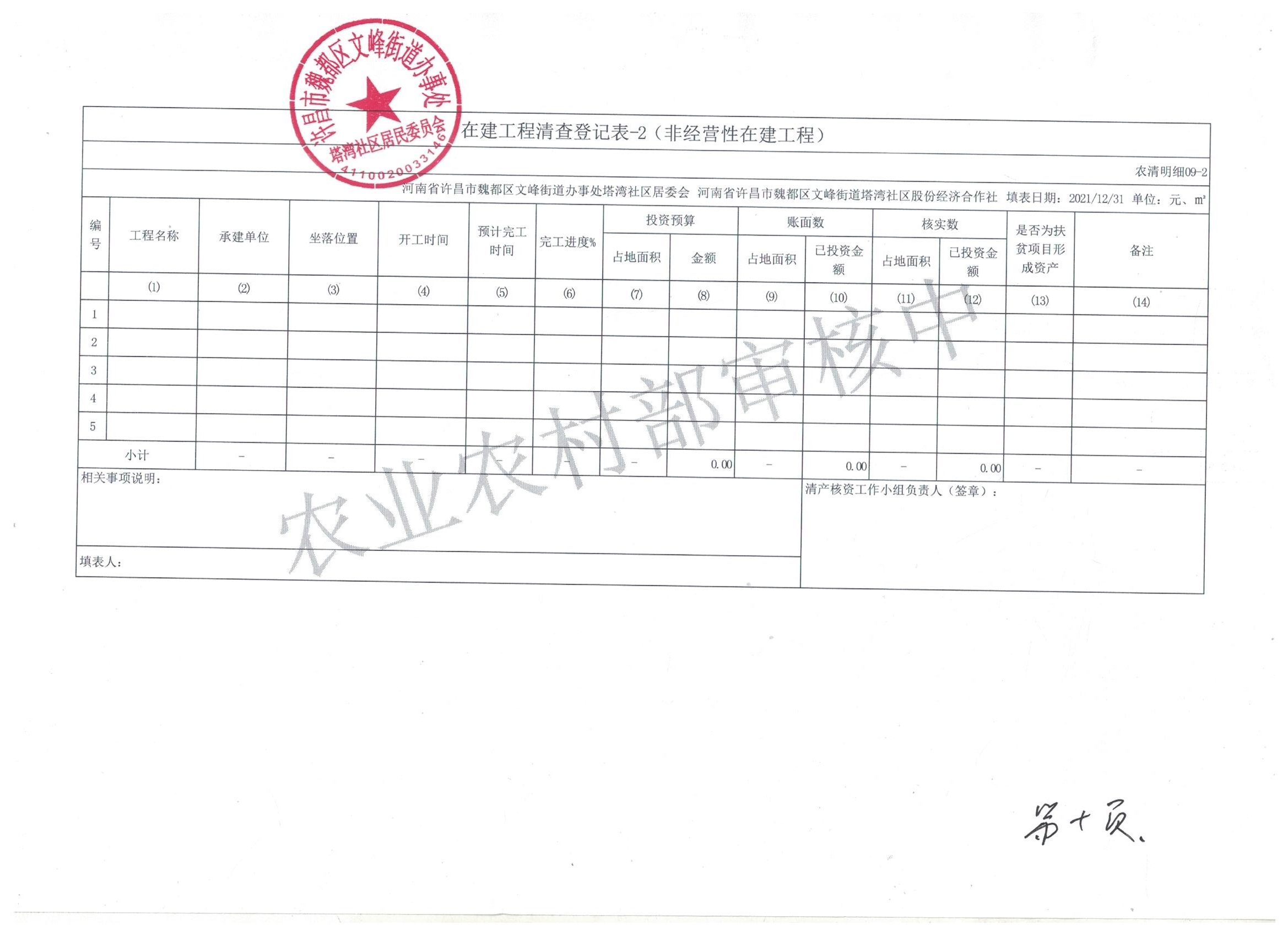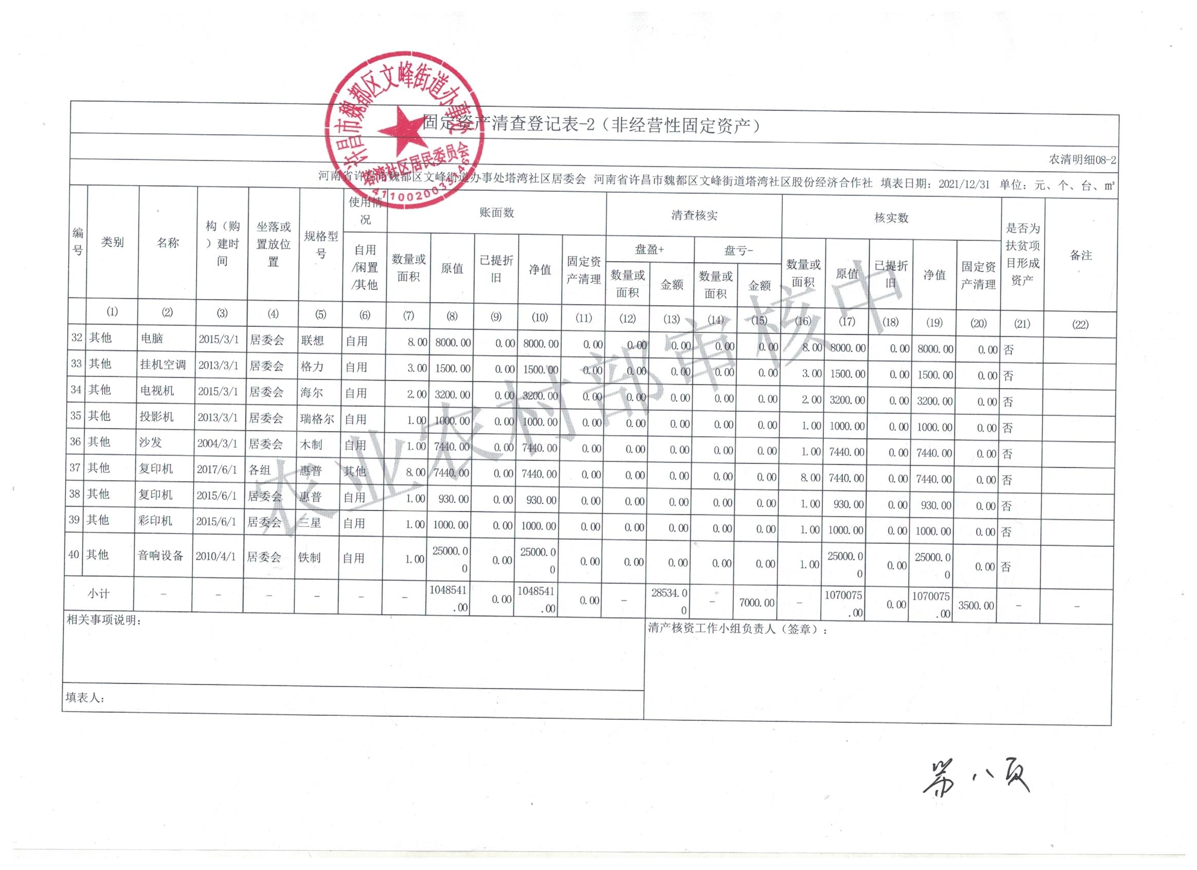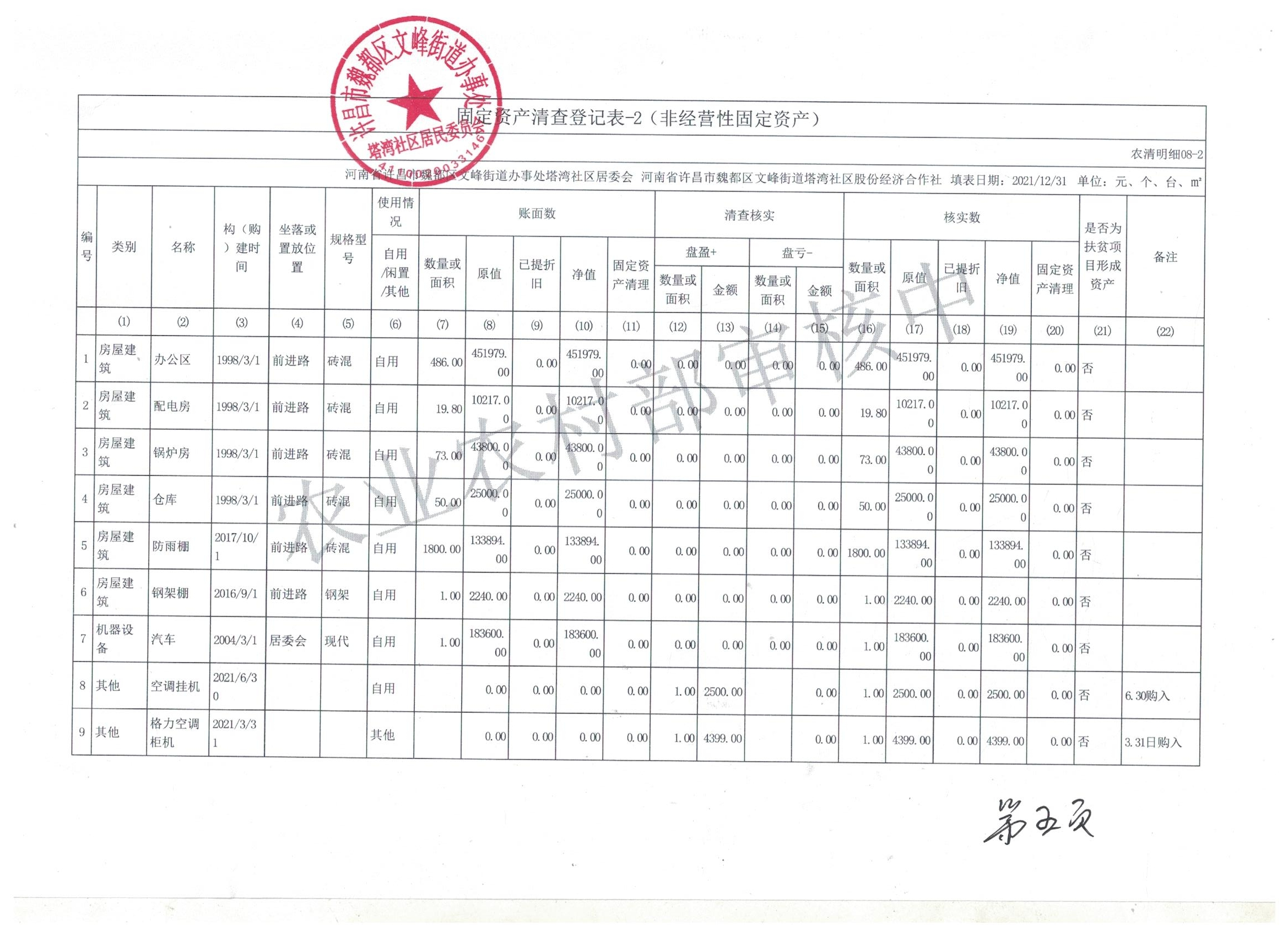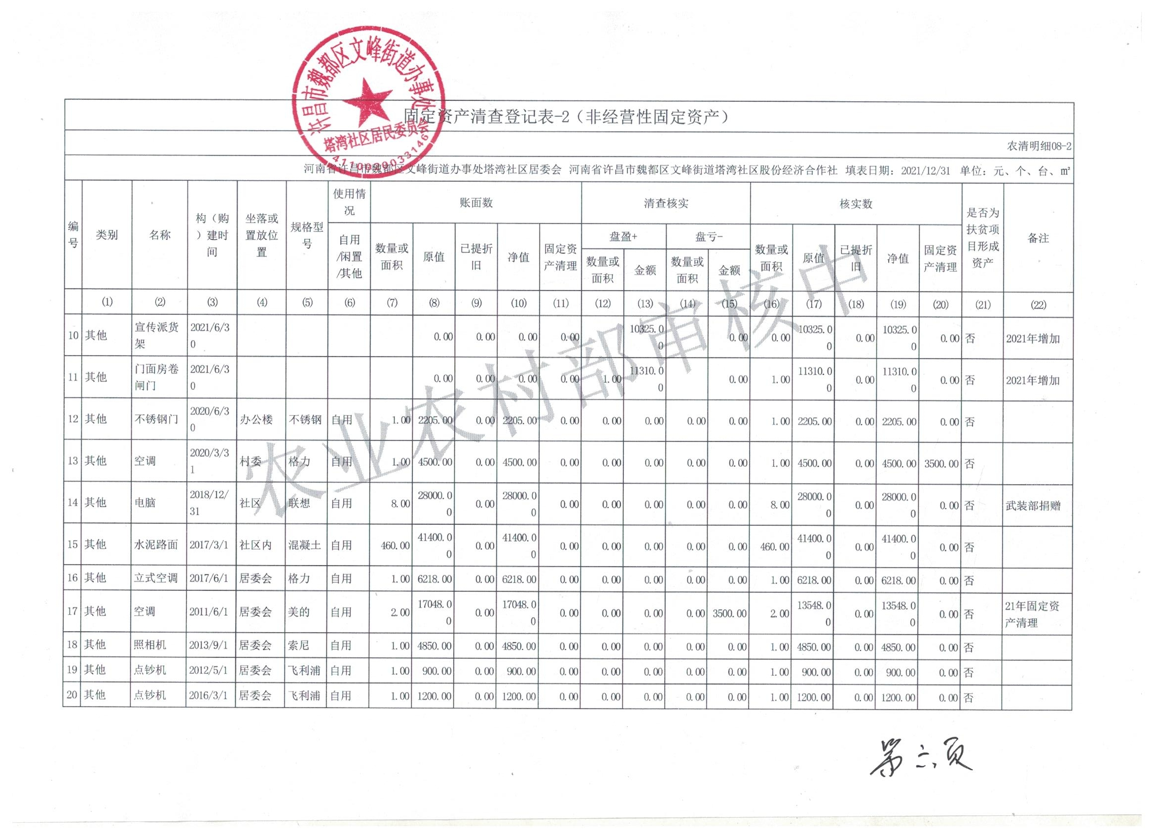 文峰街道办事处塔湾社区2021年度固定资产明细表
