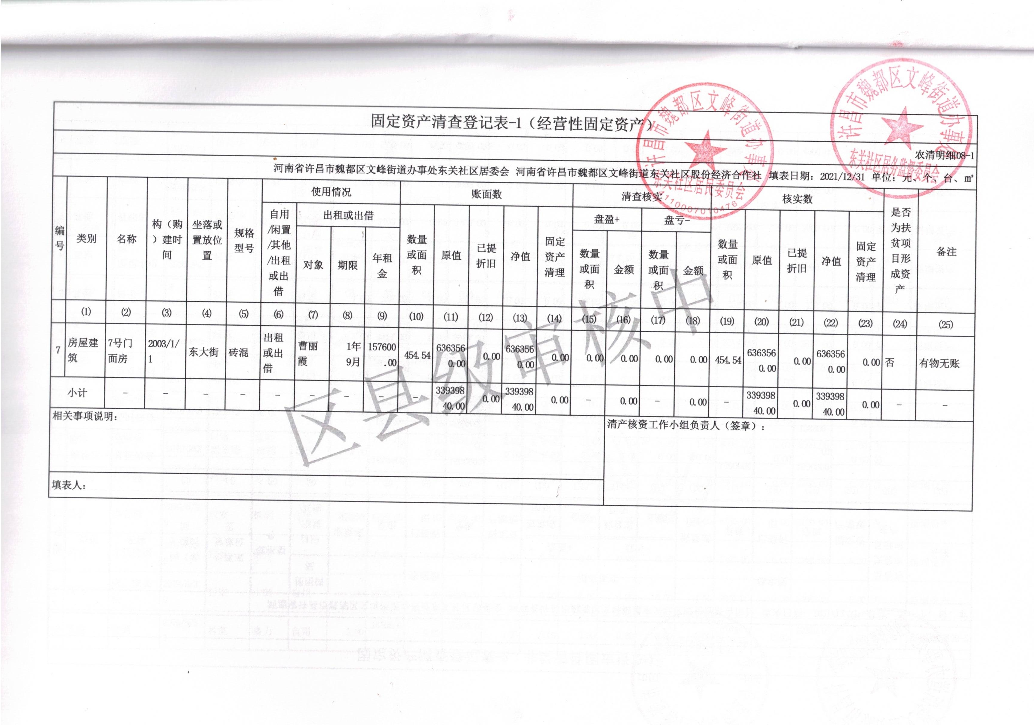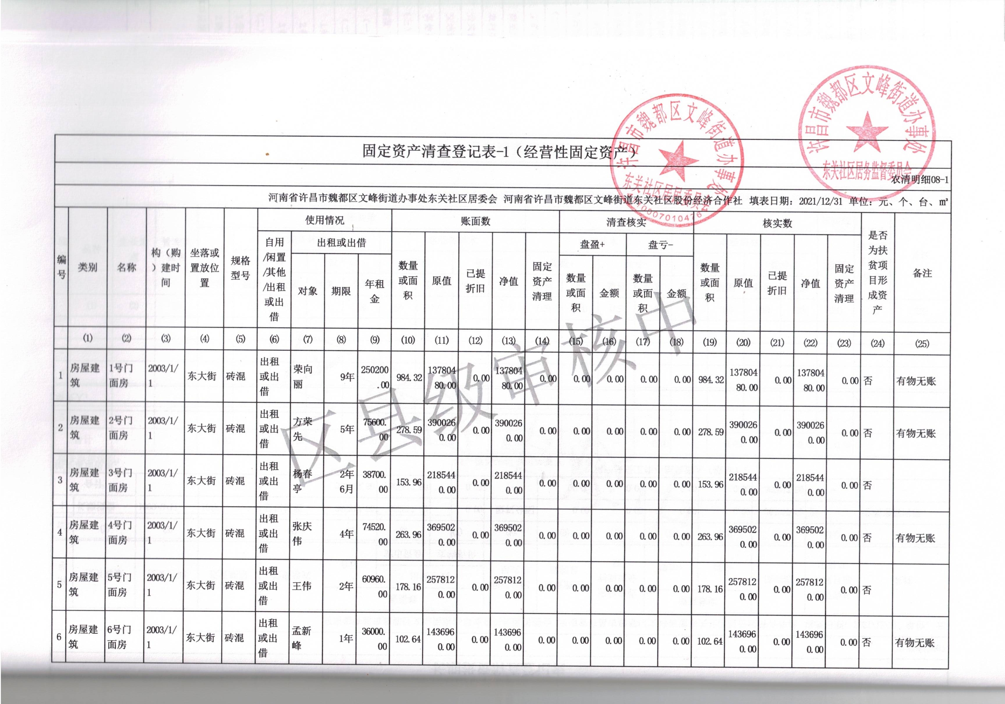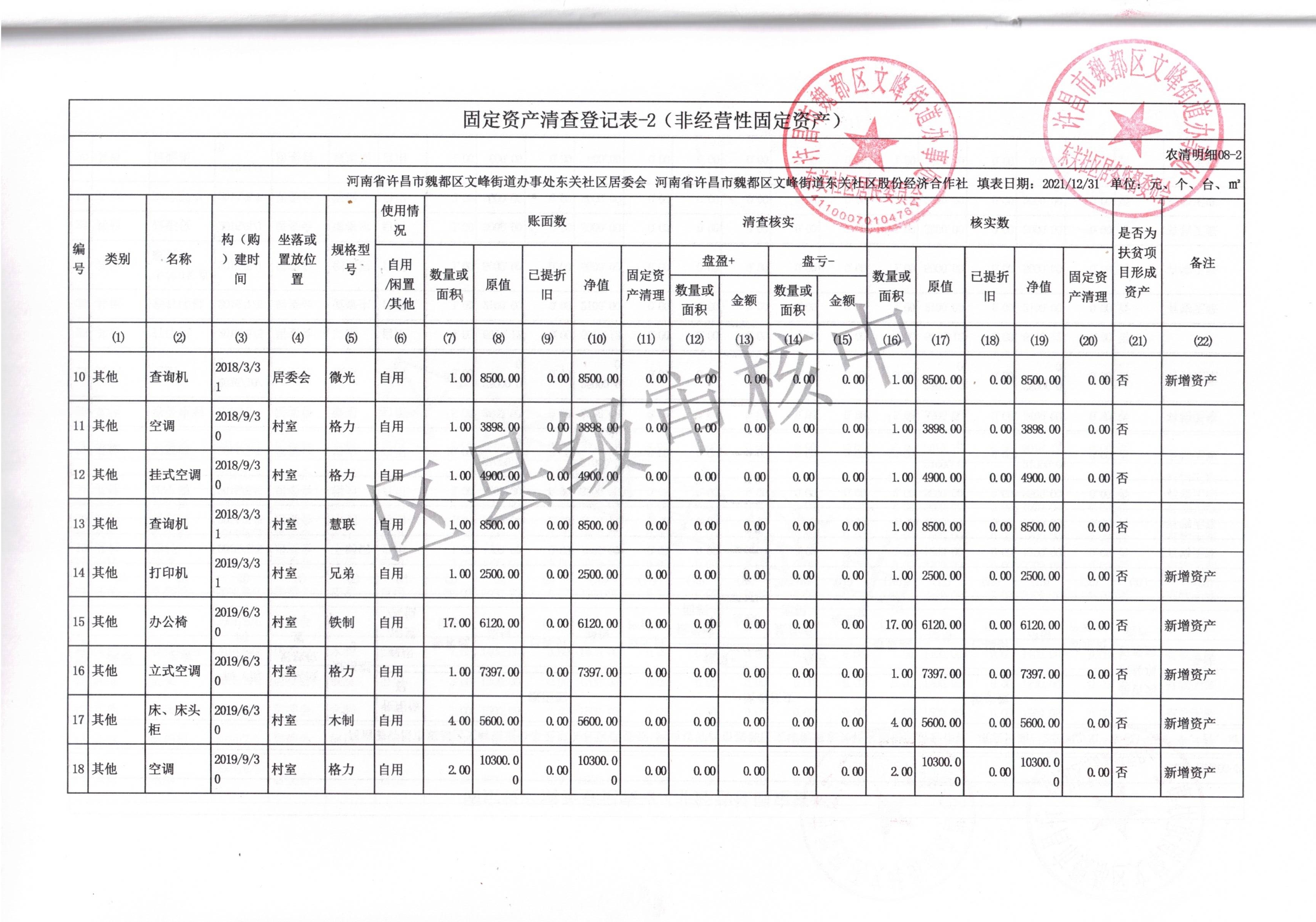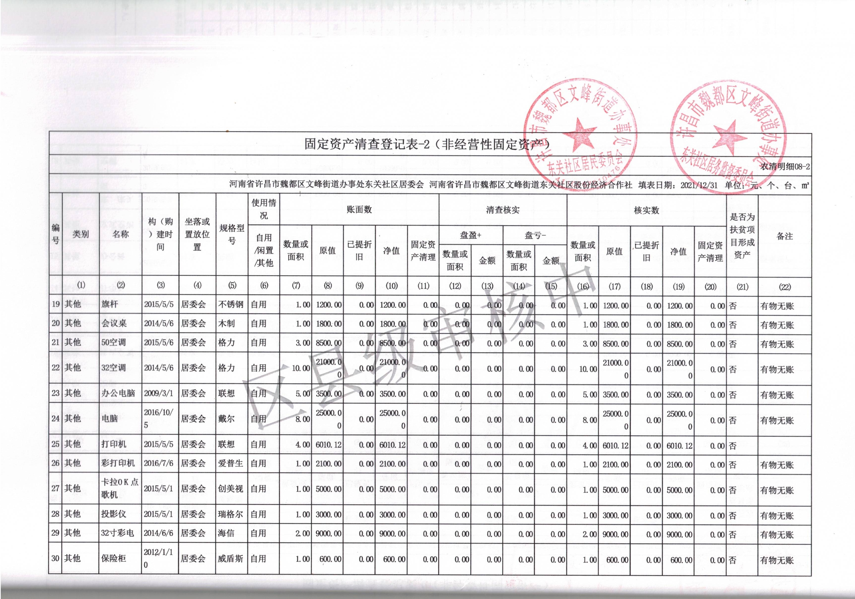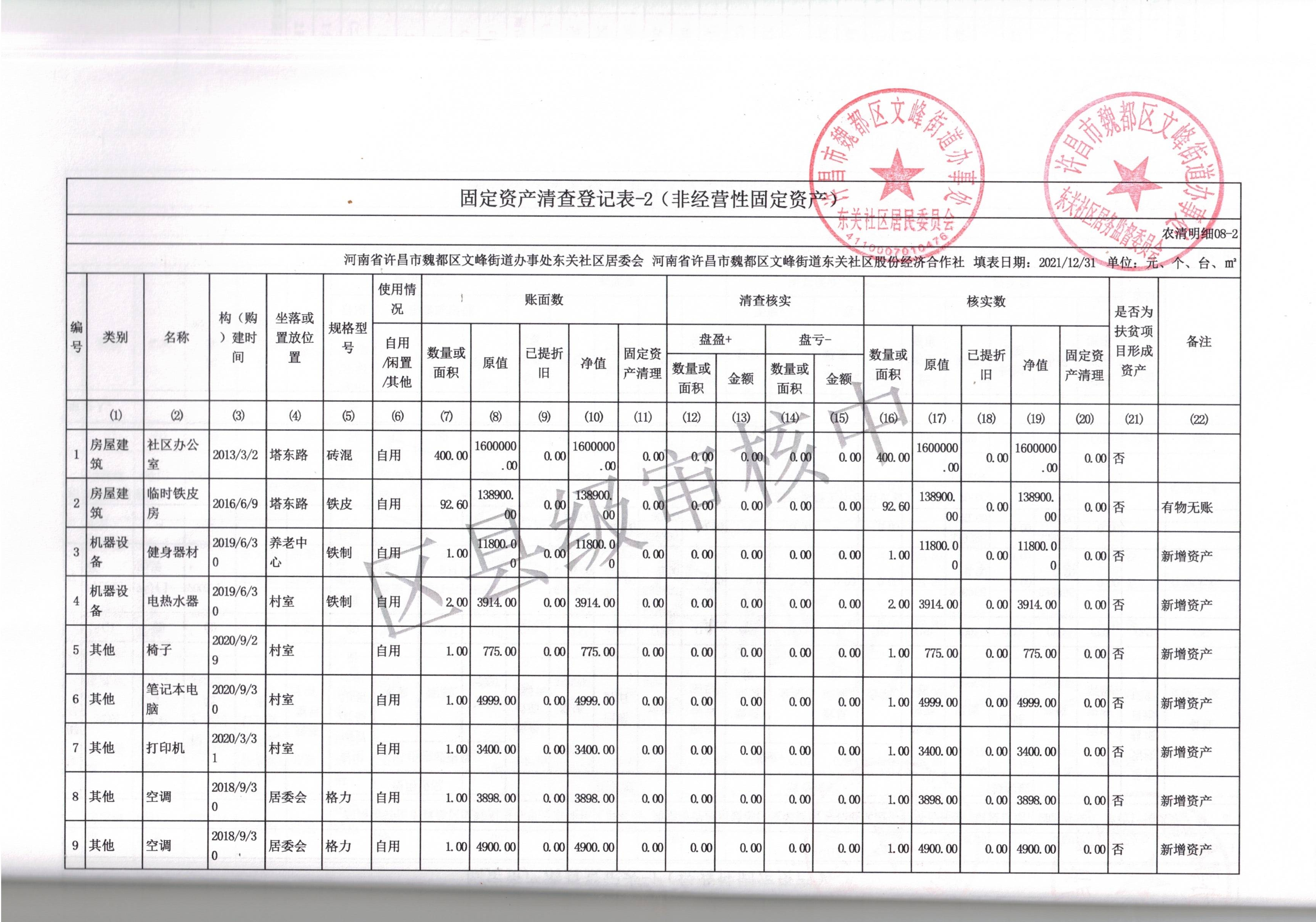 颍昌街道办事处孙庙社区2021年固定资产清查明细表