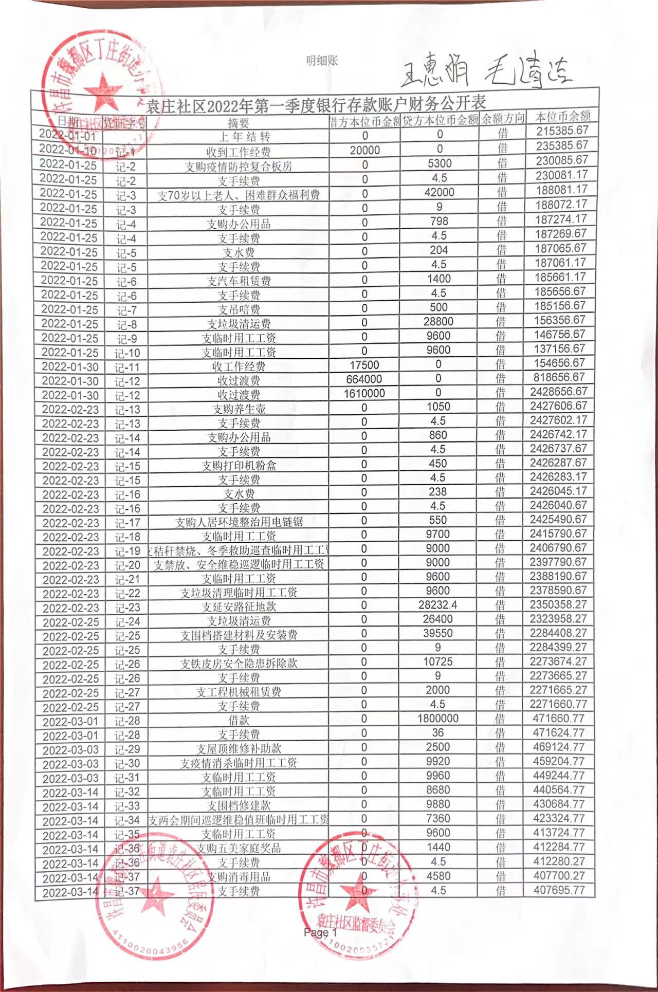 丁庄办事处袁庄社区2022年第一季度银行存款账户公开表