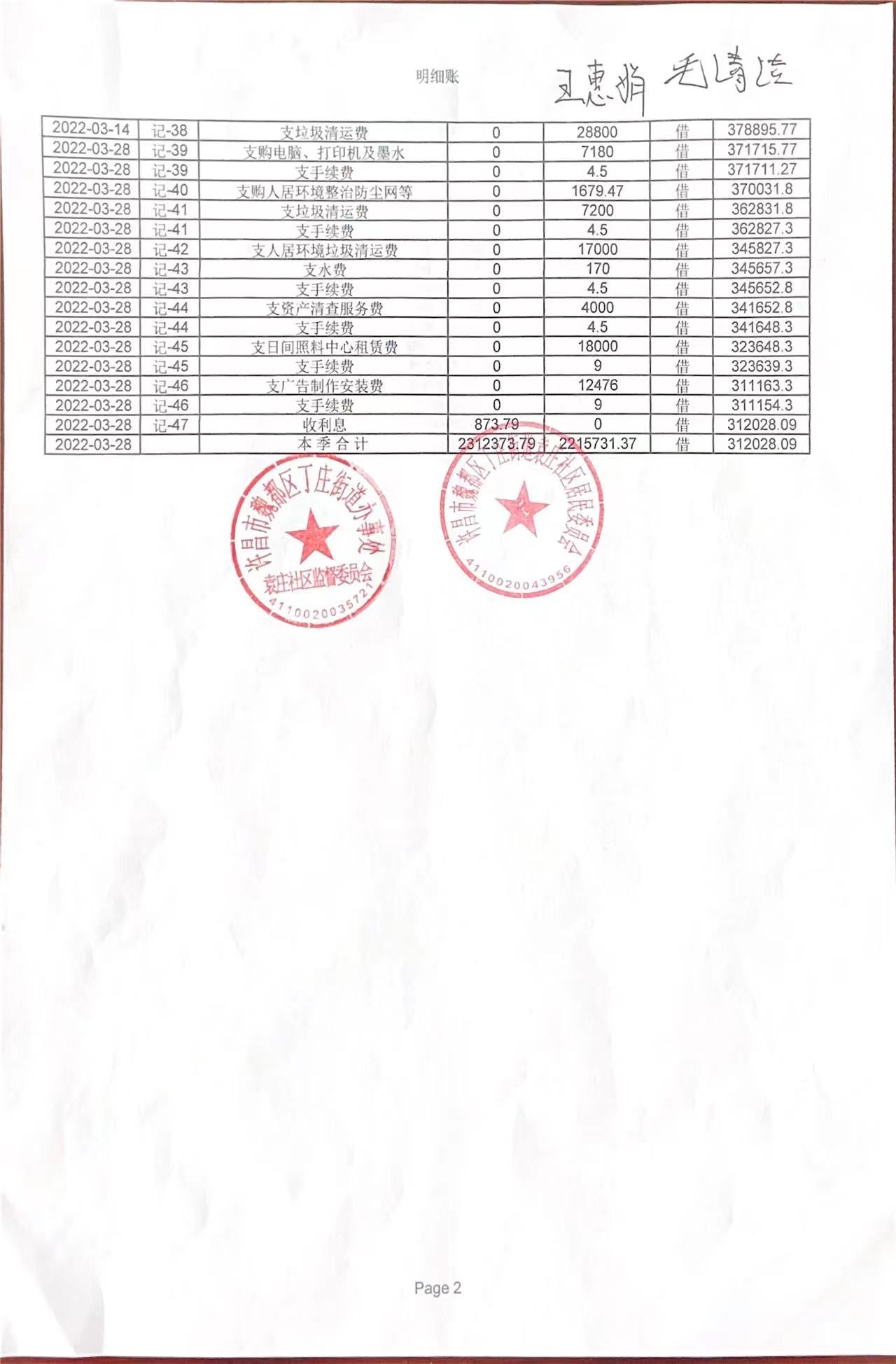 丁庄办事处洞上社区2022年第一季度银行存款账户公开表