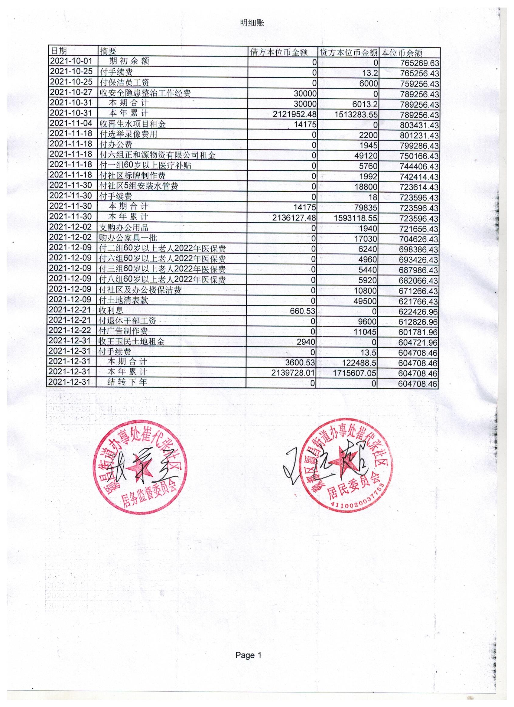 颍昌街道办事处崔代张社区2021年第四季度现金、银行存款账户公开表
