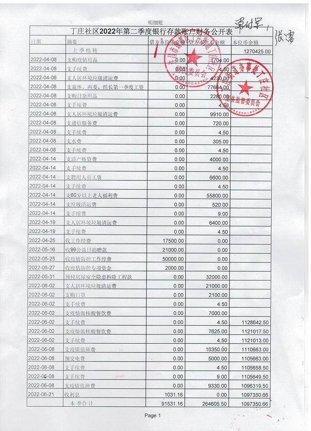 丁庄办事处丁庄社区2022年第二季度银行存款账户公开表