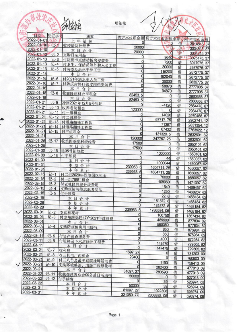 颍昌街道办事处宋庄社区2022年一季度现金、银行存款账户公开表
