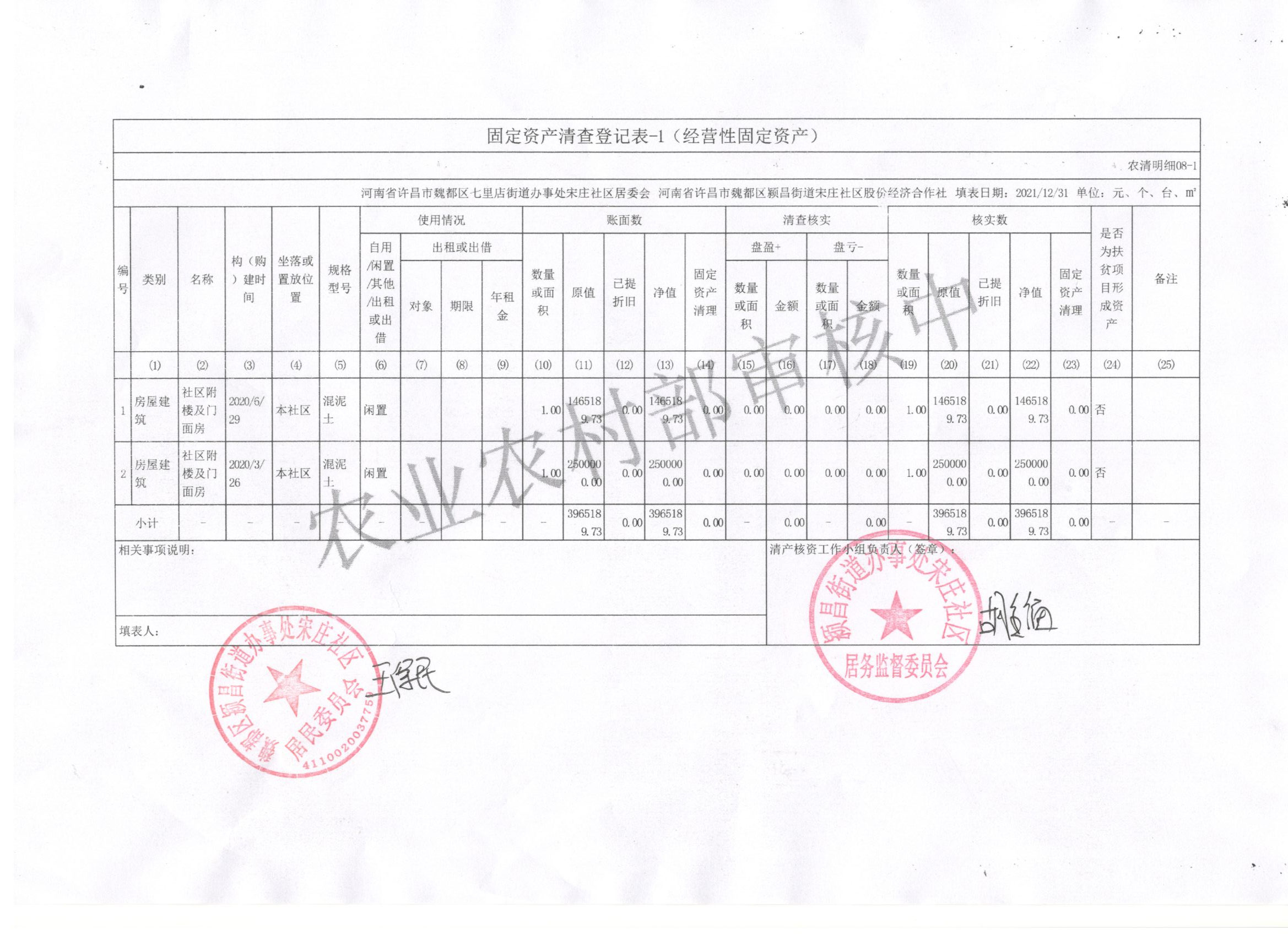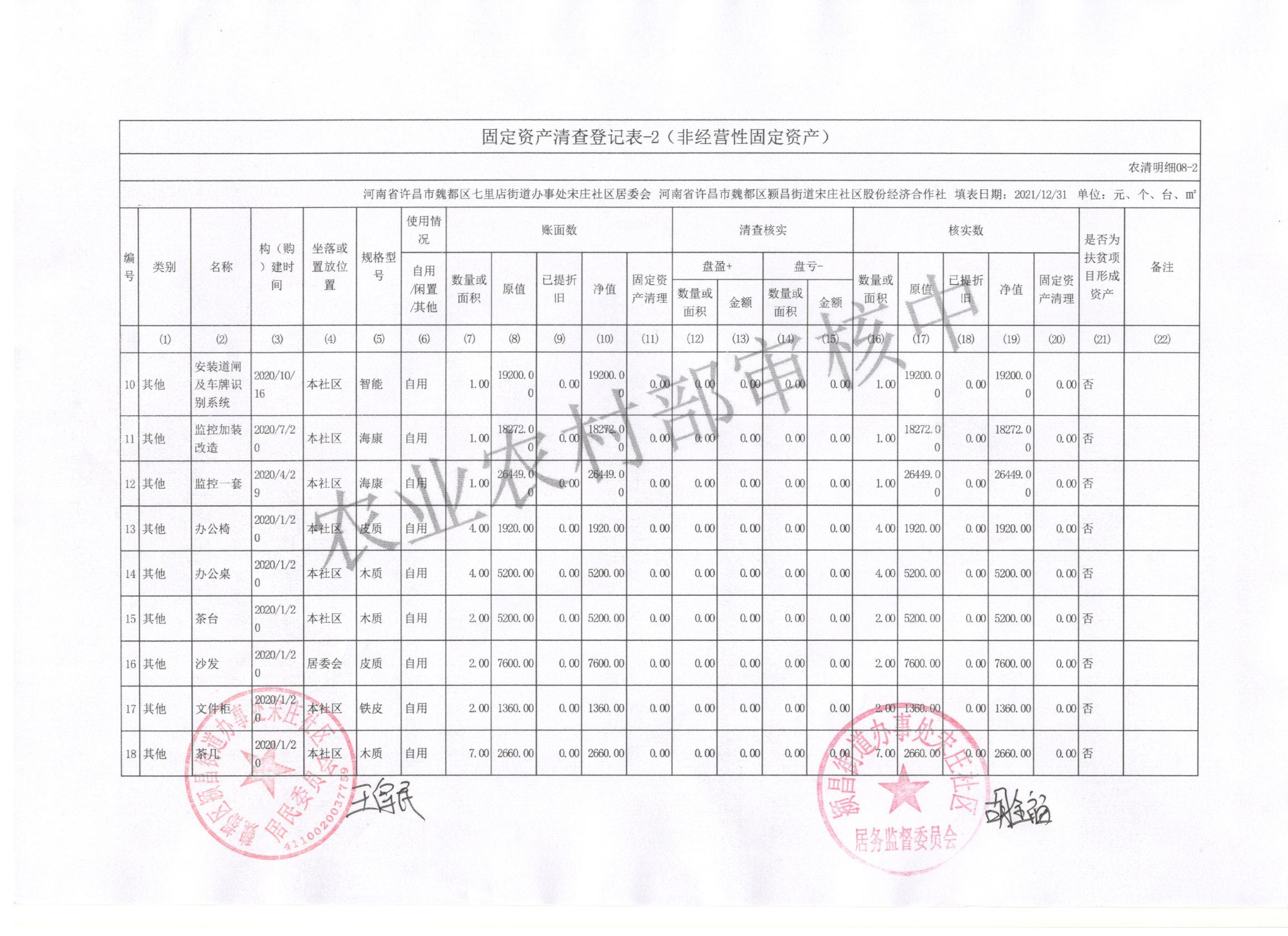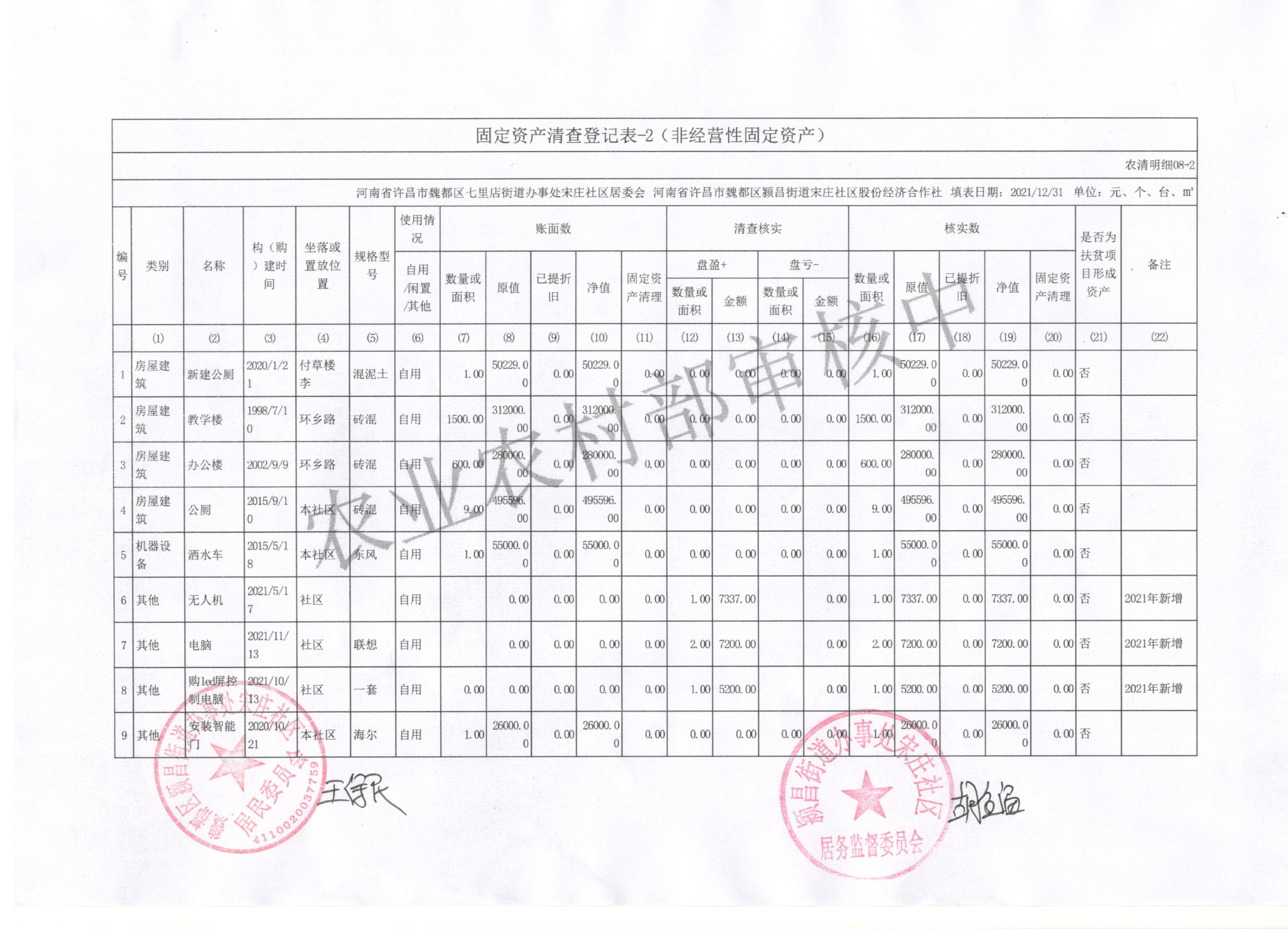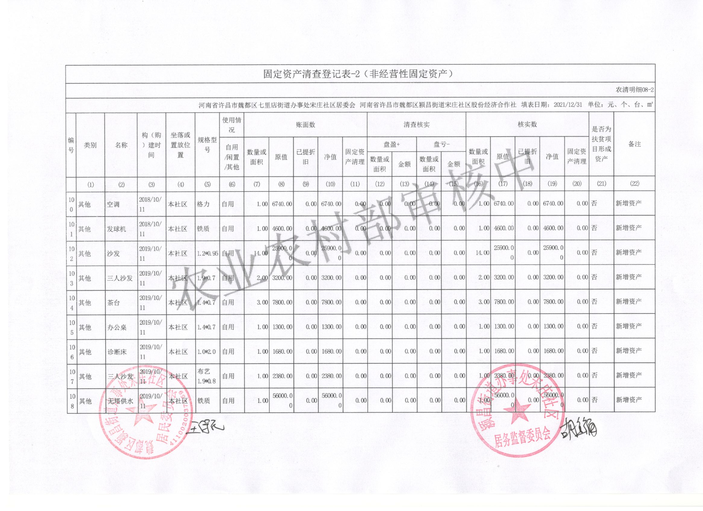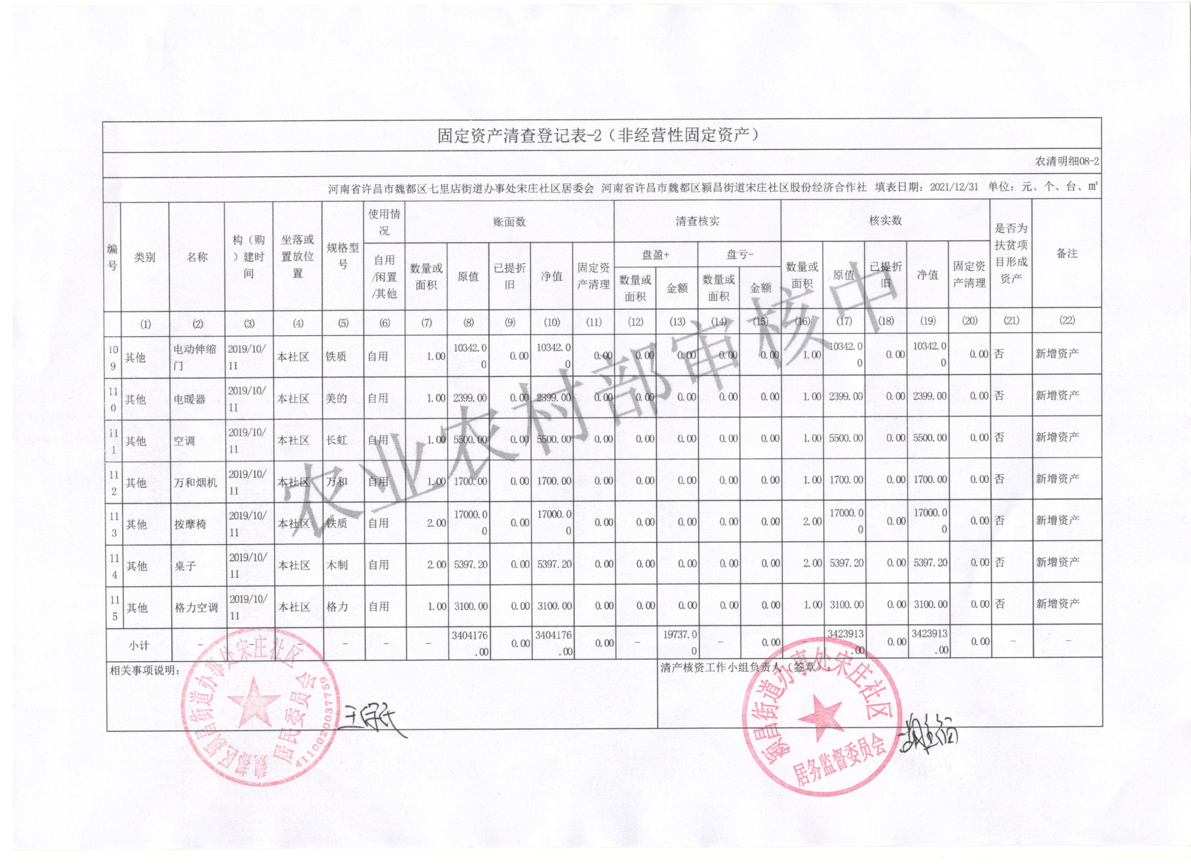 颍昌街道办事处宋庄社区2021年固定资产清查表