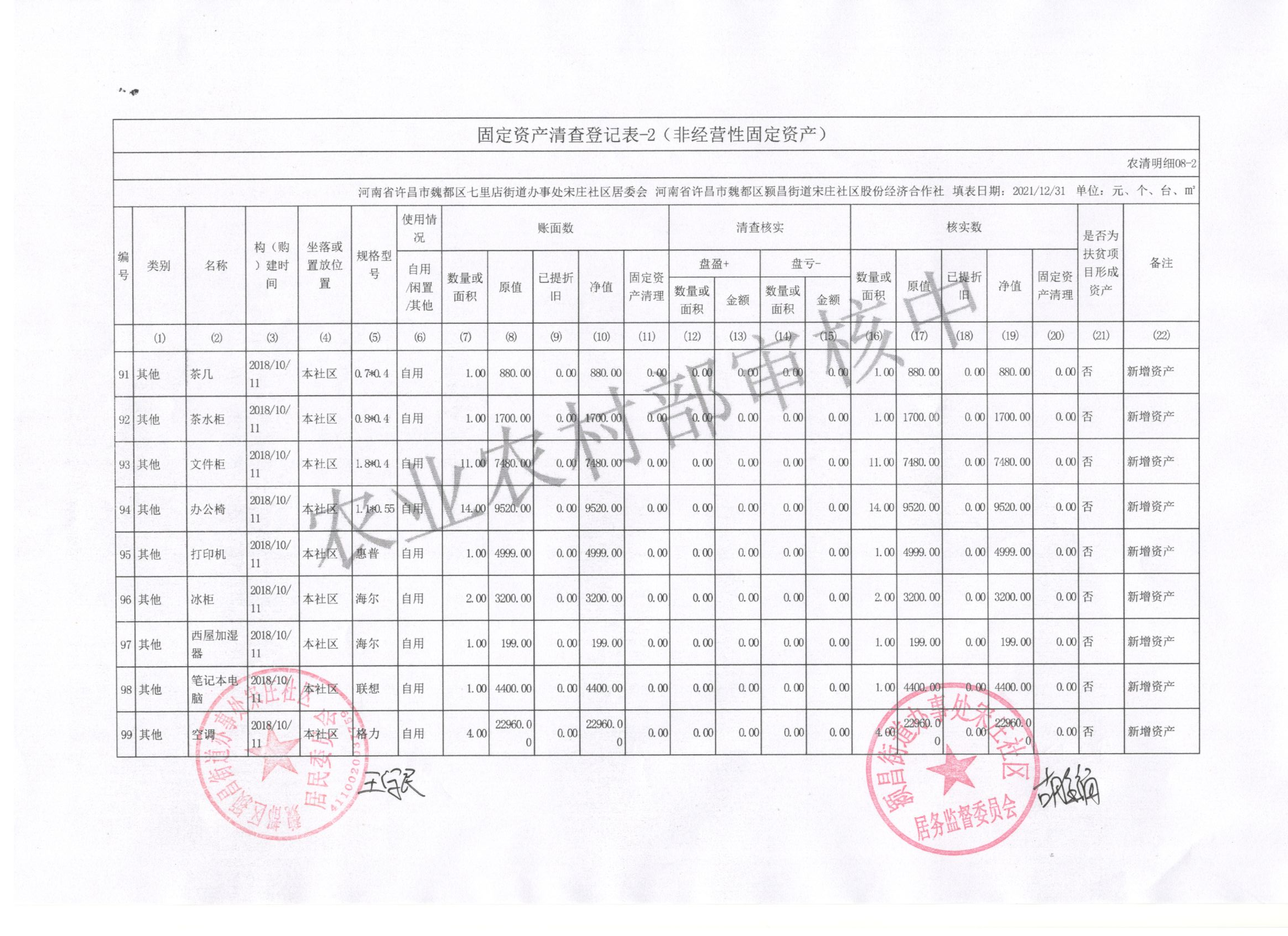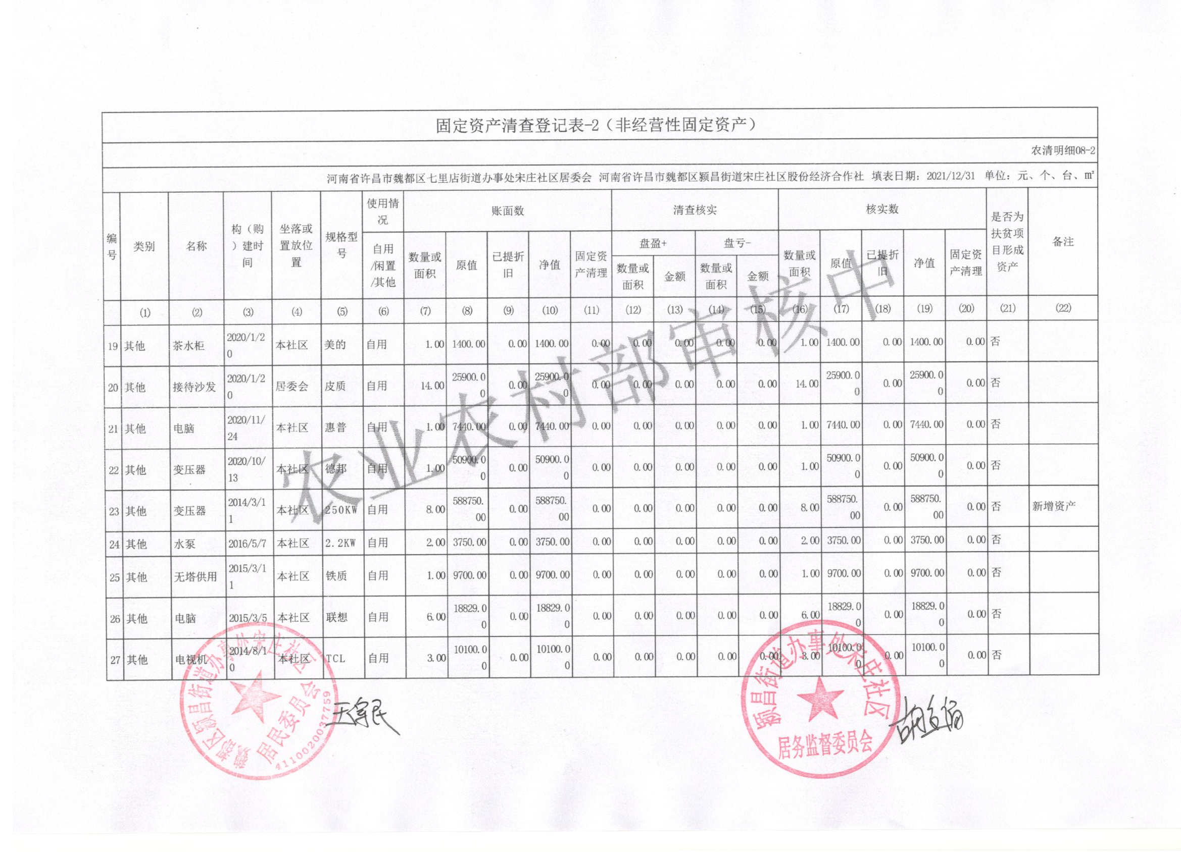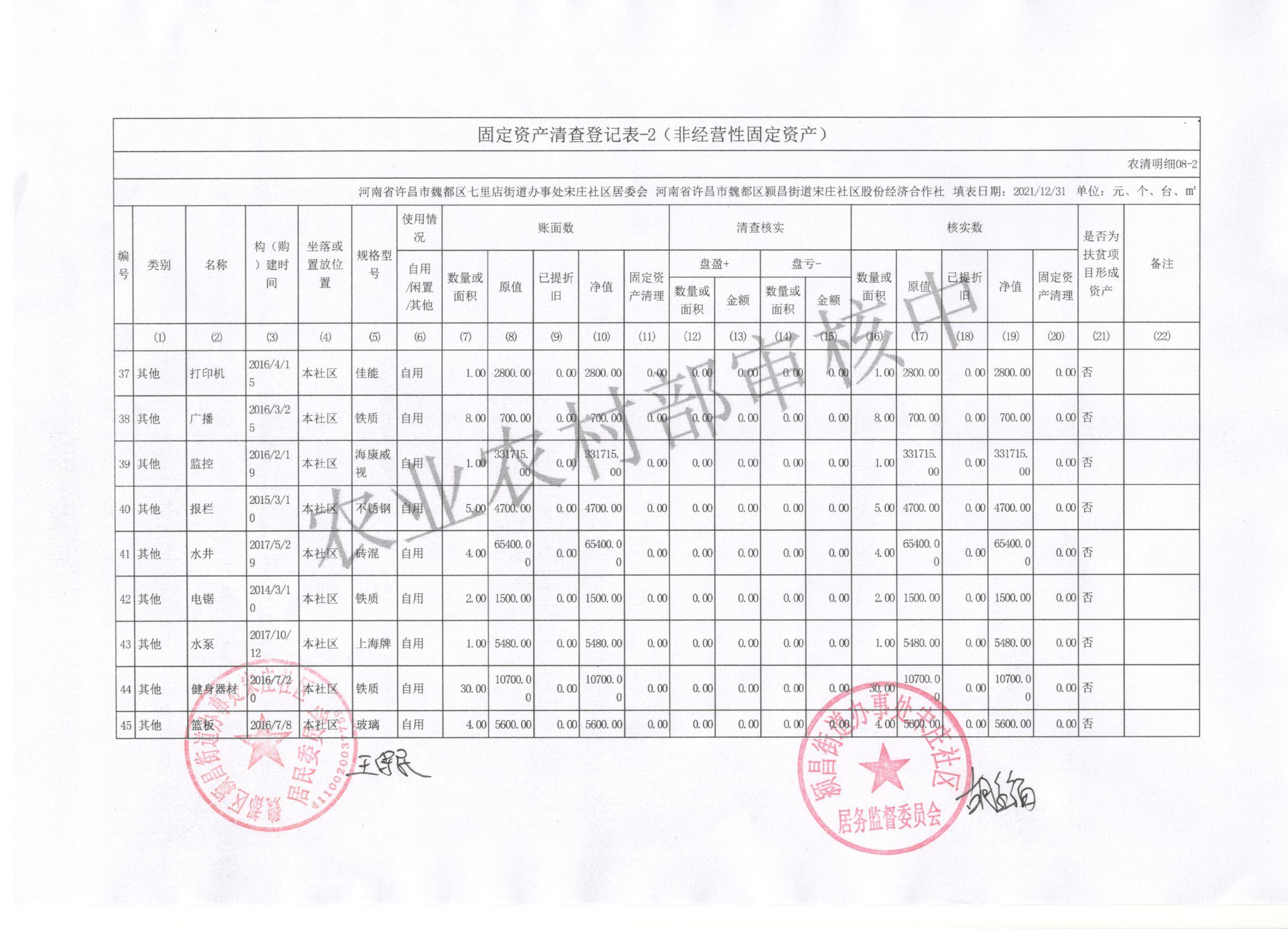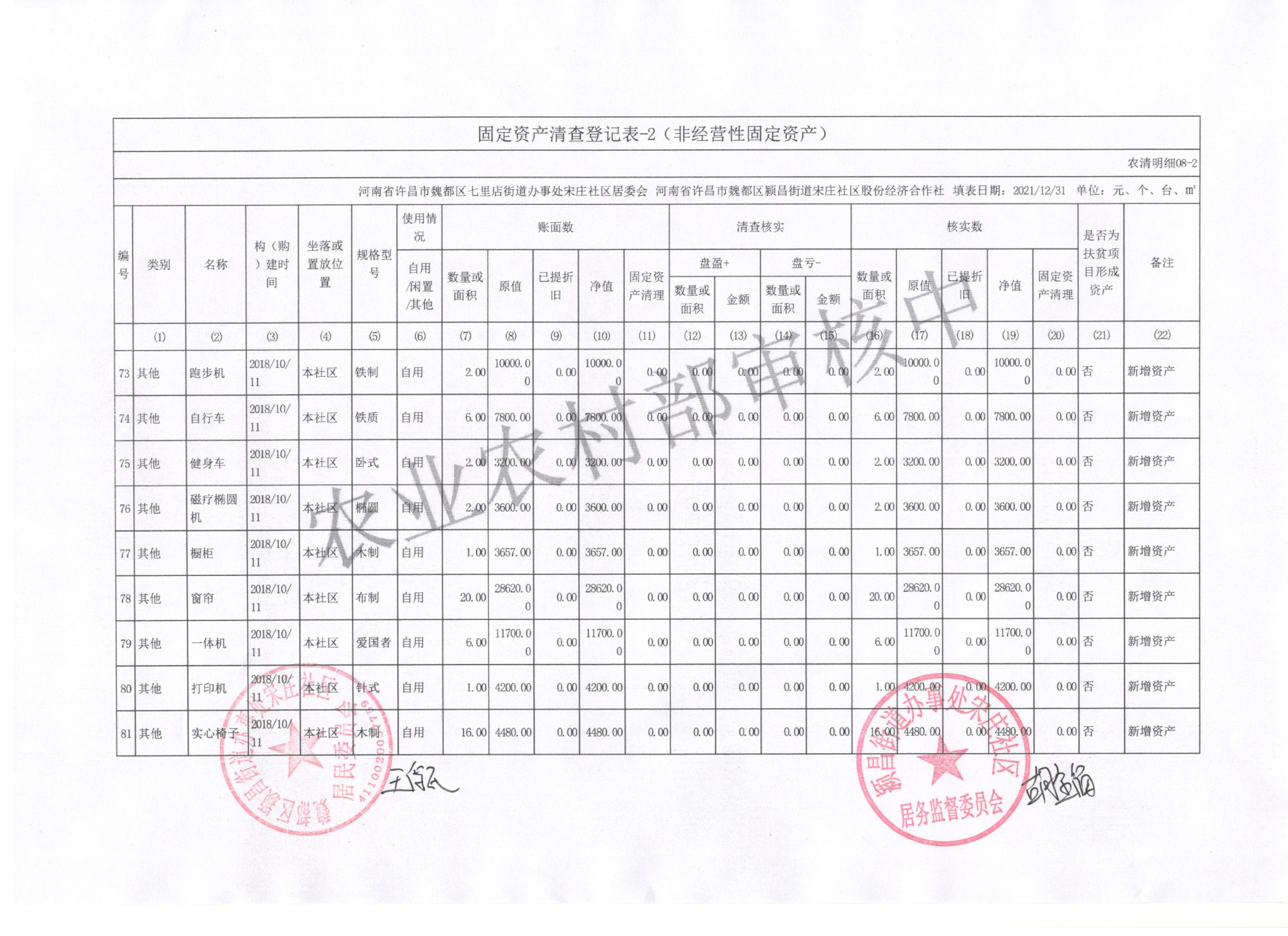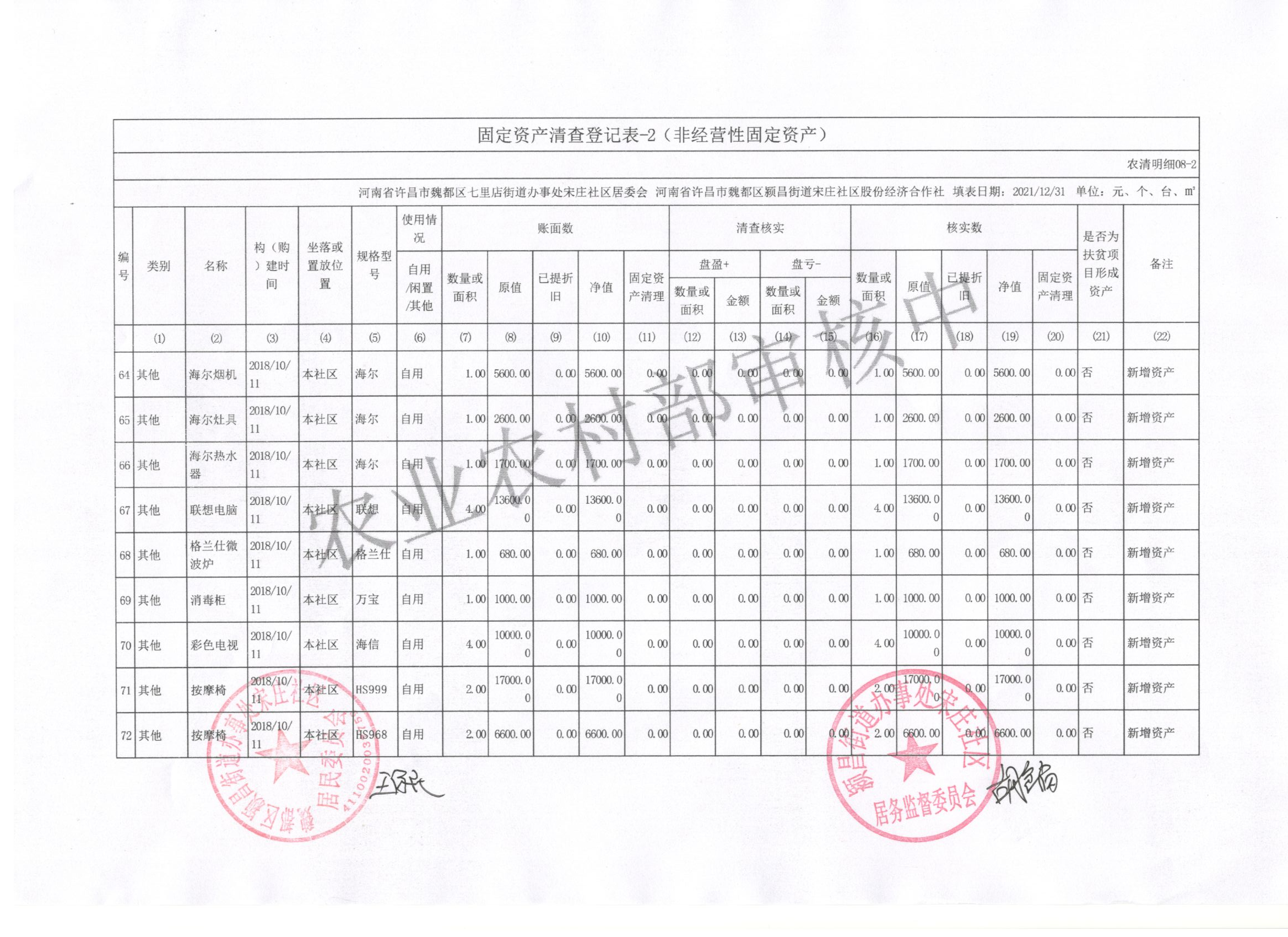 颍昌街道办事处宋庄社区2021年固定资产清查表