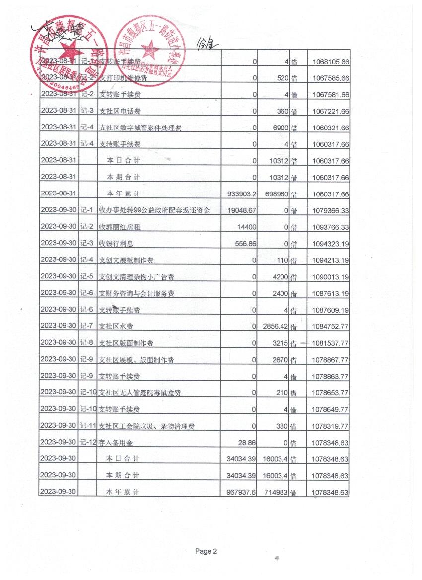 魏北办事处郭楼社区第三季度财务公开