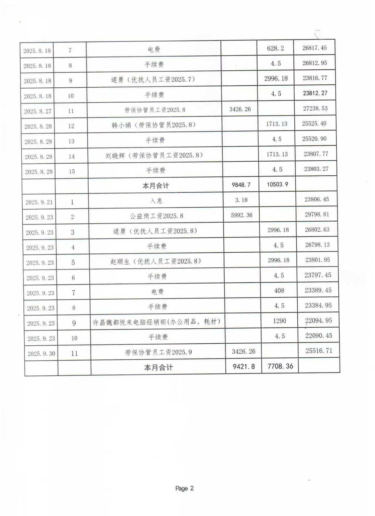 新兴街道办事处南环社区2025年第三季度银行存款收支公开表