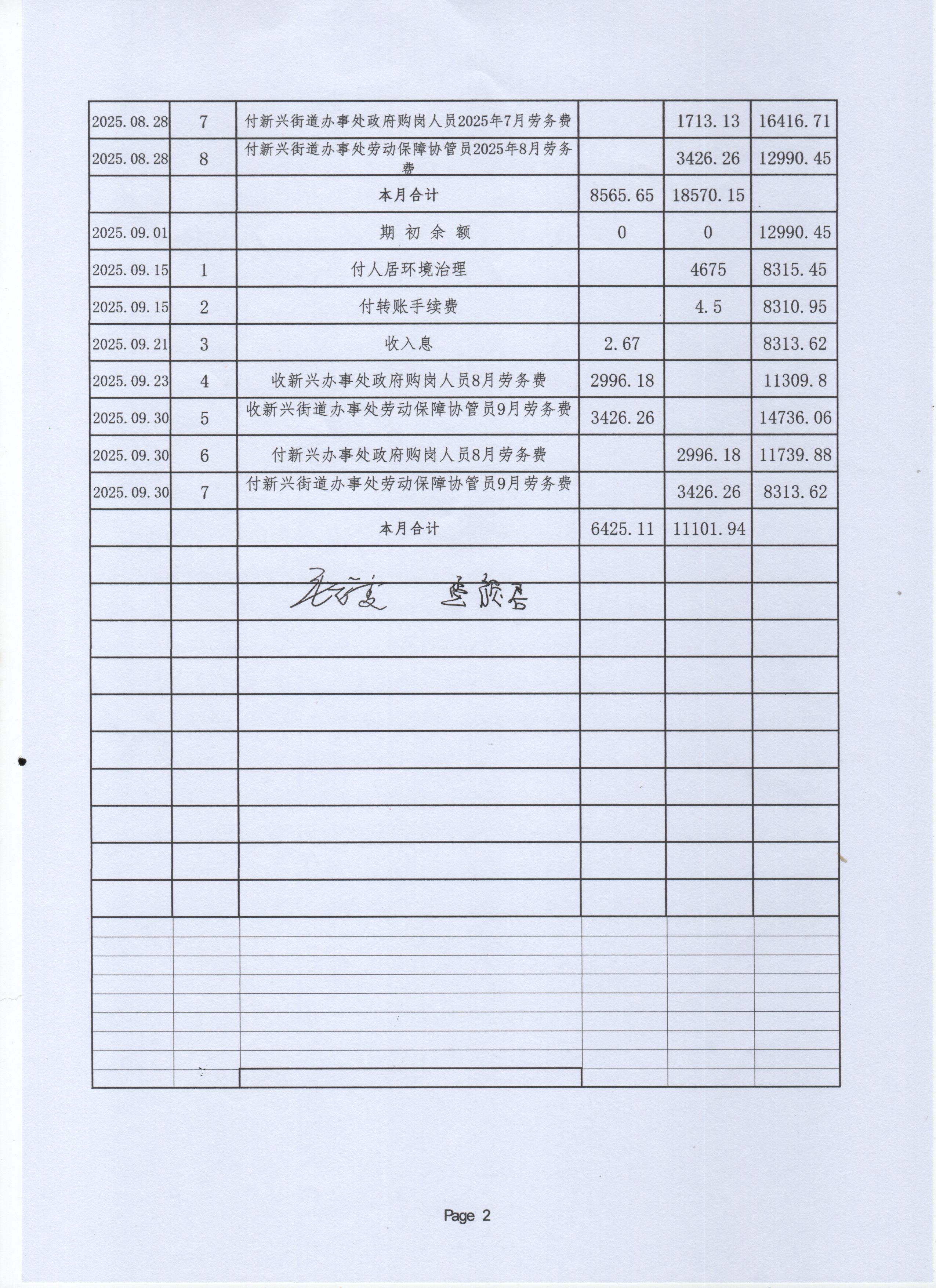 文峰街道办事处新许社区2025年第三季度现金收支公开表