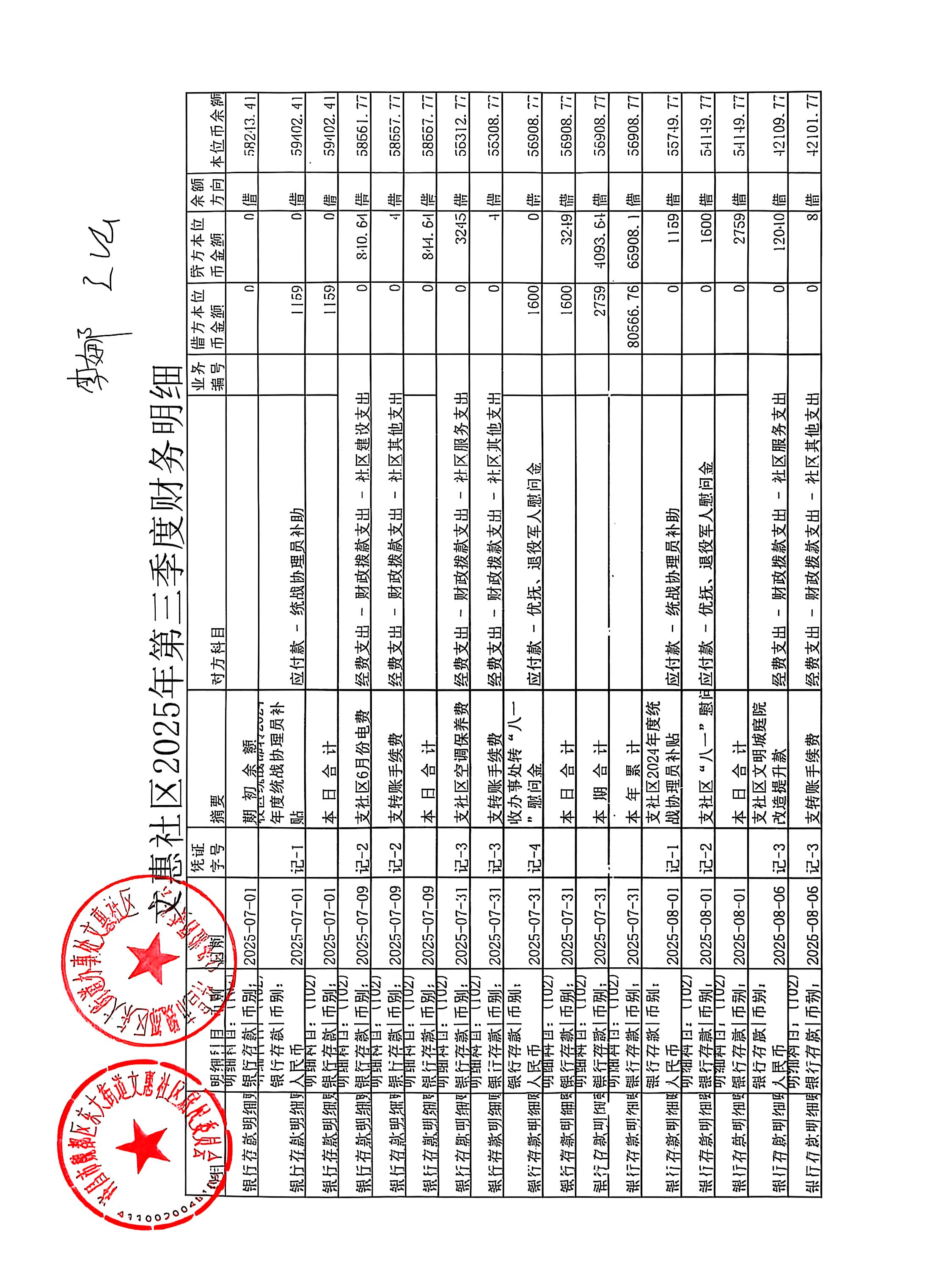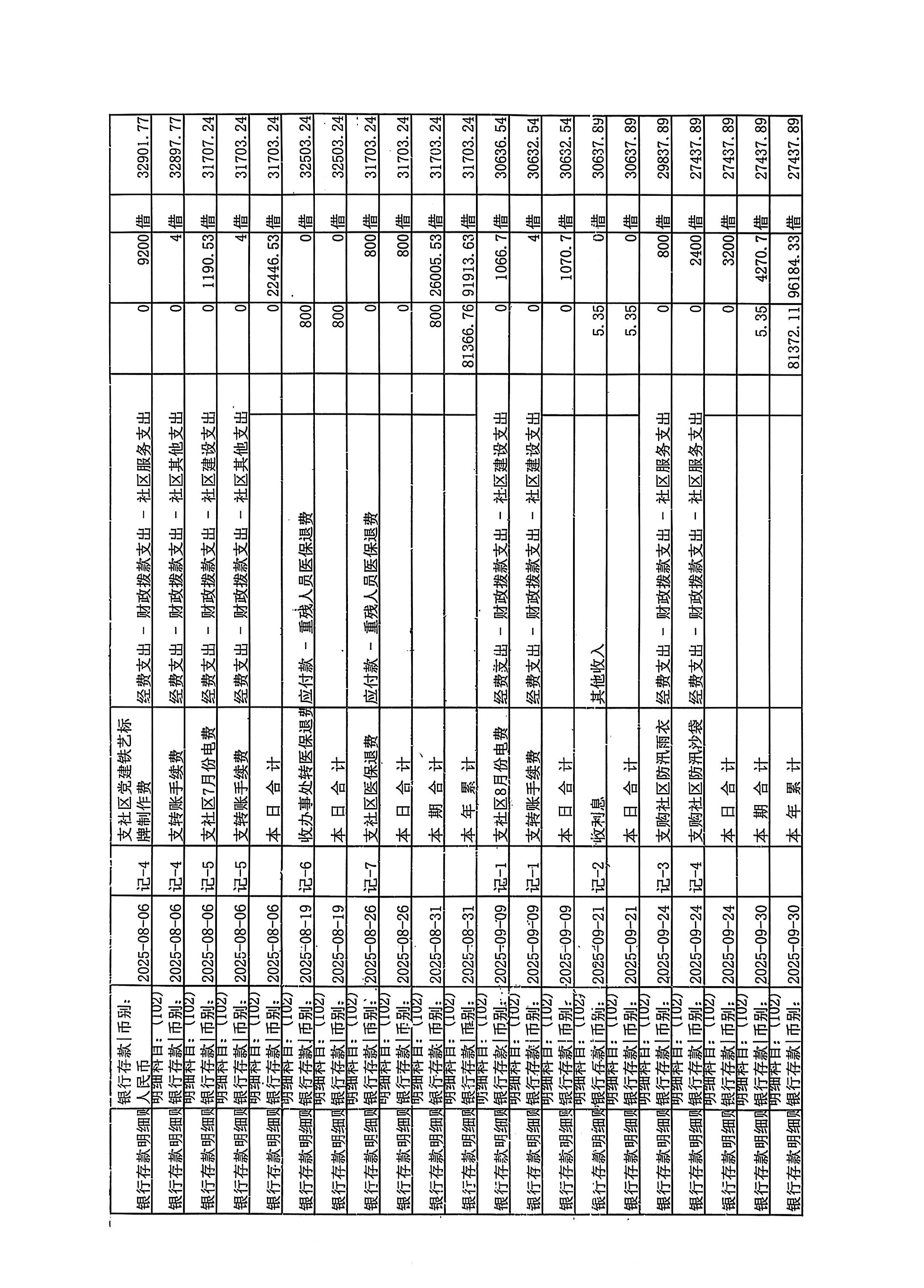 东大街道办事处文惠社区2025年第三季度银行存款收支公开表