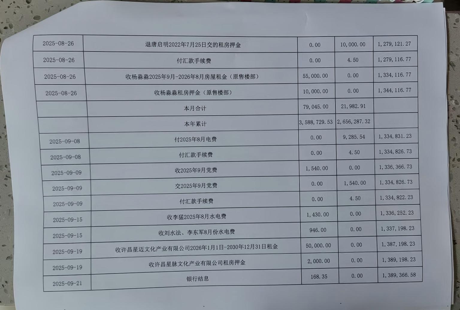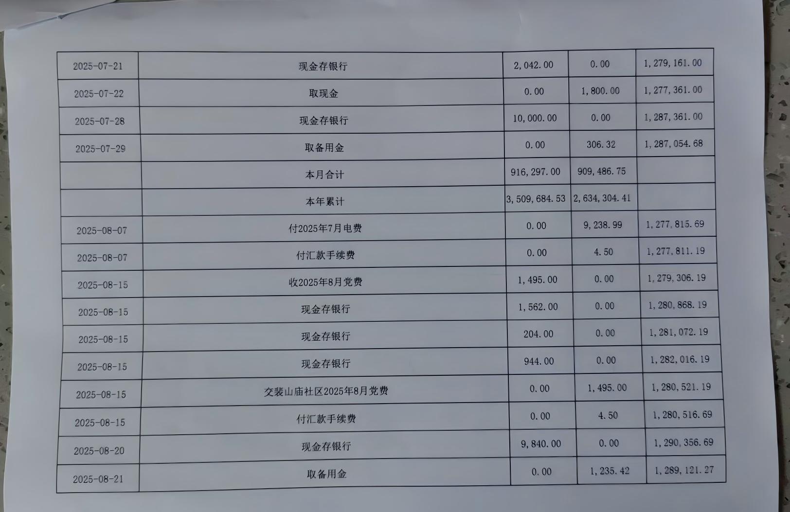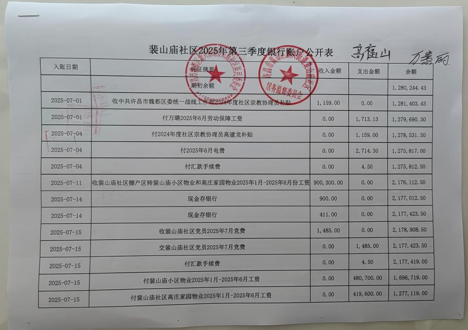 新兴街道办事处裴山庙社区2025年第三季度银行存款收支公开表