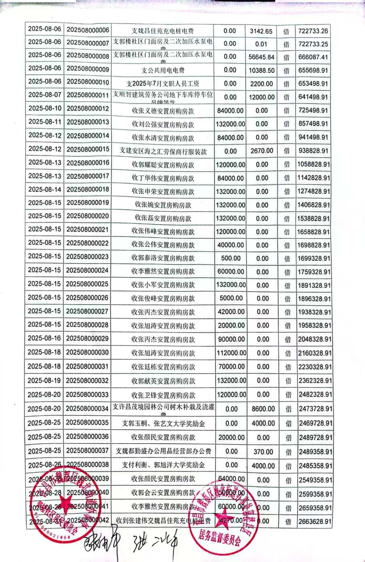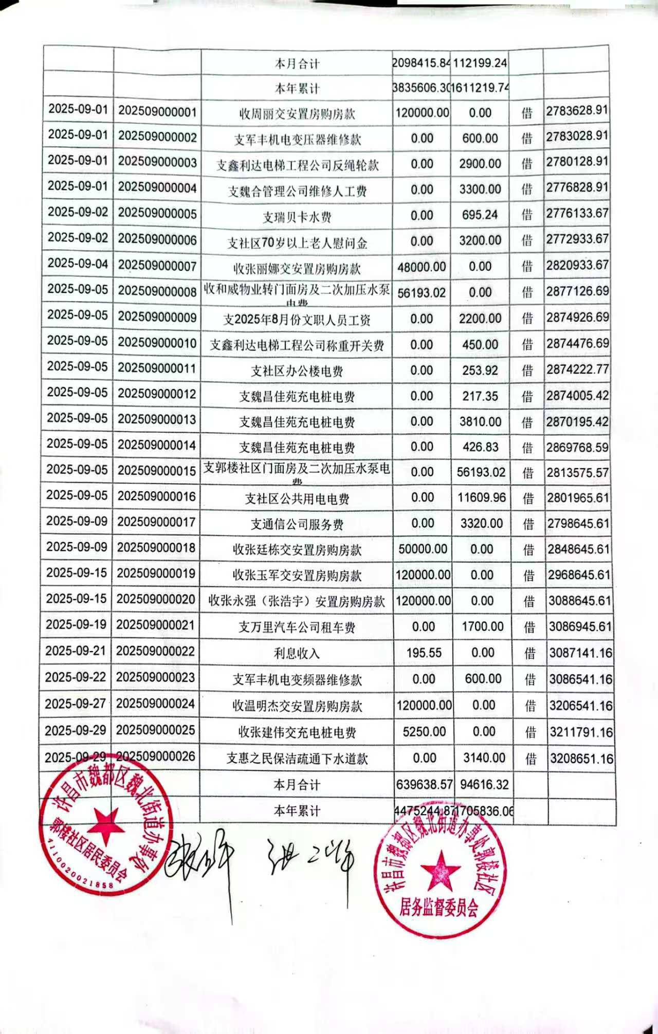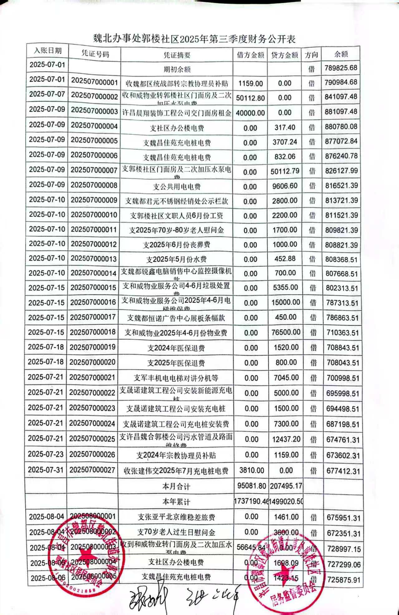 魏北街道办事处郭楼社区2025年第三季度银行存款收支公开表