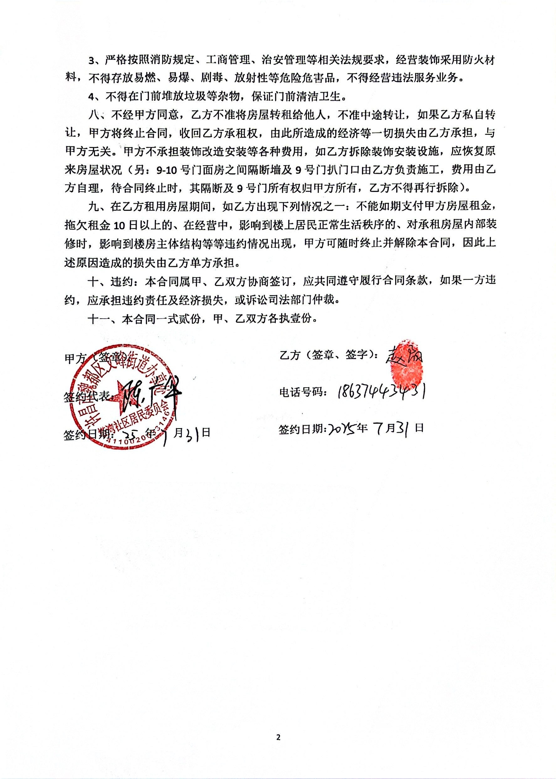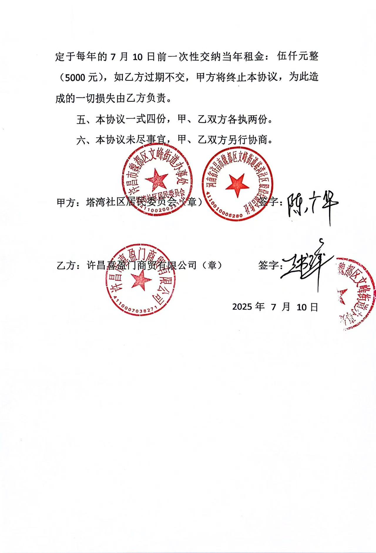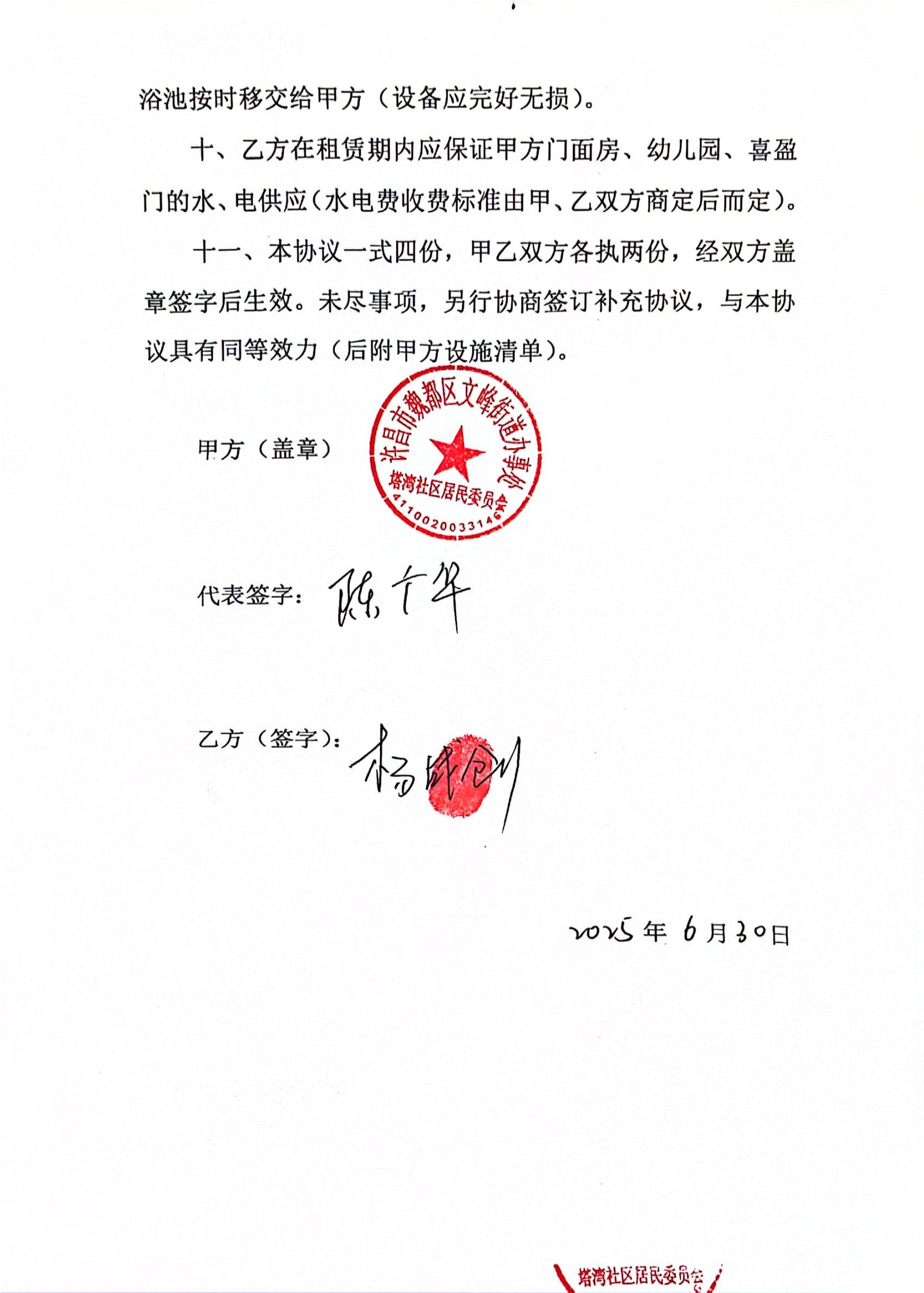 文峰办事处塔湾社区2025年第三季度门面房租赁协议公开