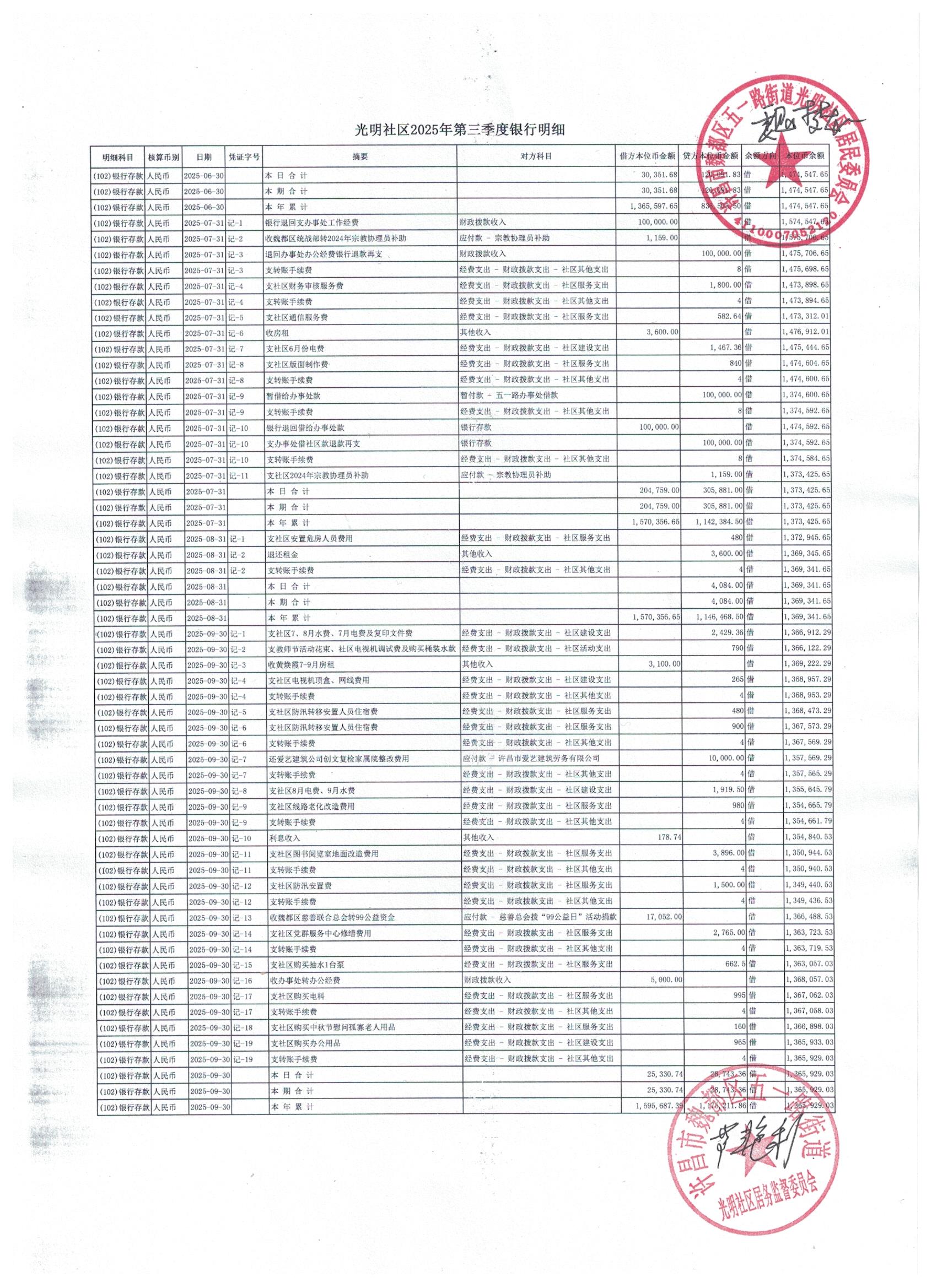 五一路街道办事处光明社区2025年第三季度银行存款收支公开表