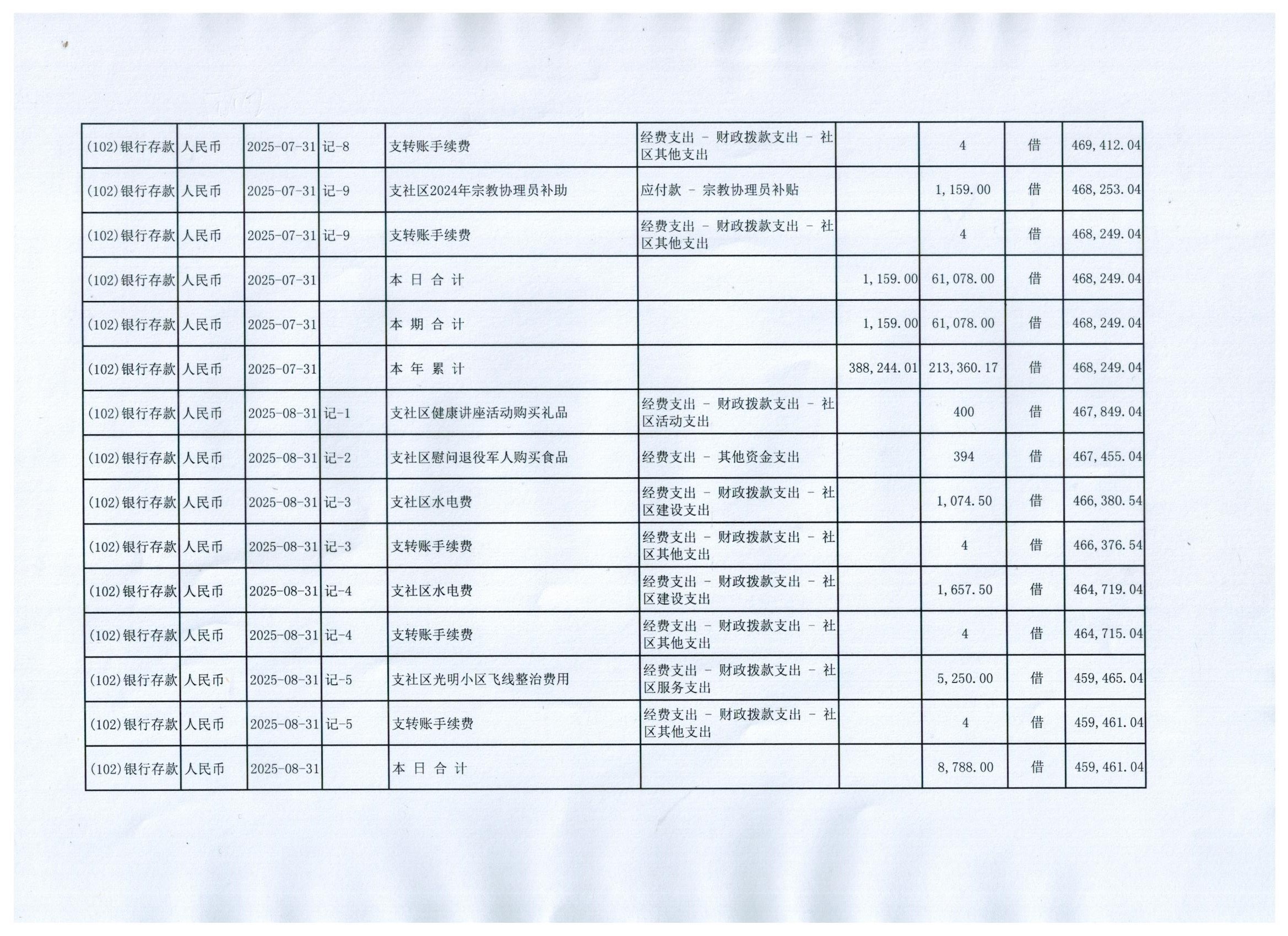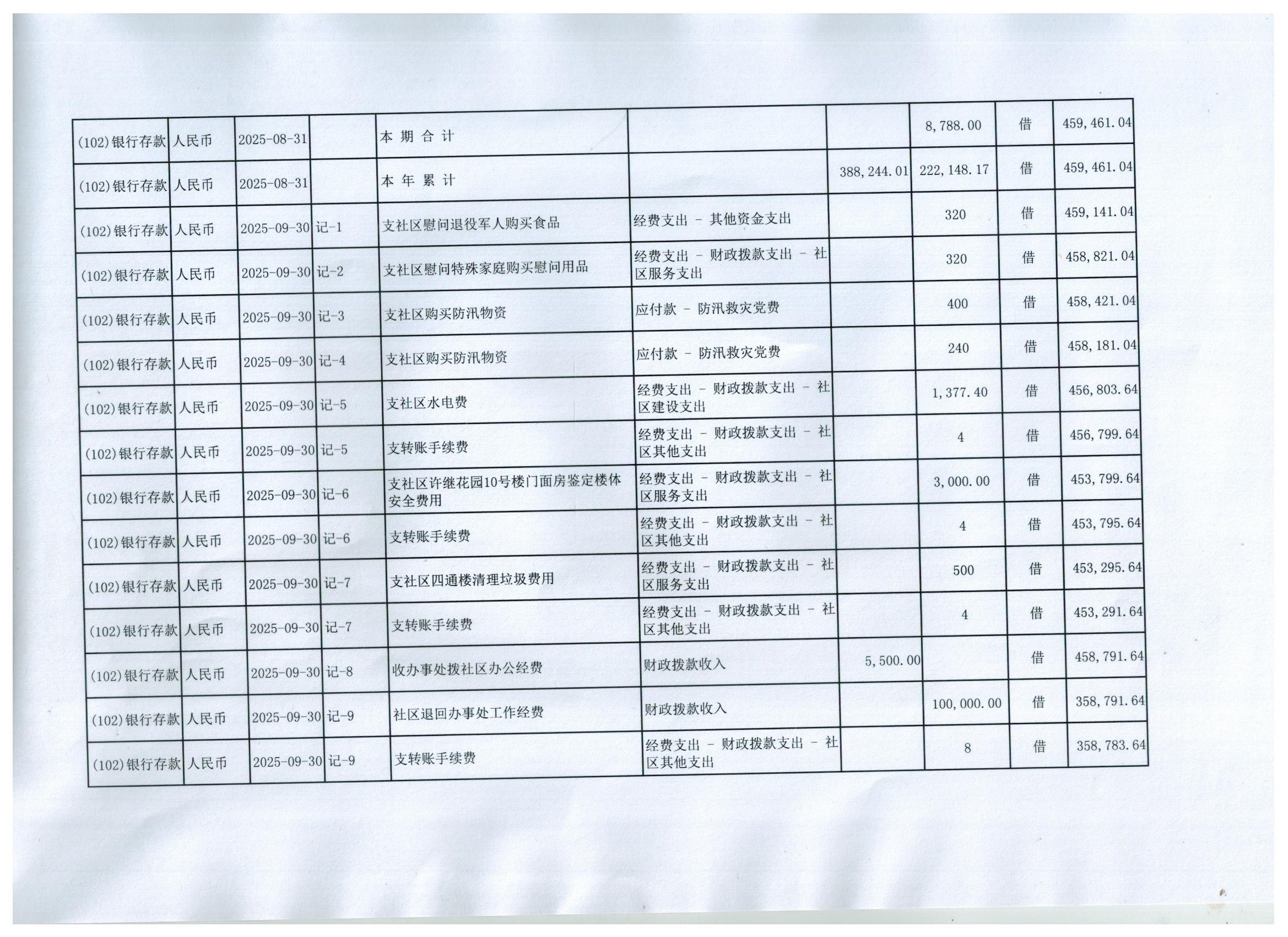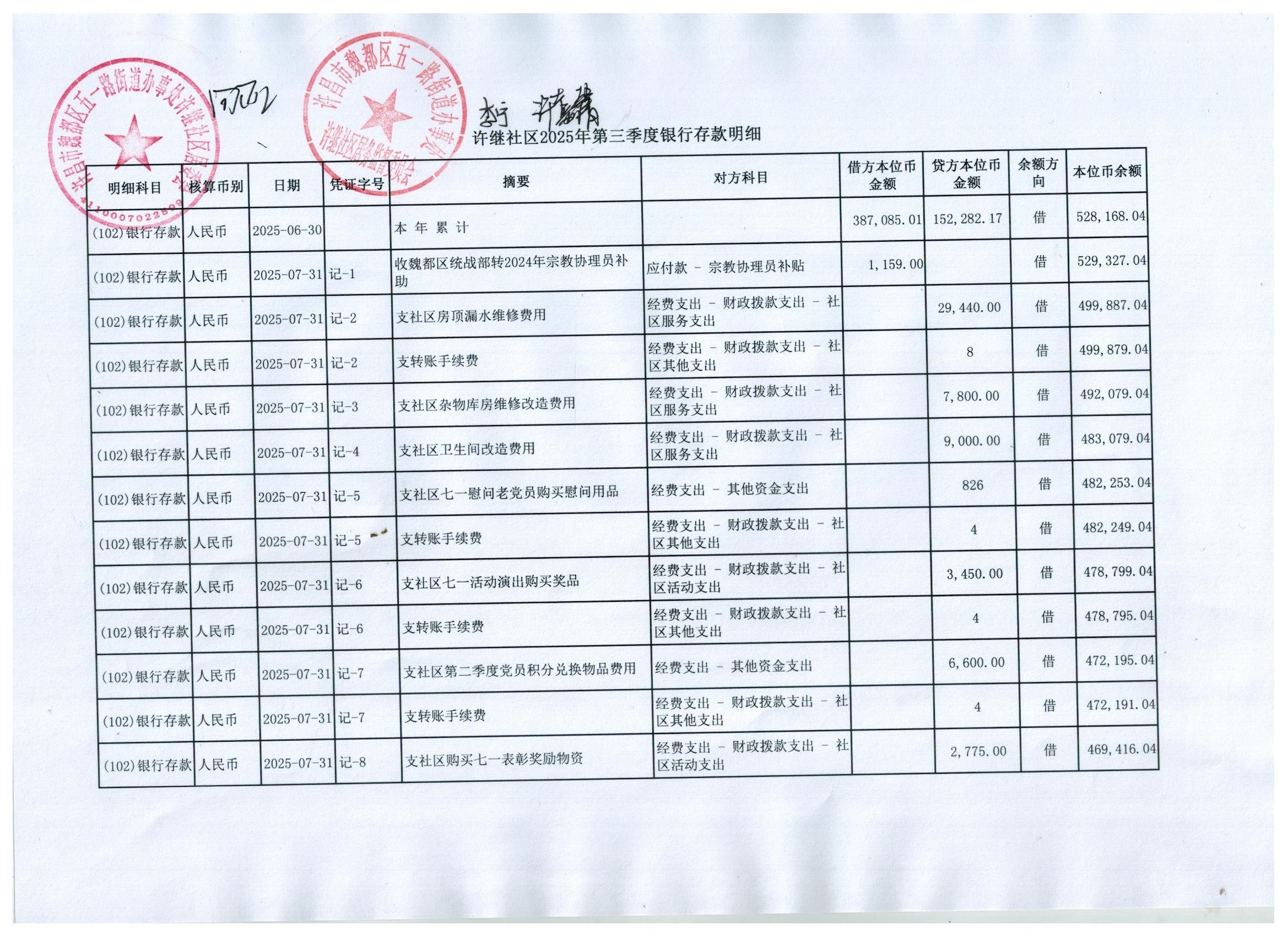 五一路街道办事处许继社区2025年第三季度银行存款收支公开表