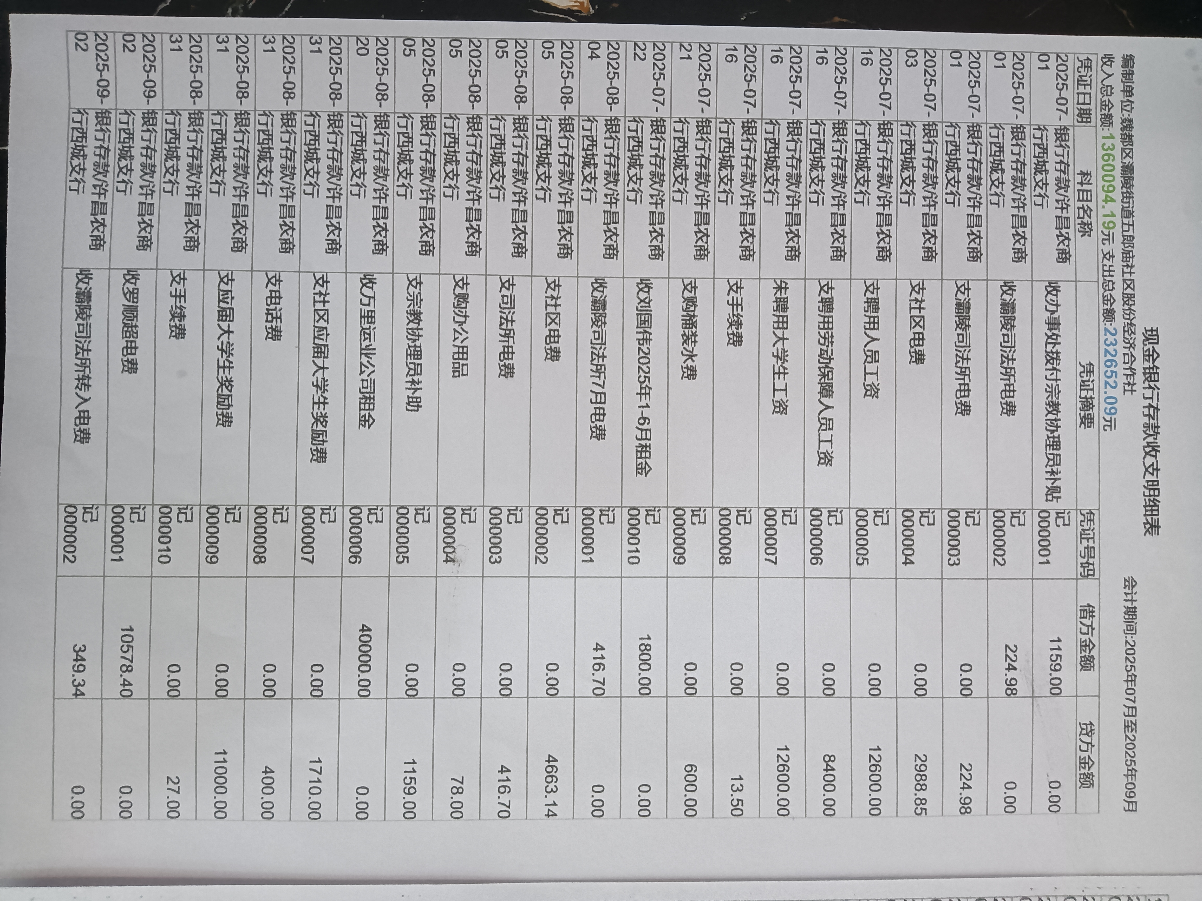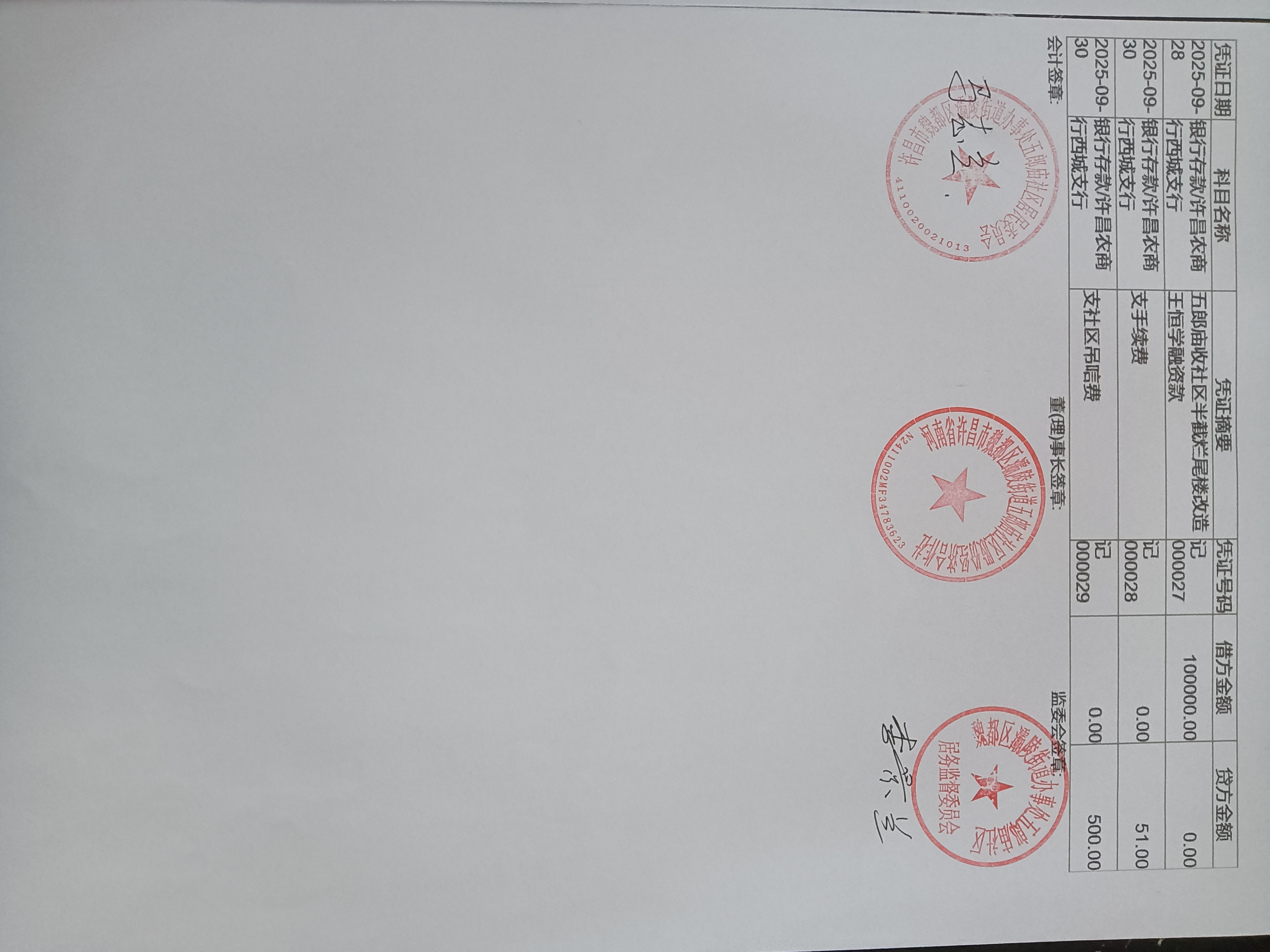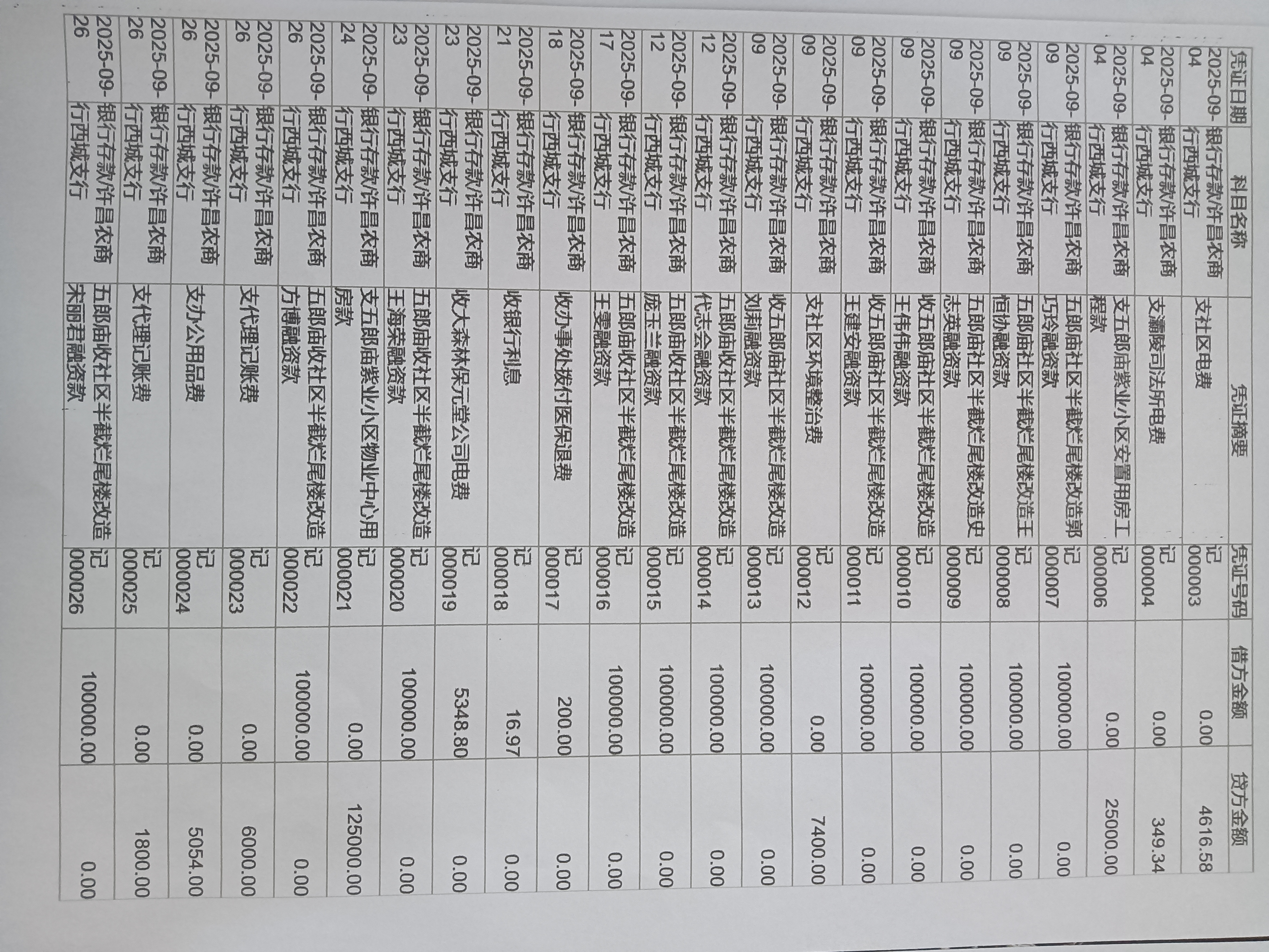 灞陵街道办事处五郎庙社区2025年第三季度银行存款收支公开表