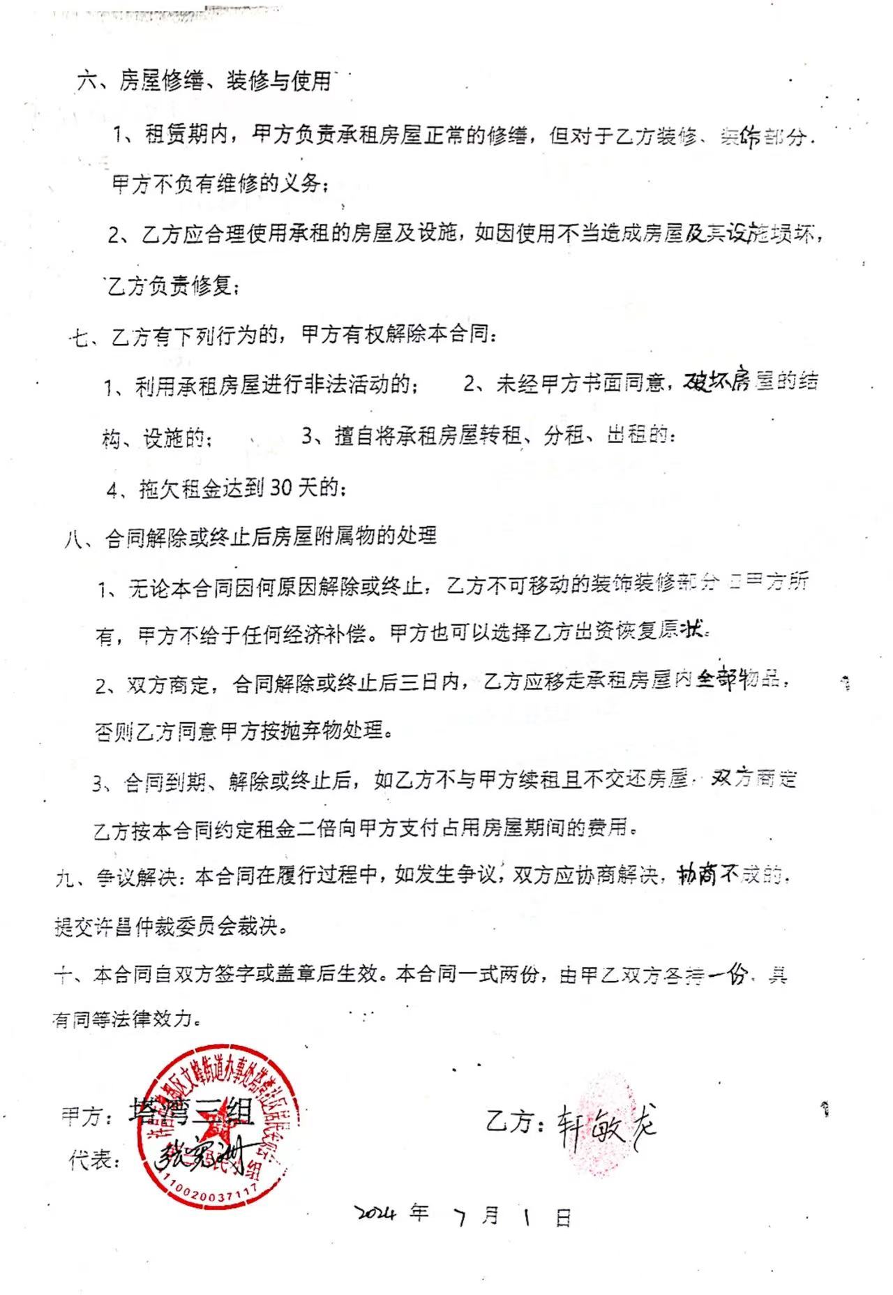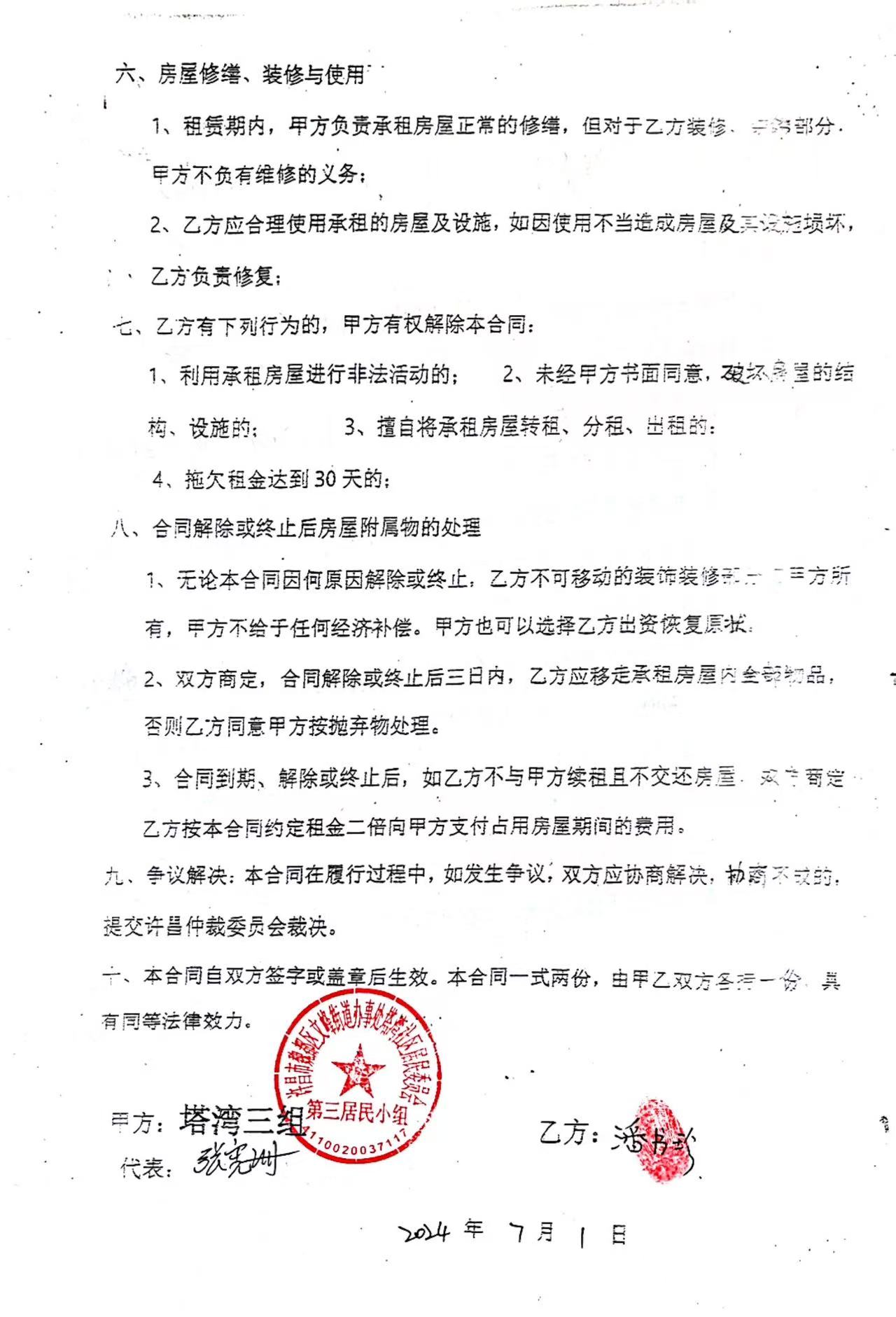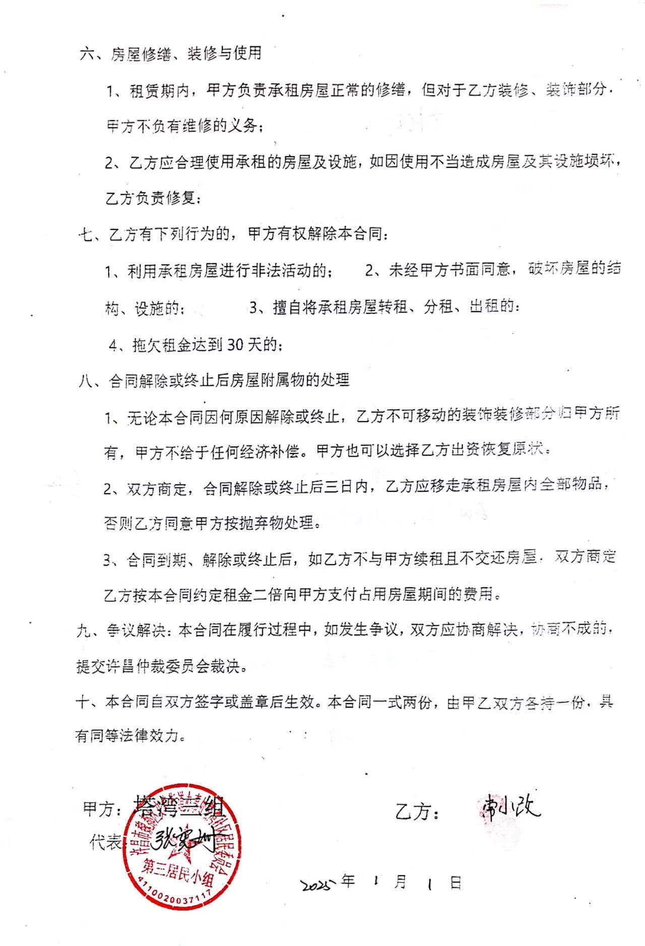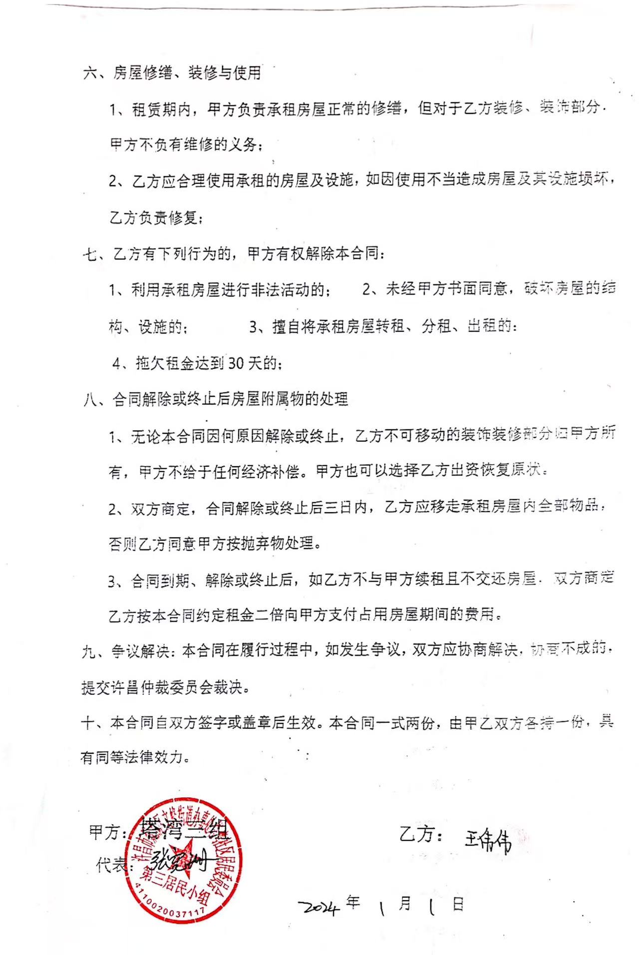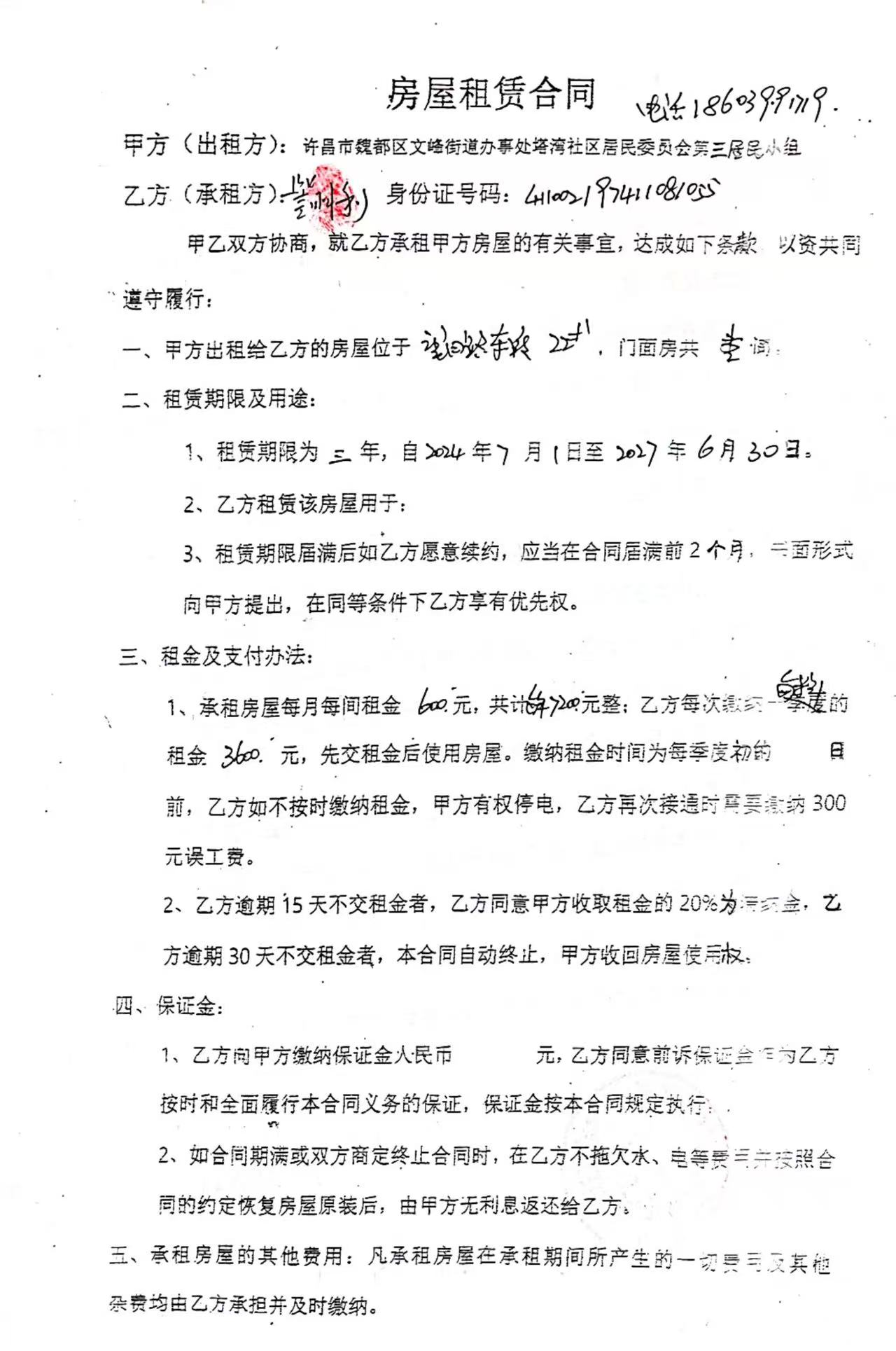 文峰办事处塔湾社区第四居民小组门面房及场院租赁协议